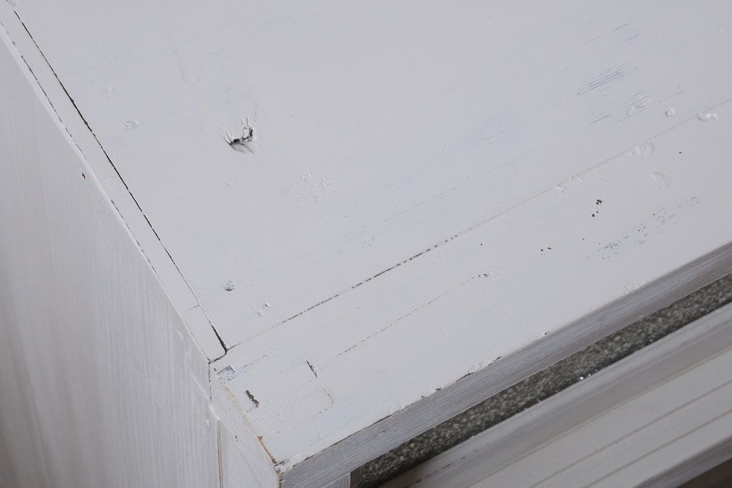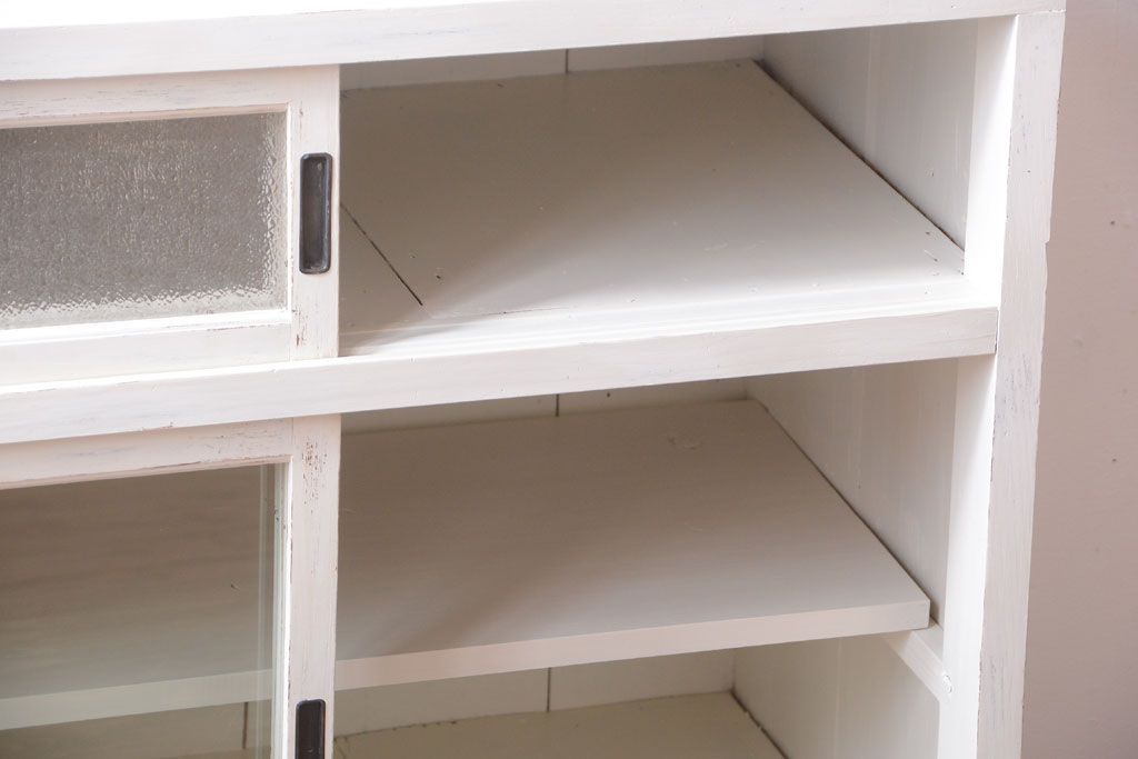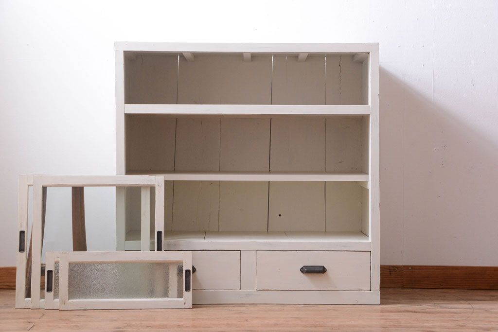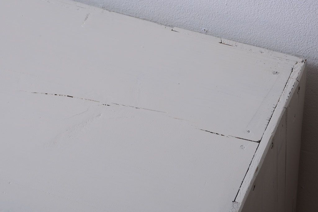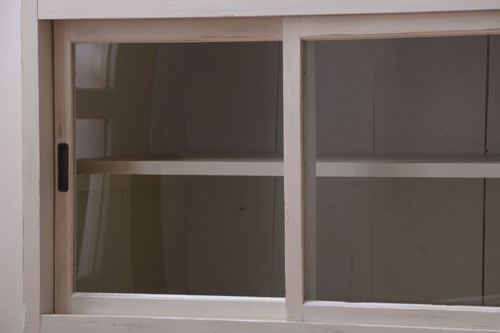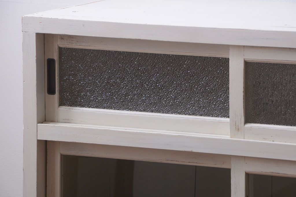 アンティーク家具 アンティークペイント ダイヤガラス入り!小ぶりな収納棚