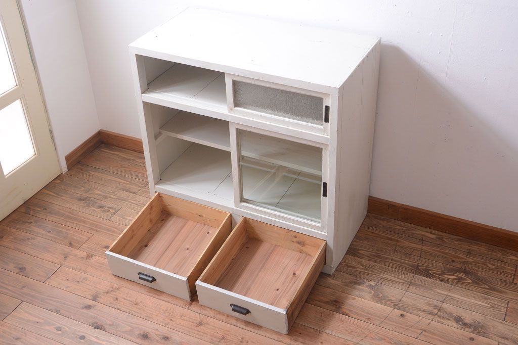 アンティークペイント ダイヤガラス入り!小ぶりな収納棚です。