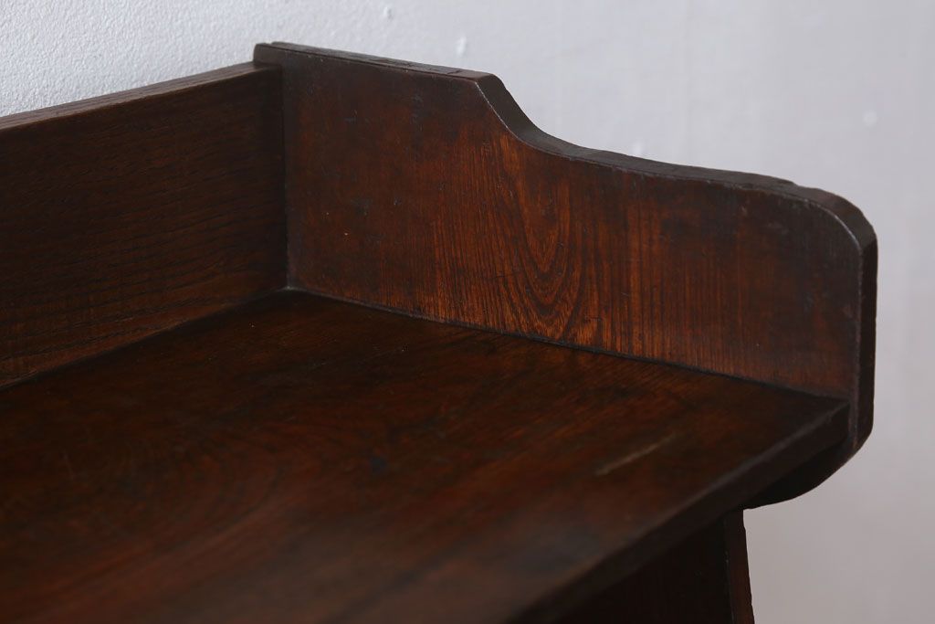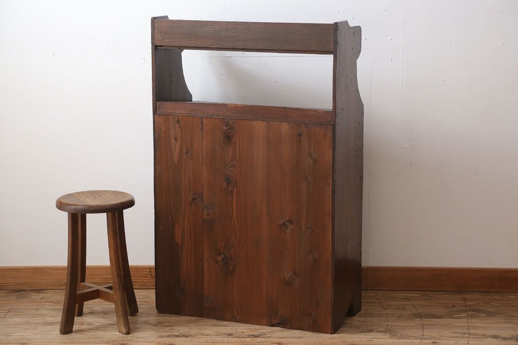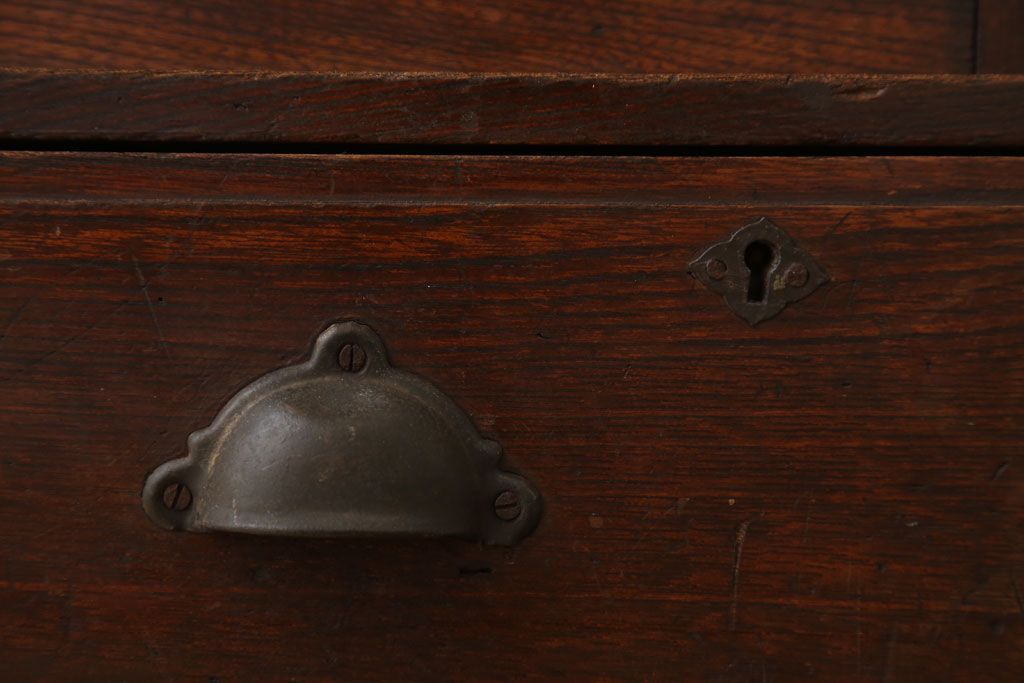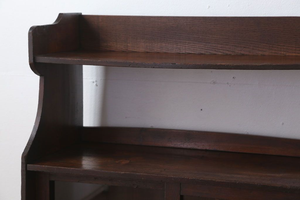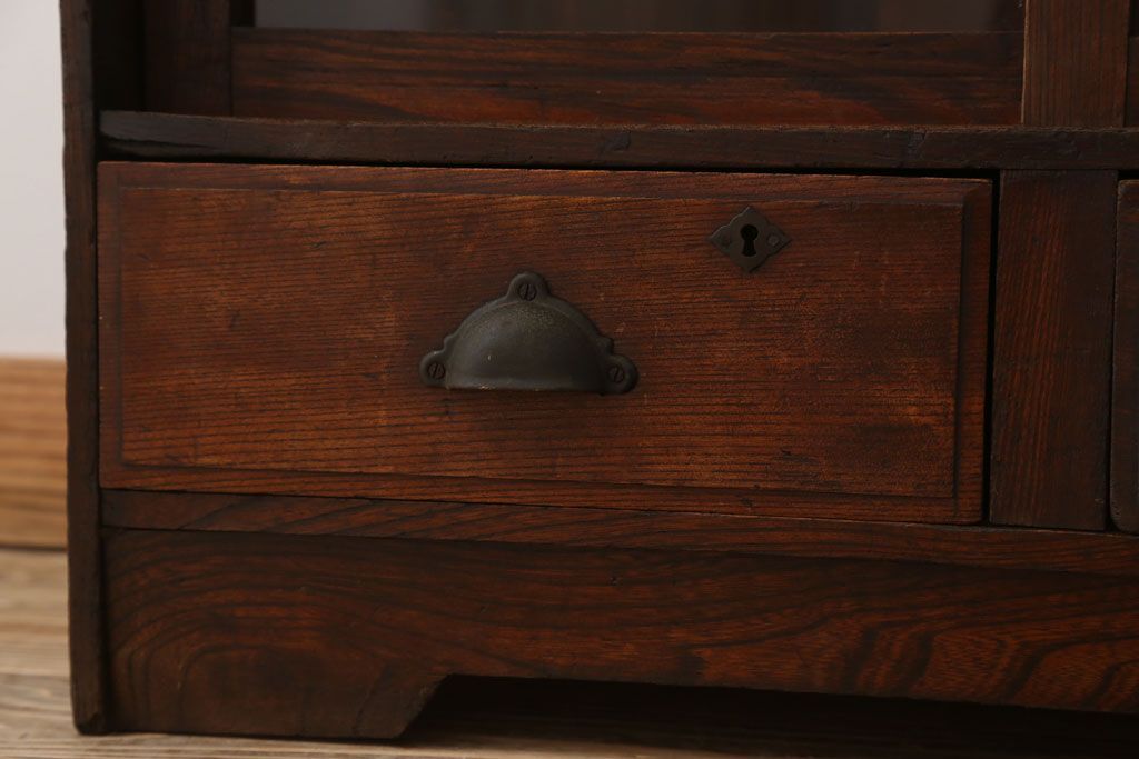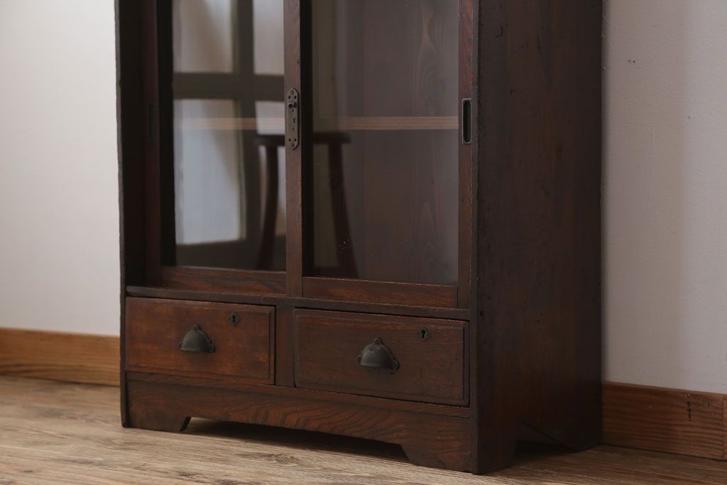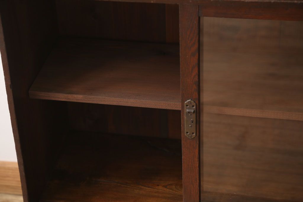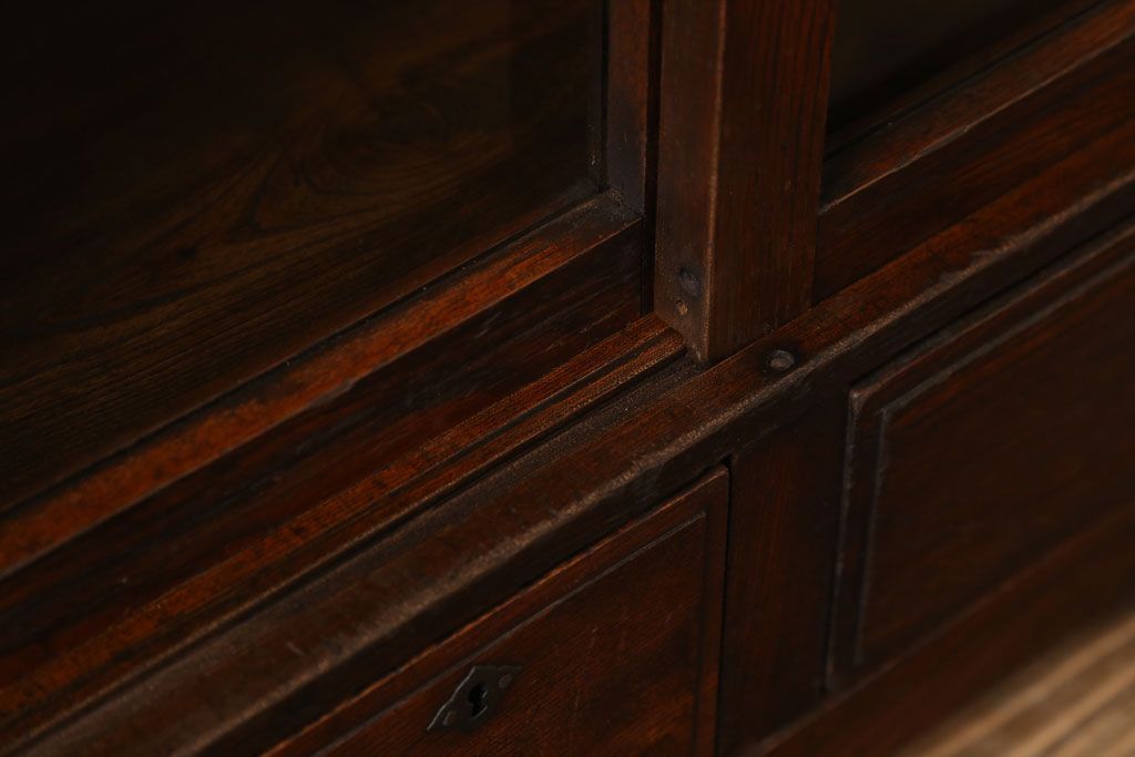 アンティーク家具 アンティーク 飾り棚付き!古い栓材のシンプルな引き戸本箱
