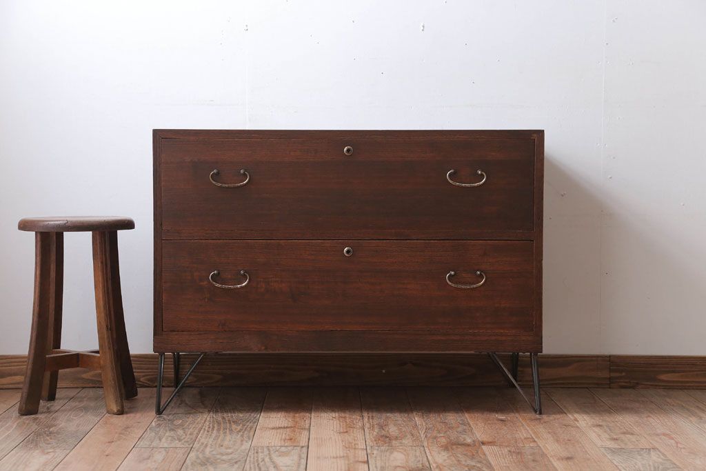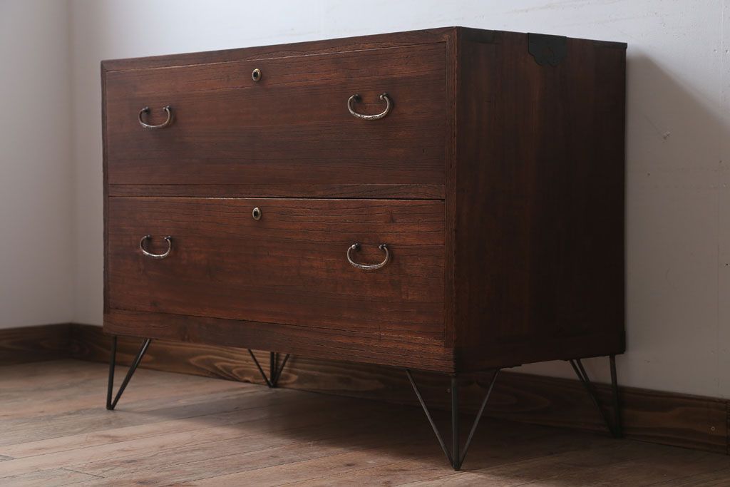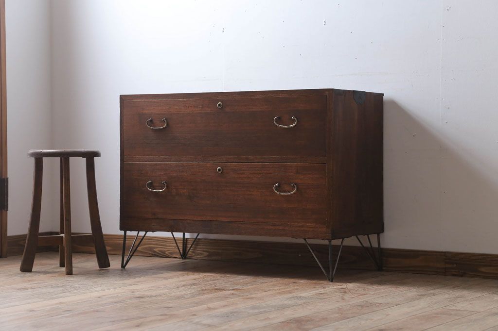 アンティーク家具 和製アンティーク シンプルな衣装箪笥の鉄脚ローボード(1)