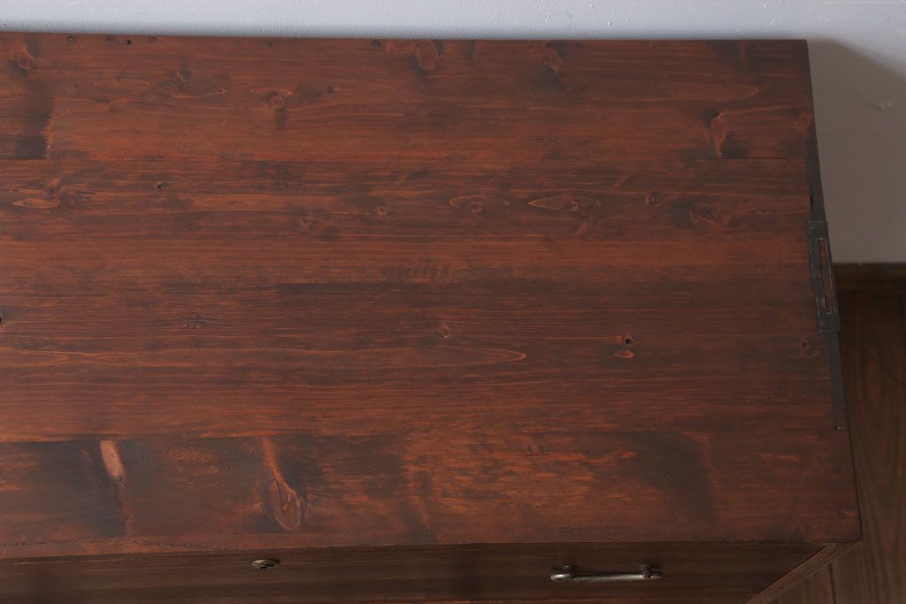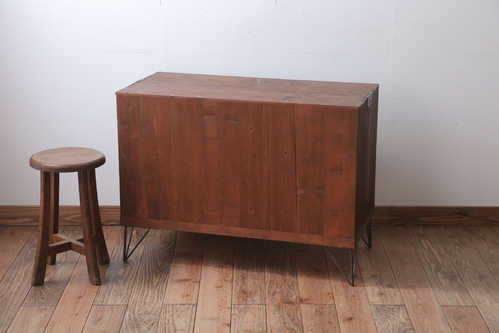 ラフジュ工房> キャビネット・戸棚> テレビ台・ローボード > アンティーク家具 和製アンティーク シンプルな衣装箪笥の鉄脚ローボード(1)