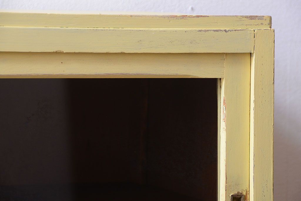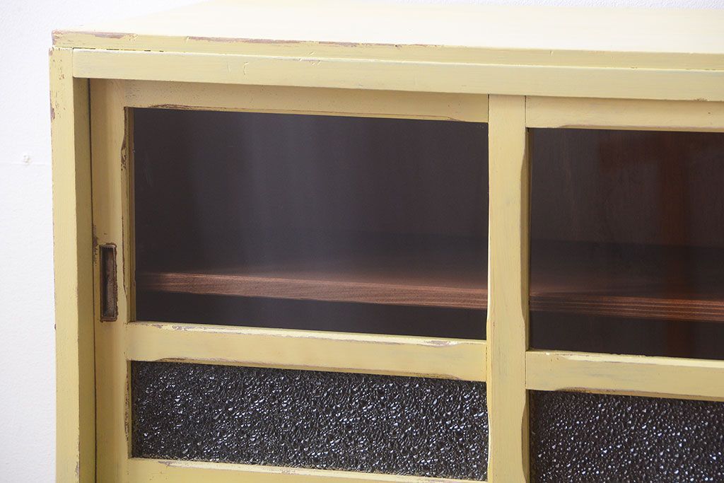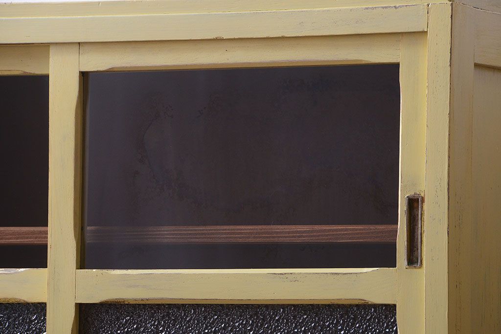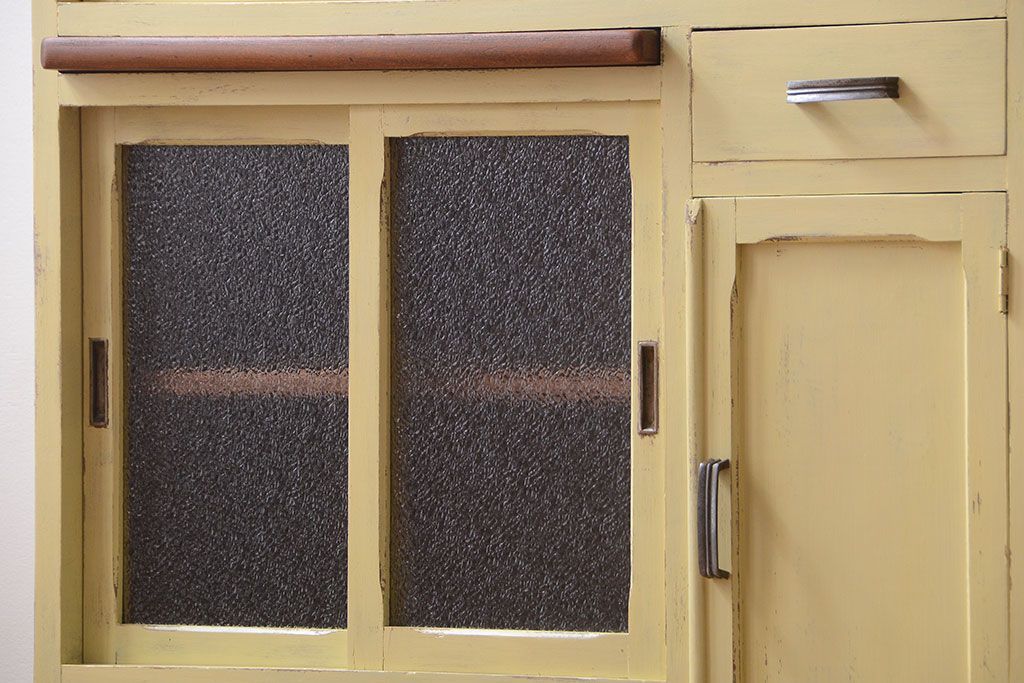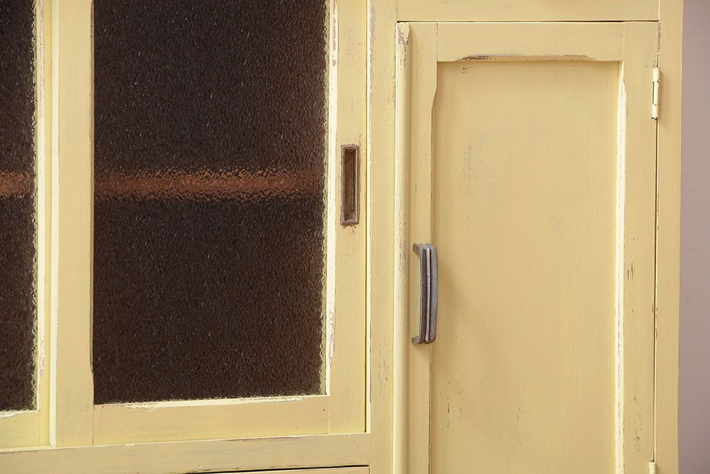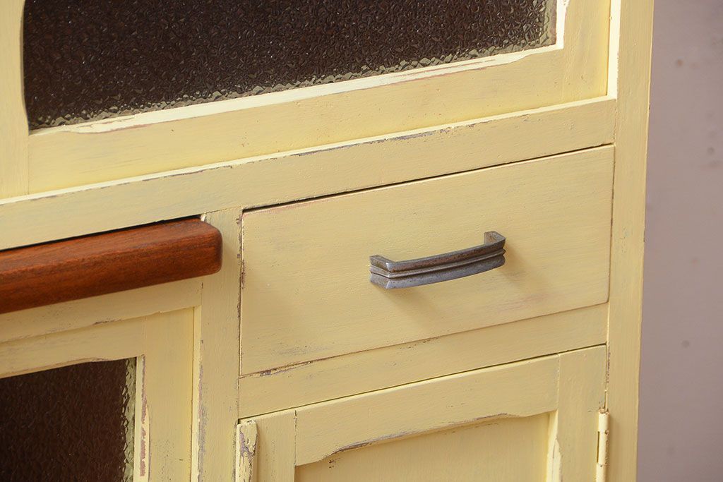 アンティーク家具 アンティークペイント 作業台付き!小さなキッチンキャビネット(食器棚・カップボード)