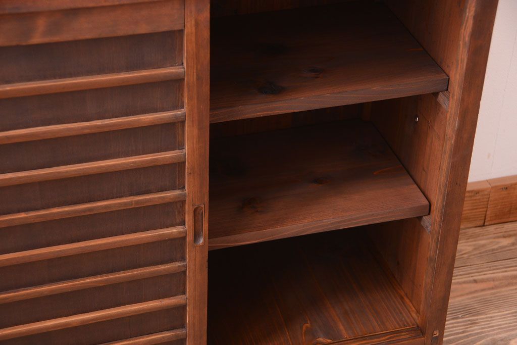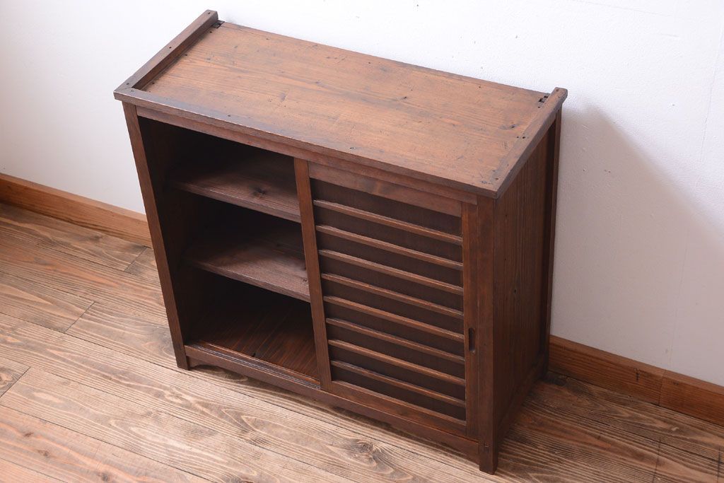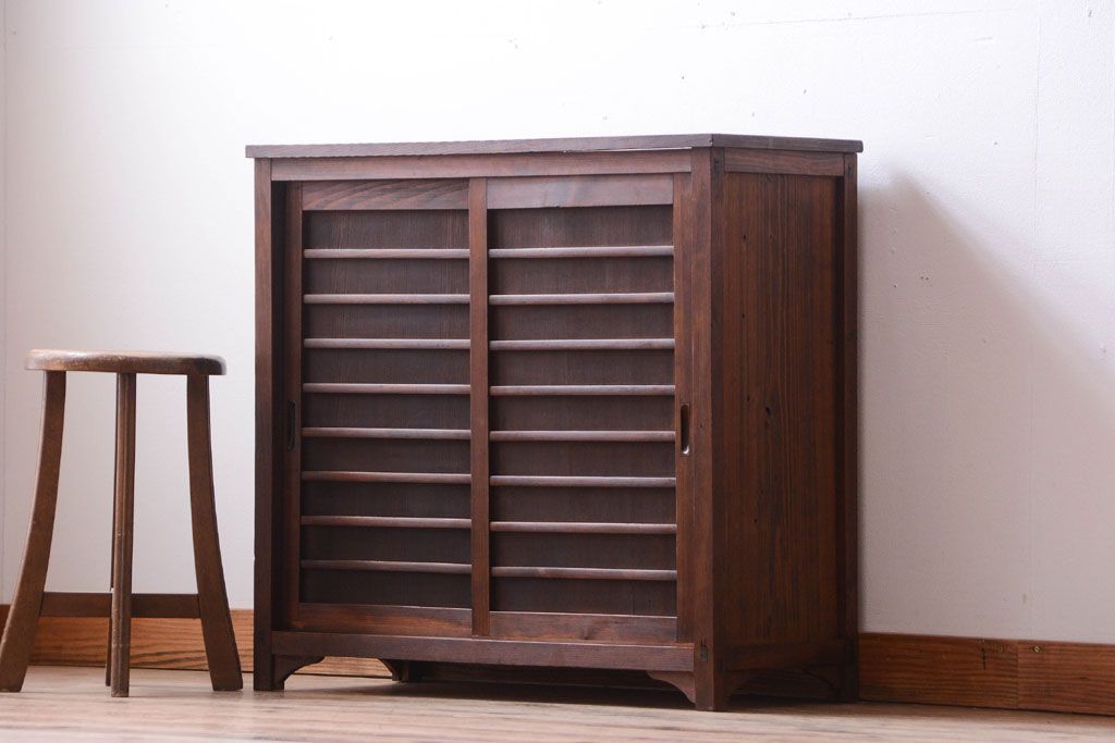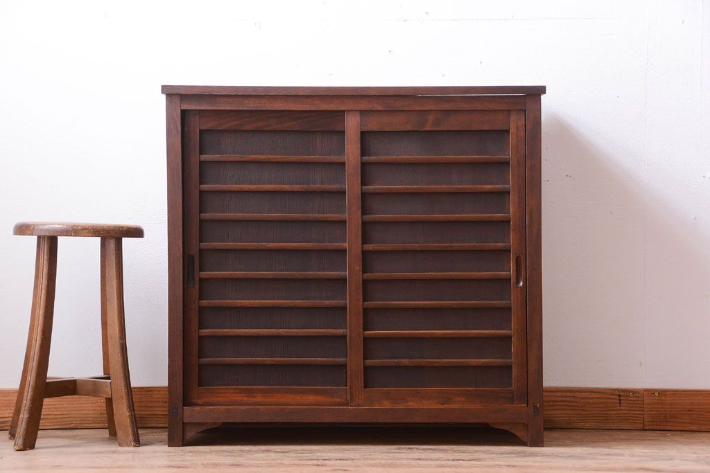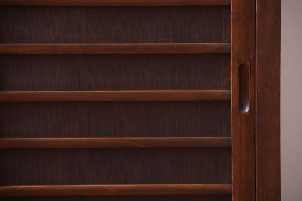 アンティーク家具 和製アンティーク 横桟引き戸の小ぶりな収納棚