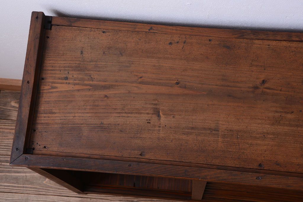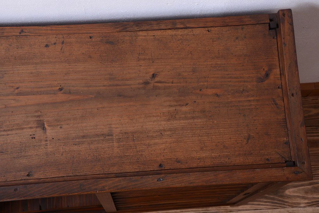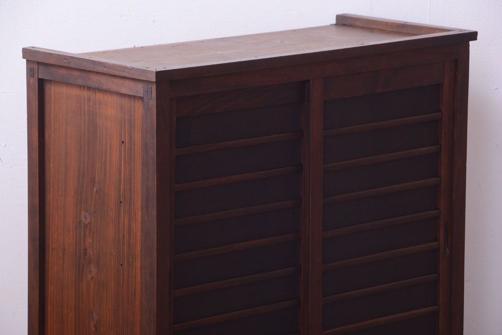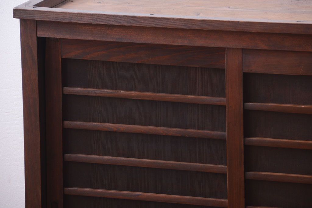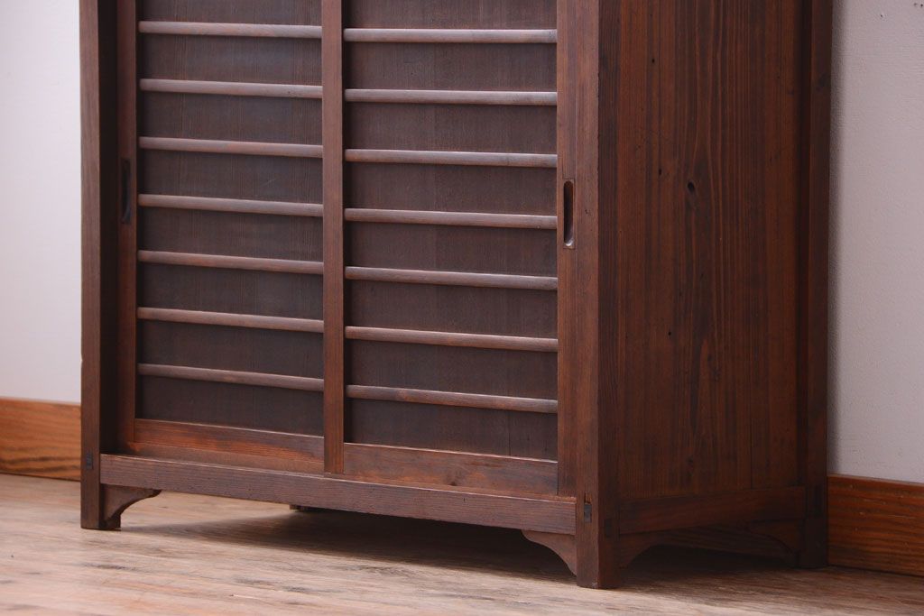 アンティーク家具 和製アンティーク 横桟引き戸の小ぶりな収納棚