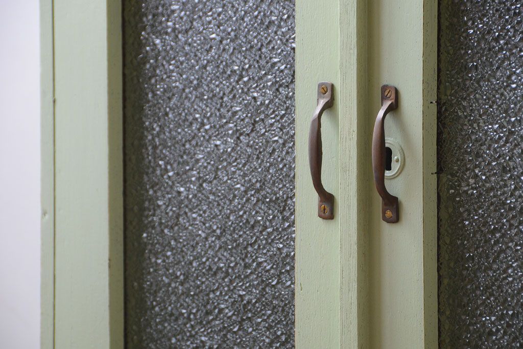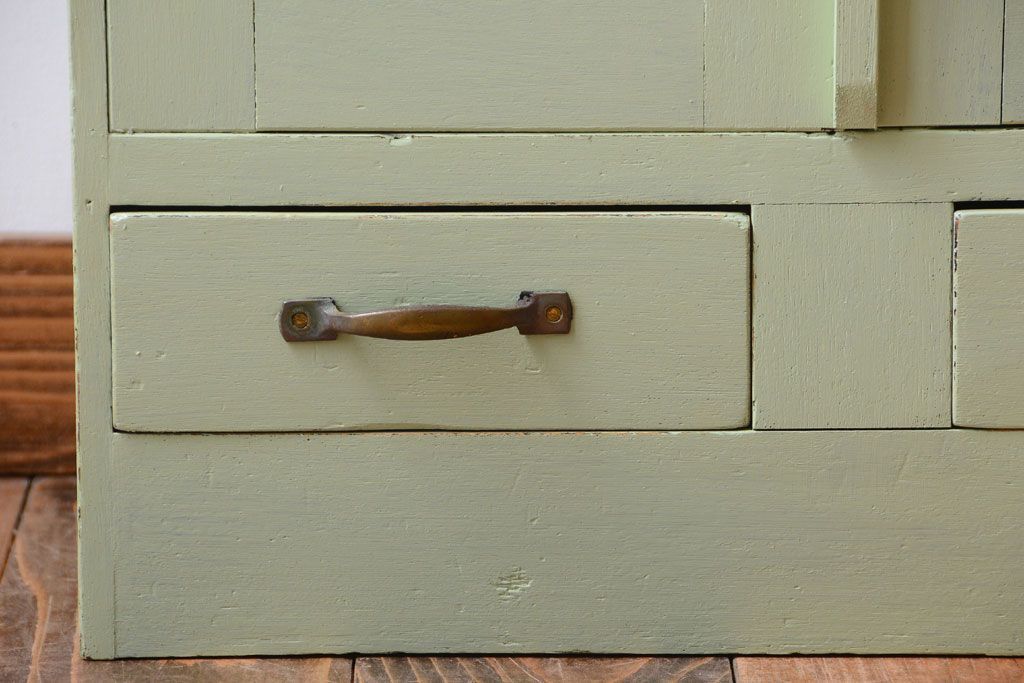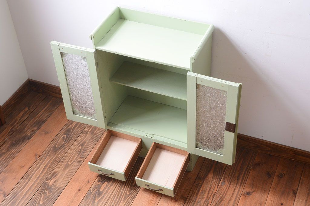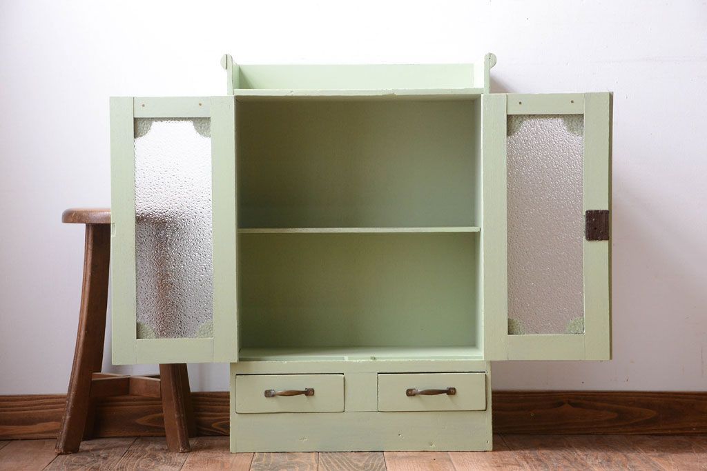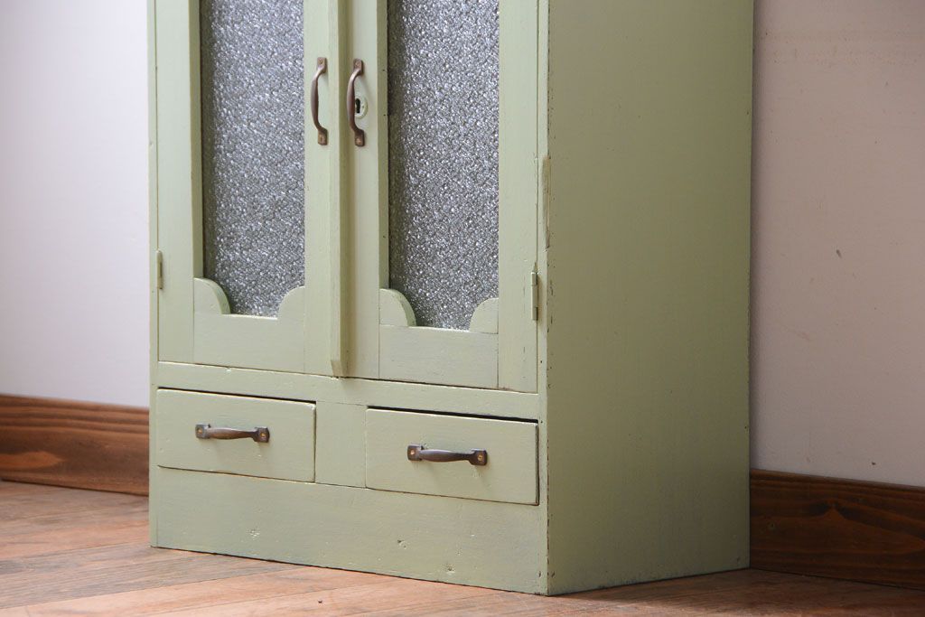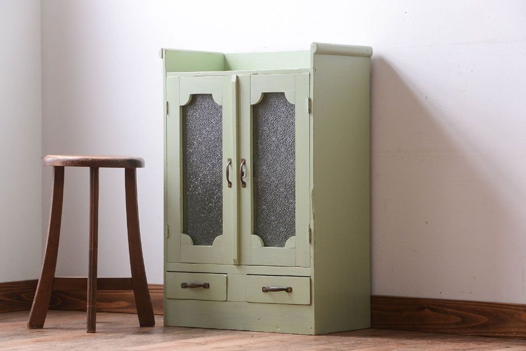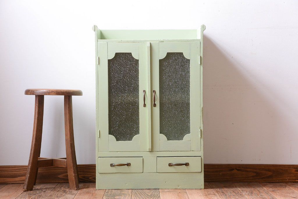 アンティーク家具 アンティークペイント ダイヤガラス入りの小さな本箱(ブックケース)
