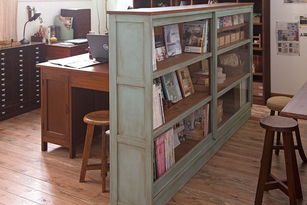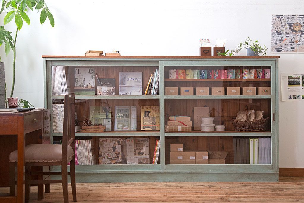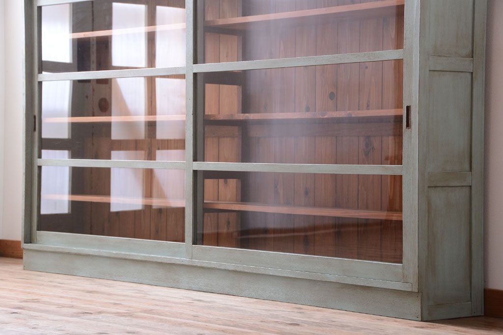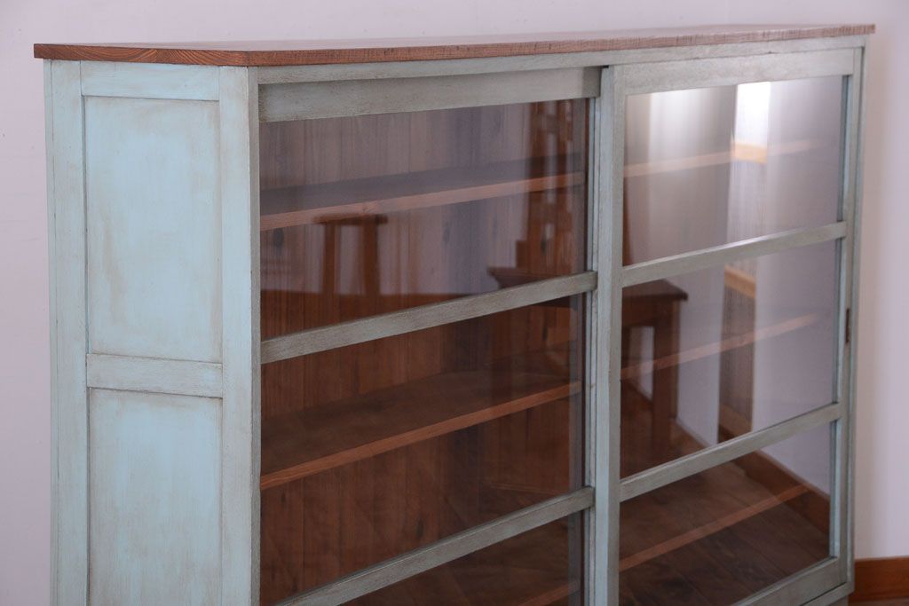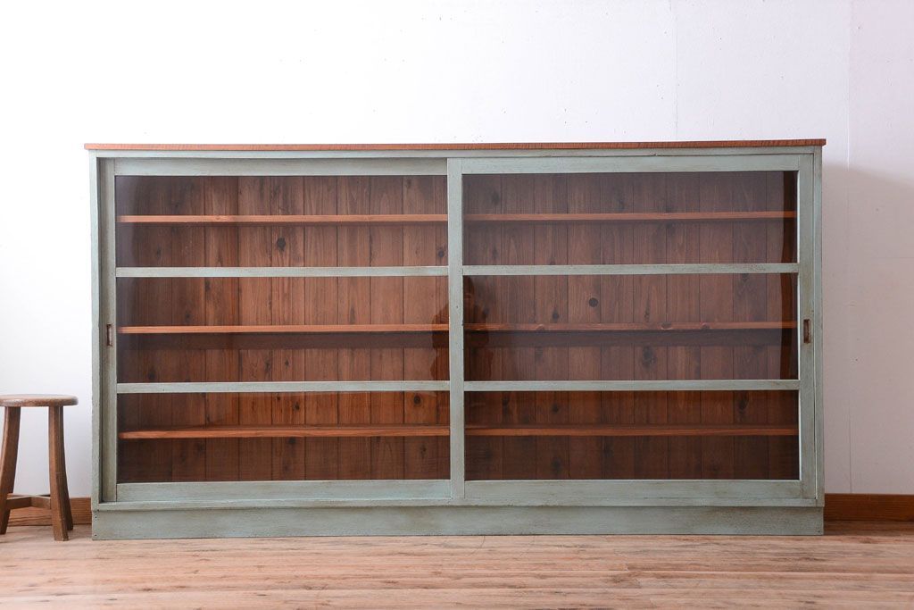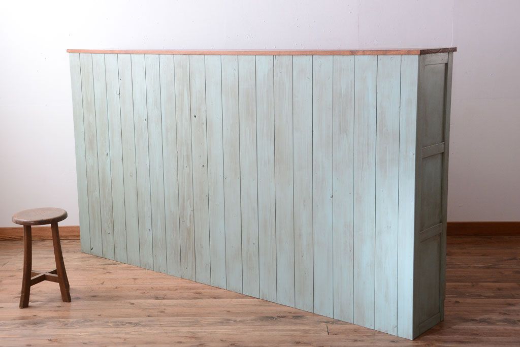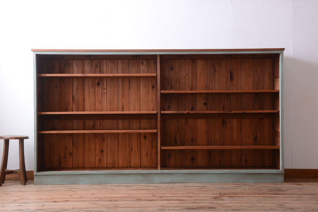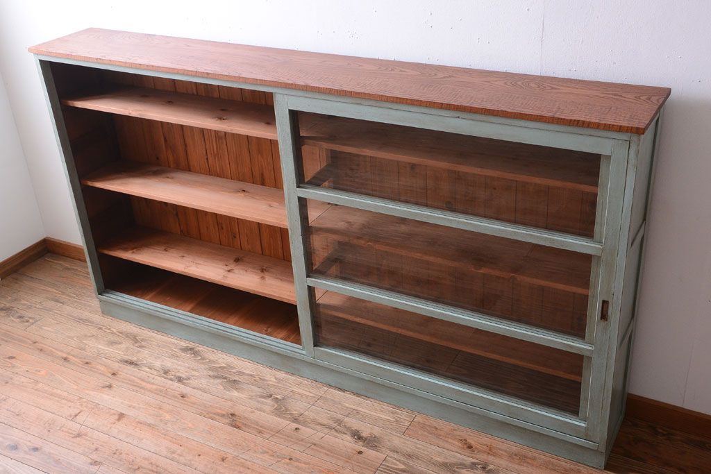 レトロ家具 アンティークペイント 特大サイズ!レトロな横長収納棚(2)