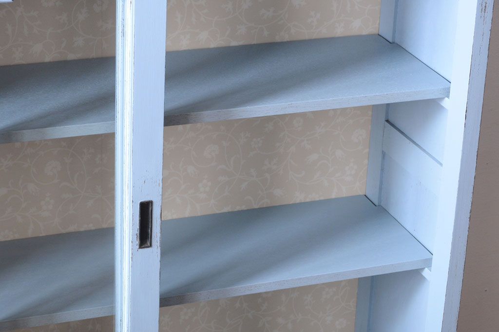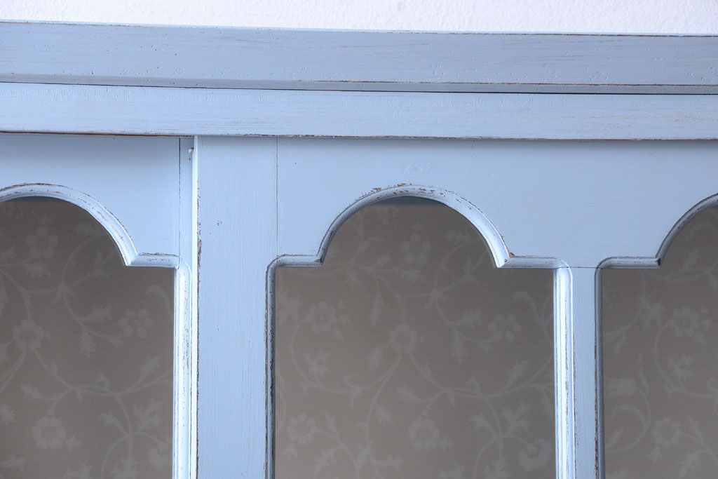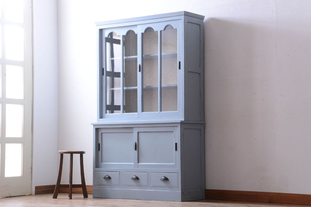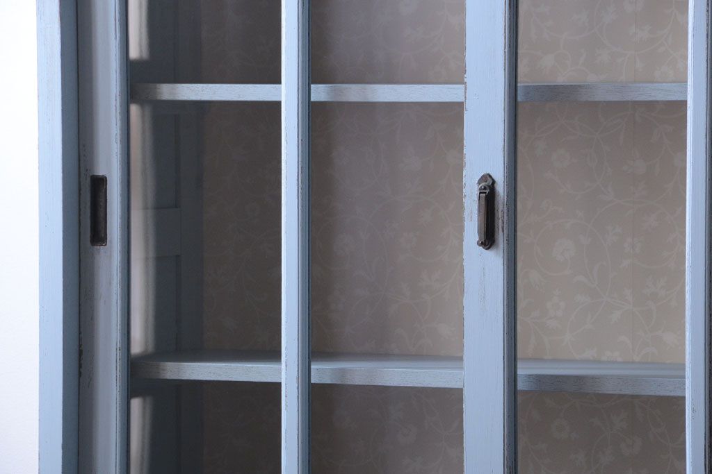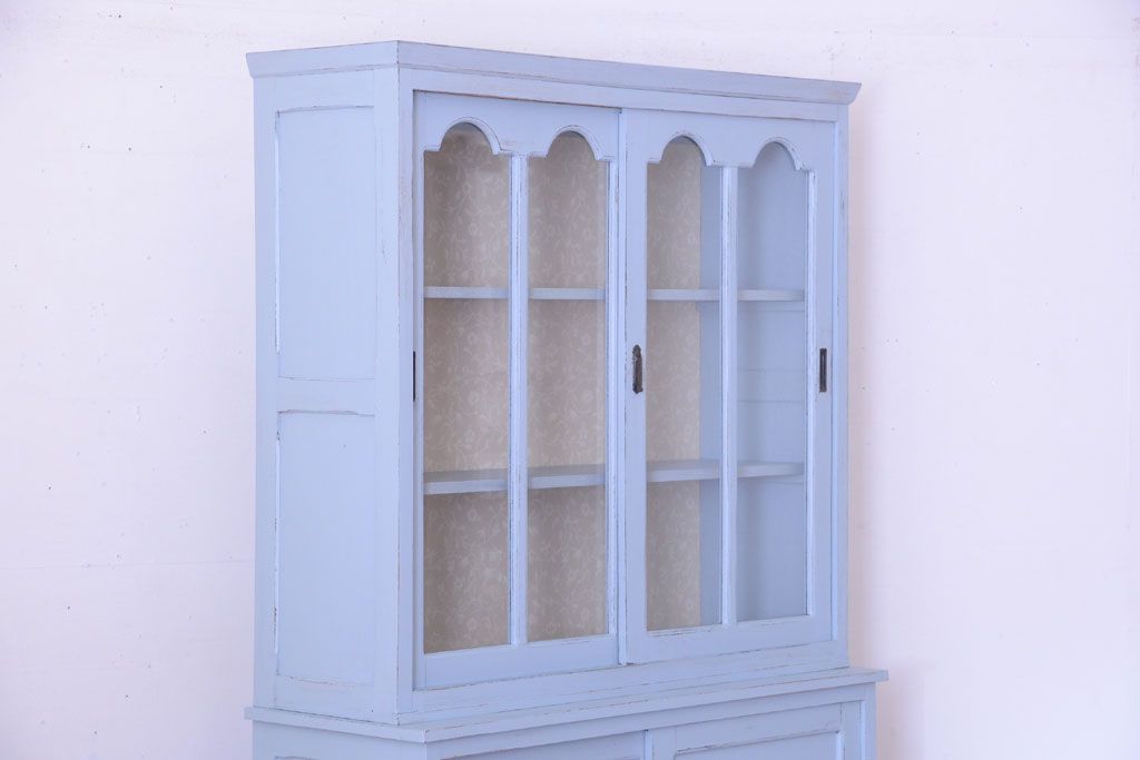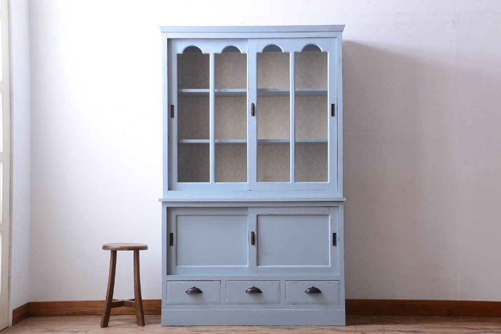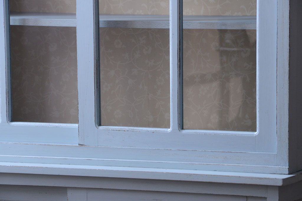アンティーク家具 アンティークペイント 内部壁紙仕上げ!おしゃれなカップボード(食器棚)
