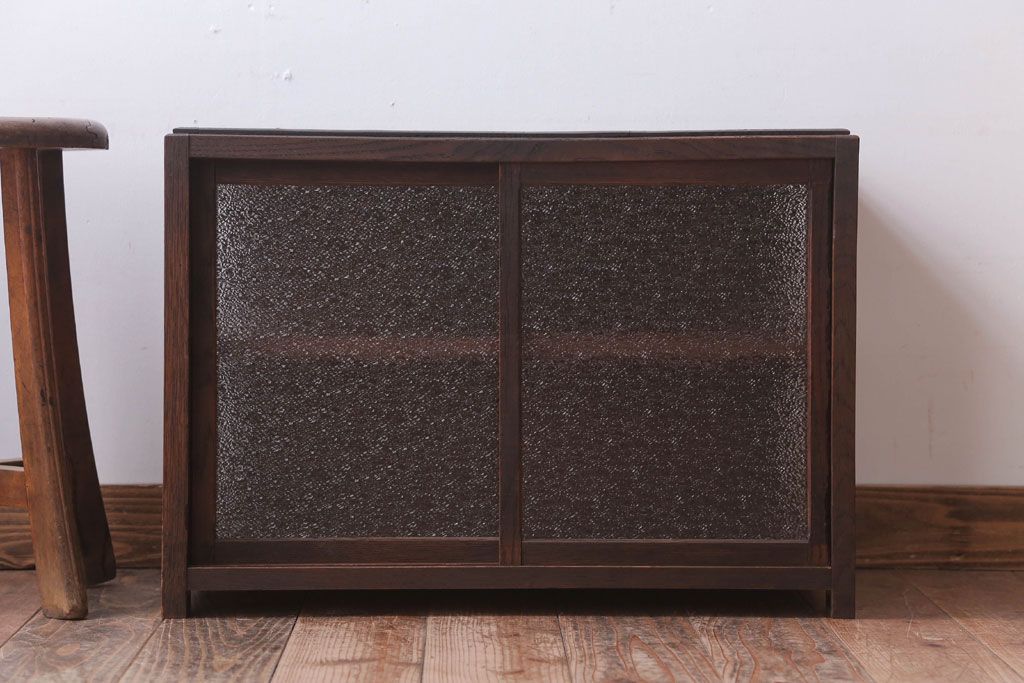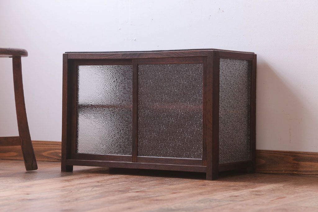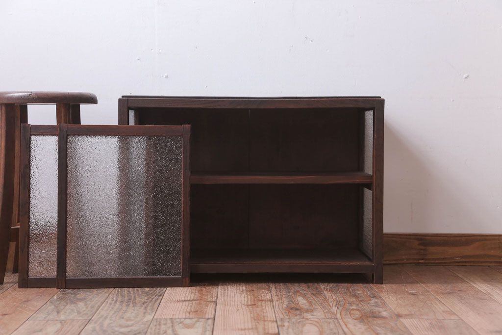 和製アンティーク 3面ダイヤガラス仕上げ!小ぶりな収納棚です。