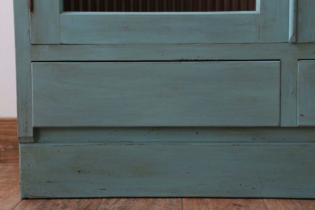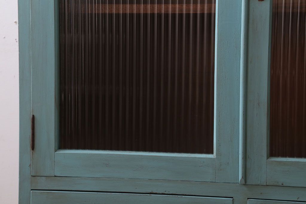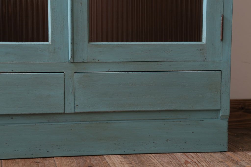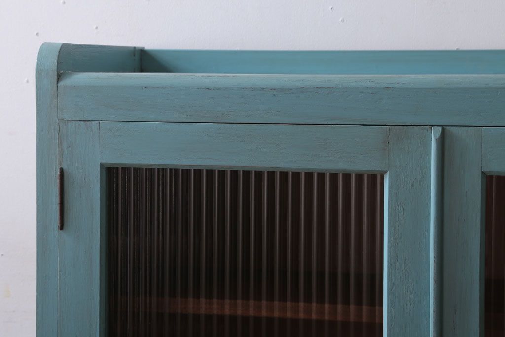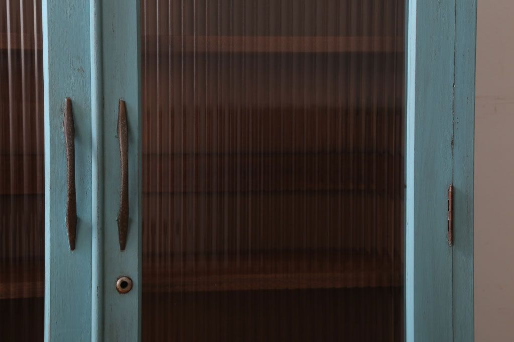 ラフジュ工房> キャビネット・戸棚> 食器棚・カップボード > アンティーク家具 モールガラス入り ペイント アンティークブックケース(本箱)
