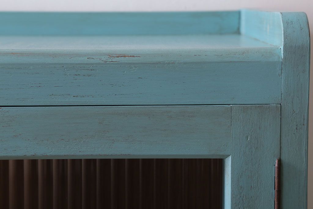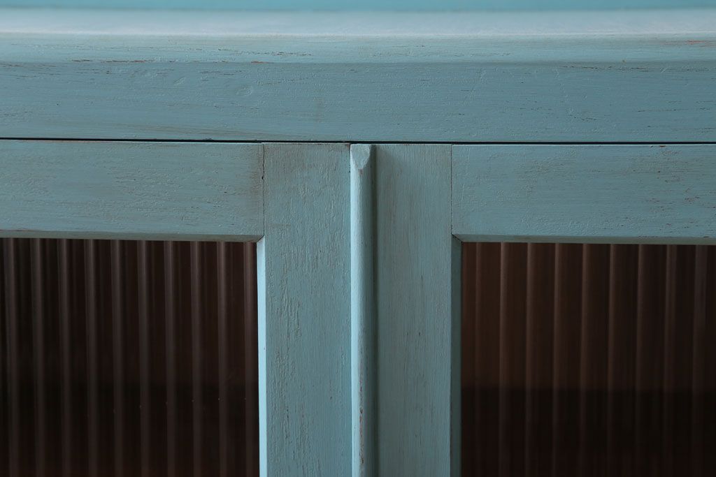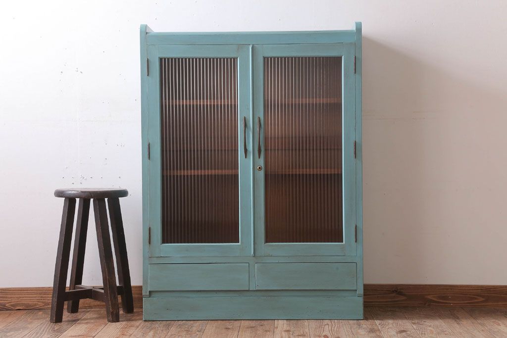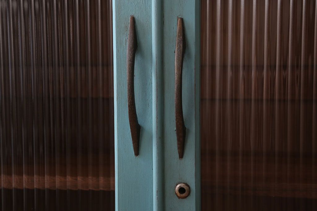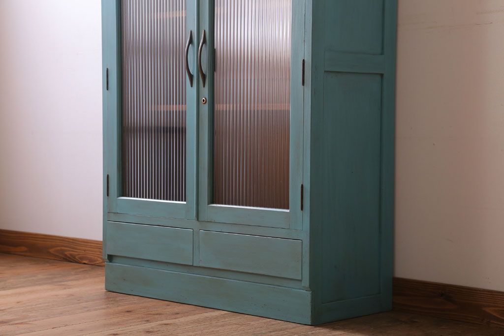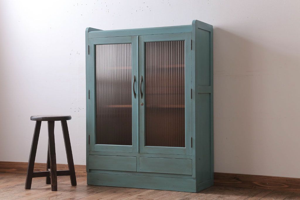 ラフジュ工房> キャビネット・戸棚> 食器棚・カップボード > アンティーク家具 モールガラス入り ペイント アンティークブックケース(本箱)