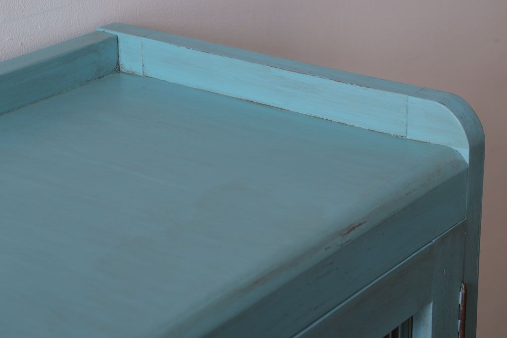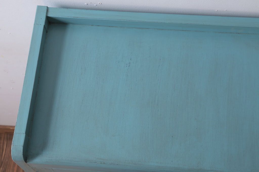ラフジュ工房> キャビネット・戸棚> サイドボード > アンティーク家具 モールガラス入り ペイント アンティークブックケース(本箱)
