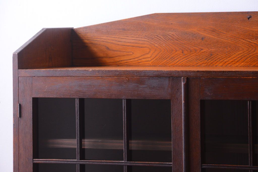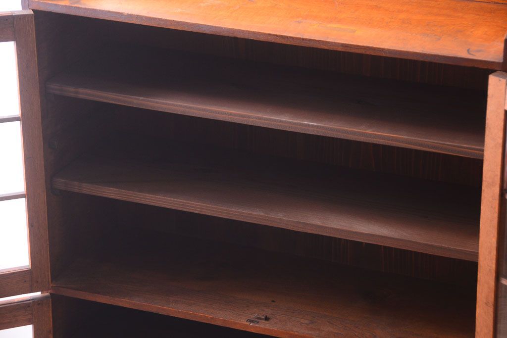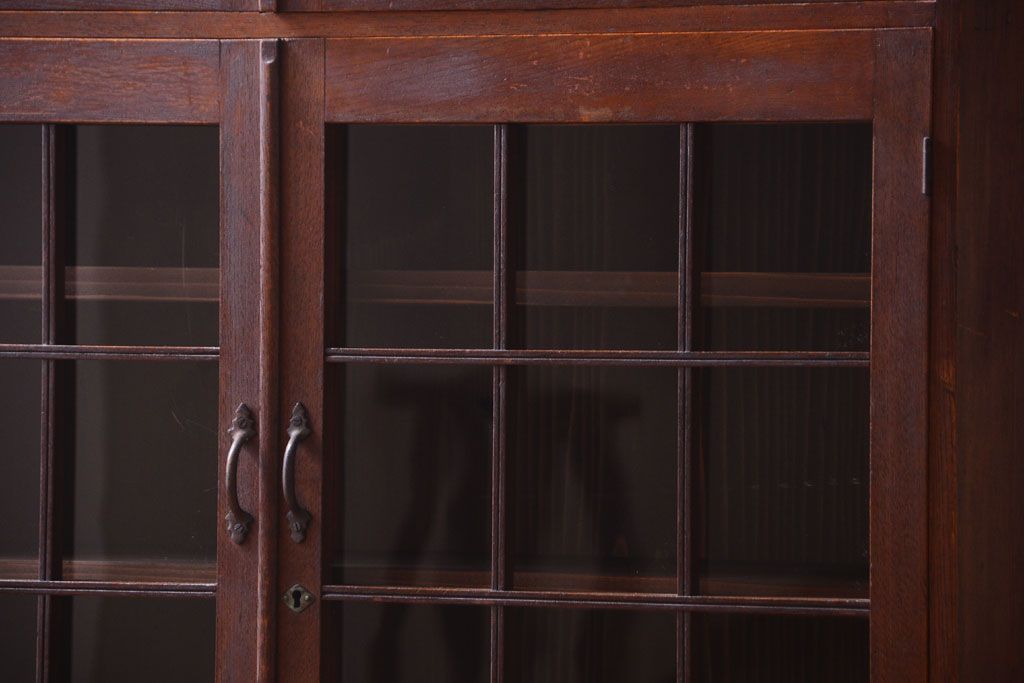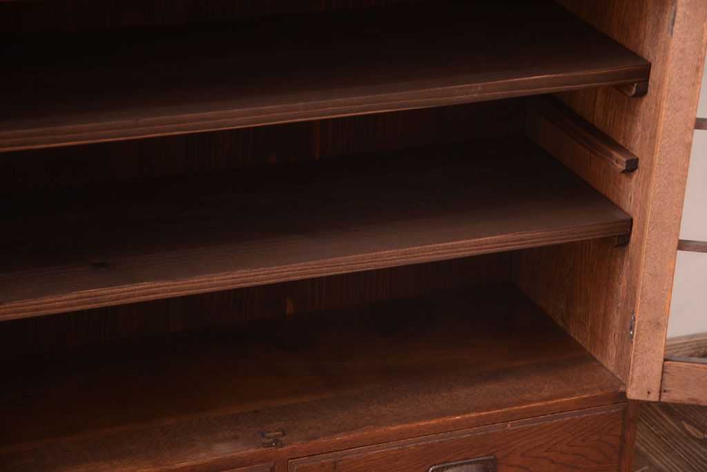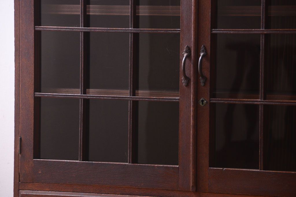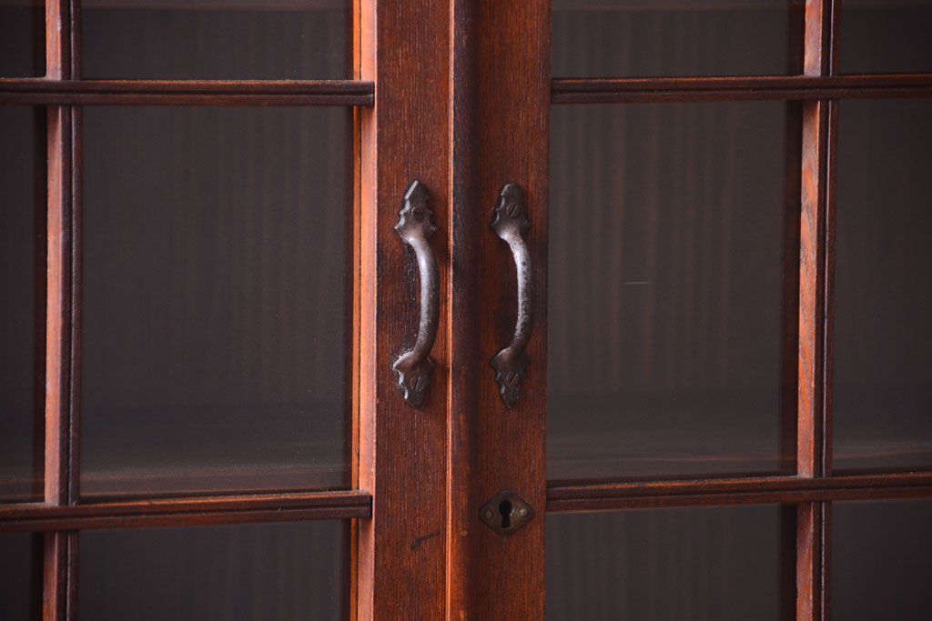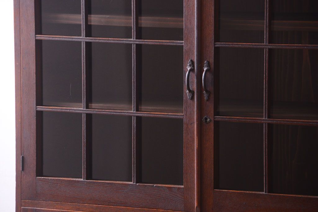 アンティーク家具 格子扉!古いナラ材の和製アンティーク戸棚(収納棚・本箱)