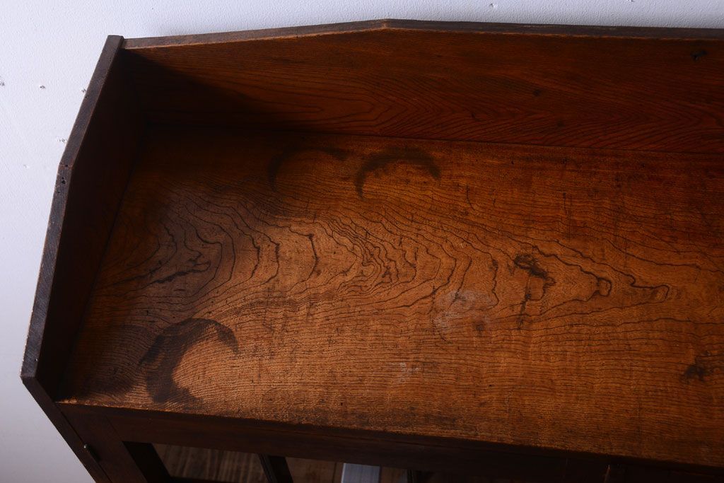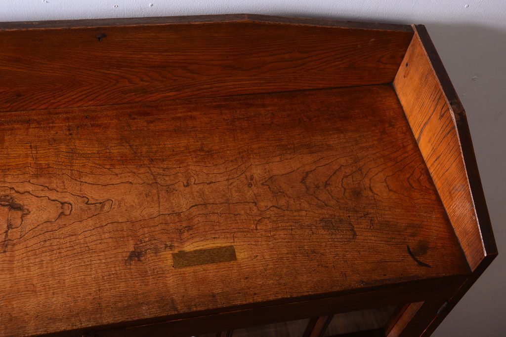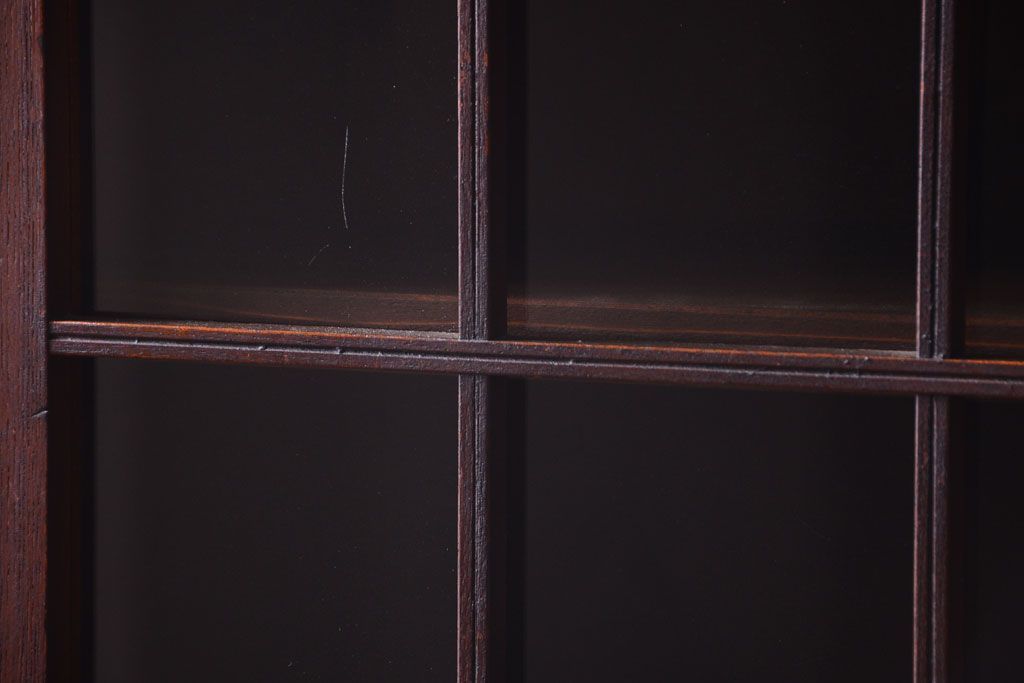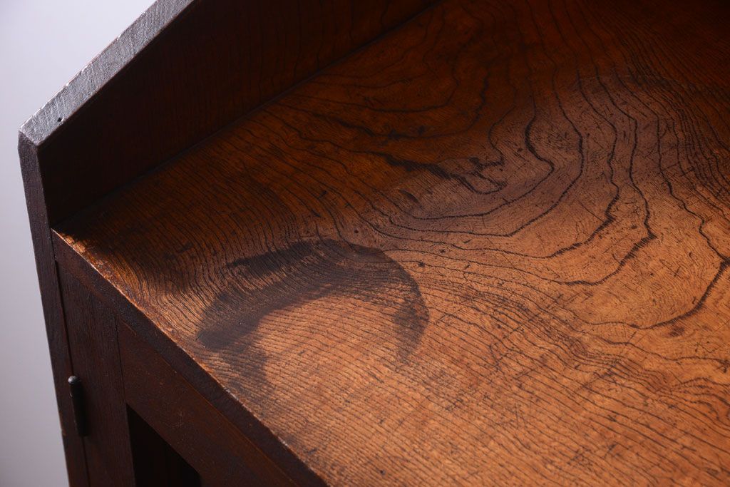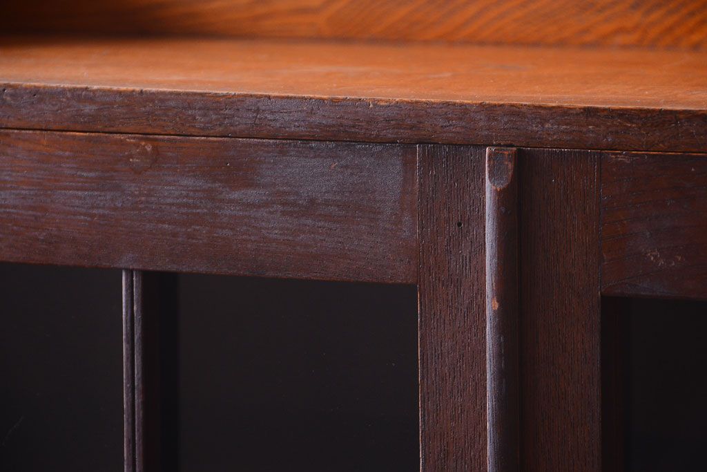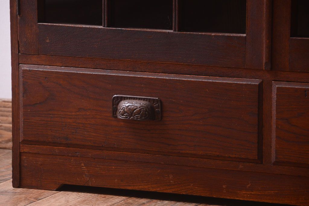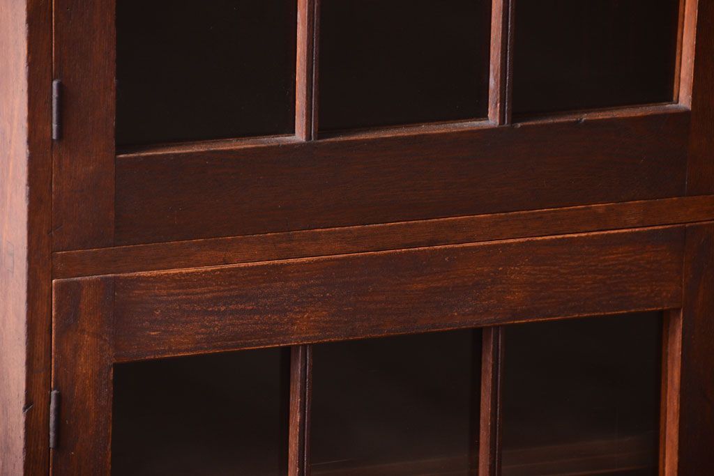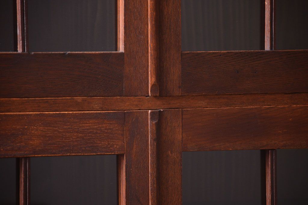 アンティーク家具 格子扉!古いナラ材の和製アンティーク戸棚(収納棚・本箱)