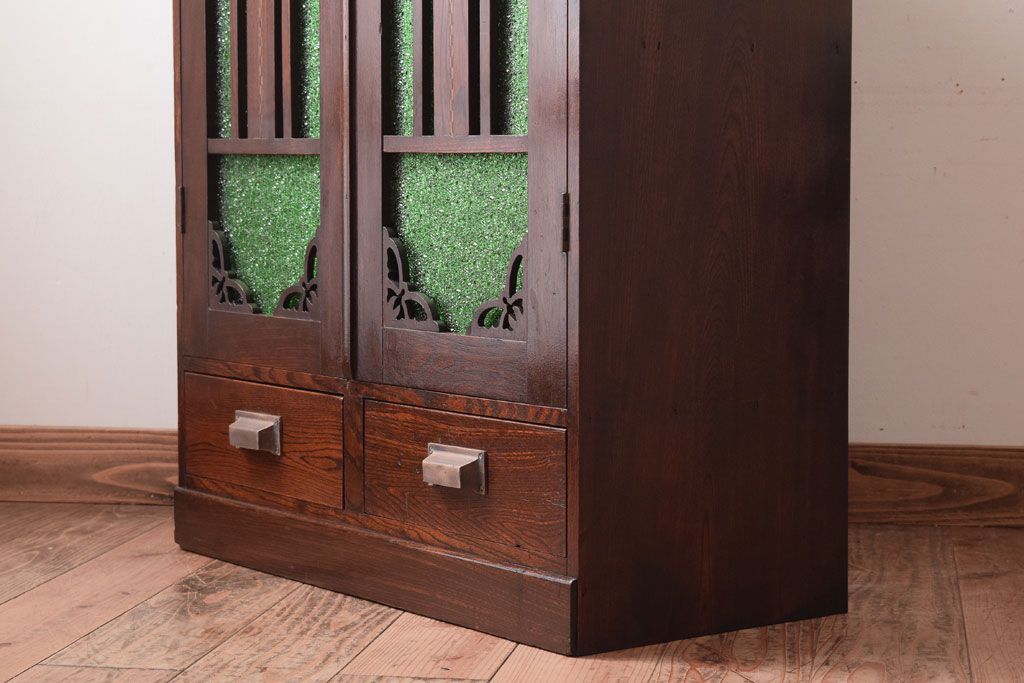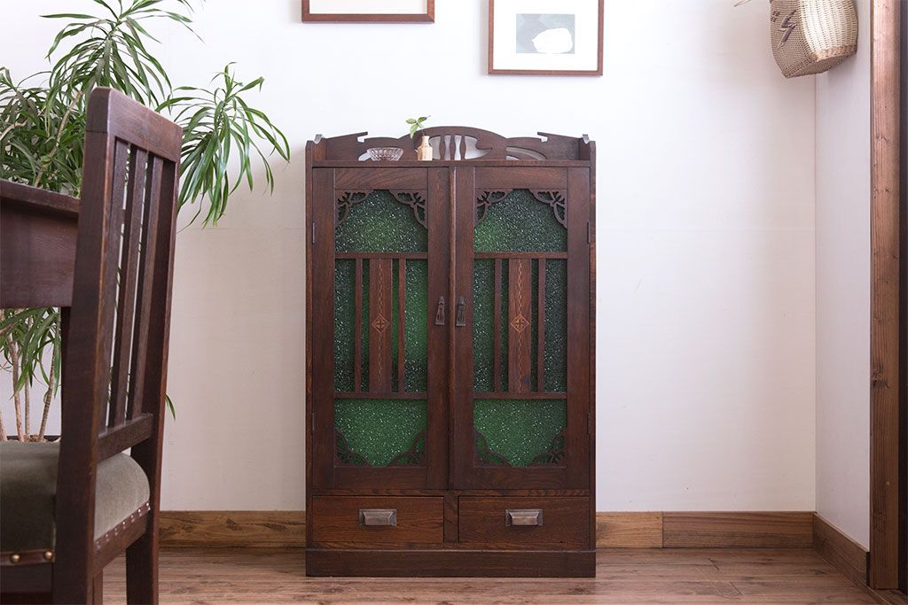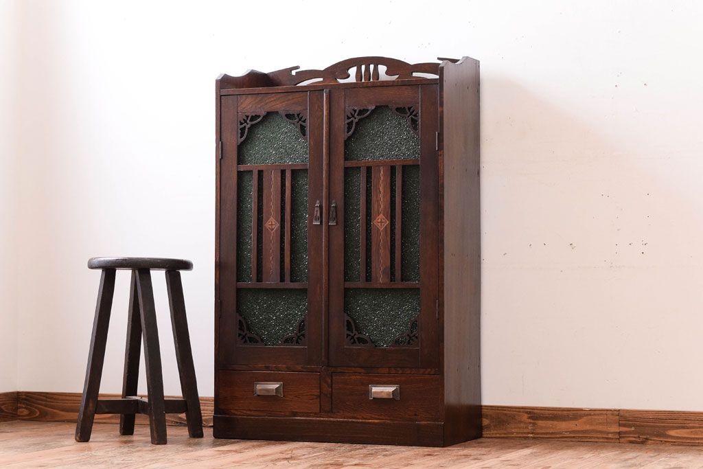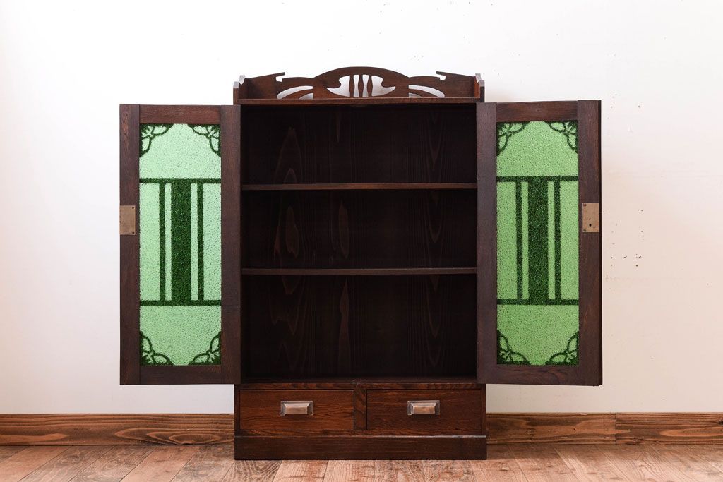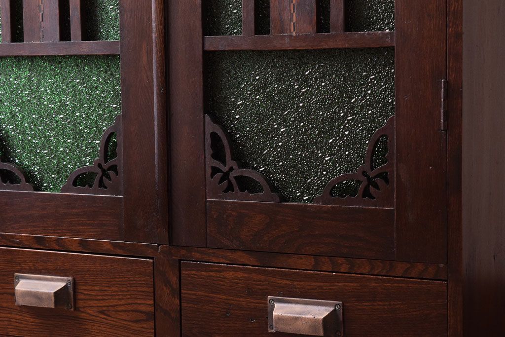 アンティーク家具 大正期 当時物色ガラス入りの高級品!和製アンティークの本箱(ブックケース)