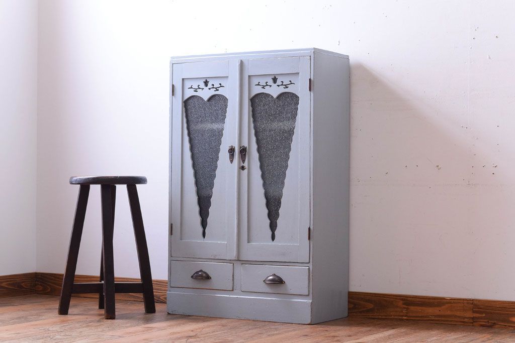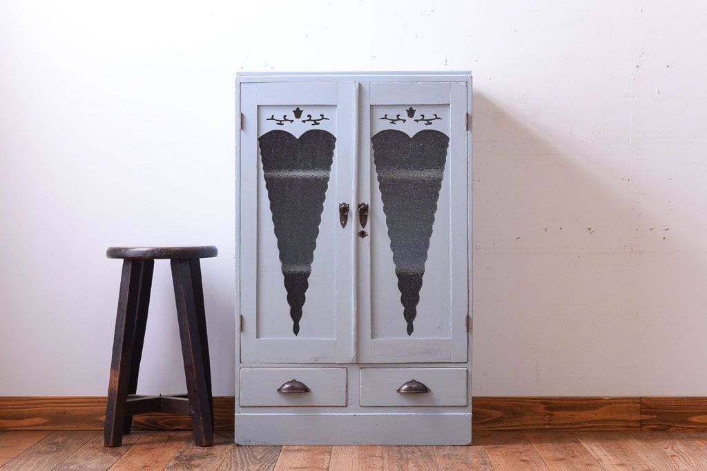 アンティーク家具 ダイヤガラス入り!かわいいアンティーク本箱(ブックケース)