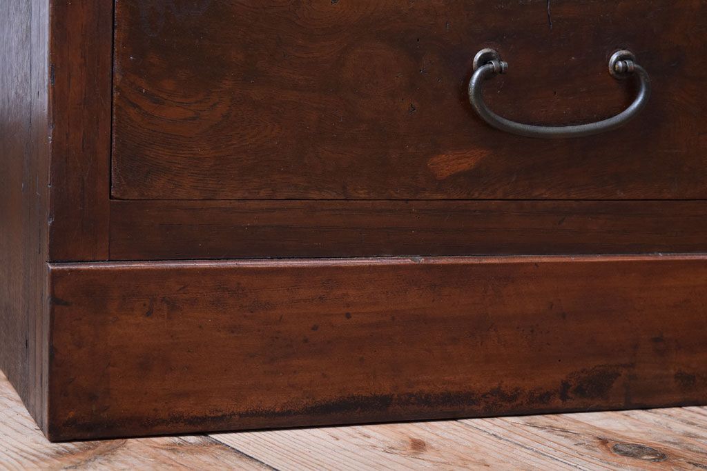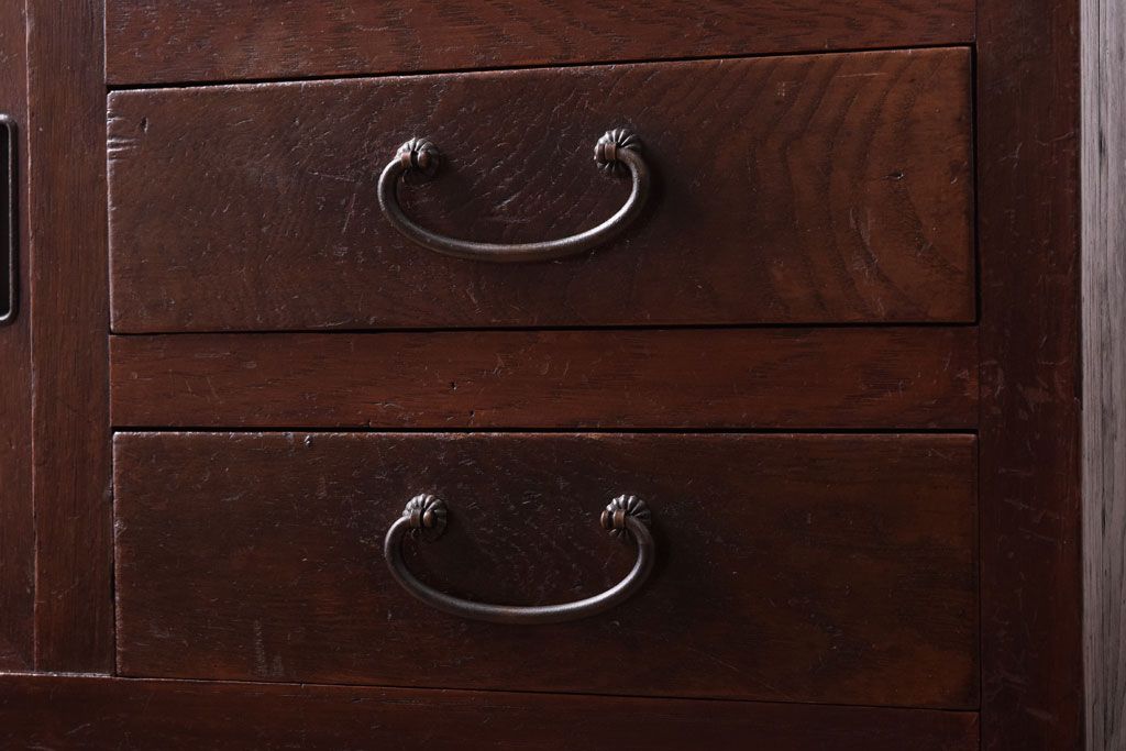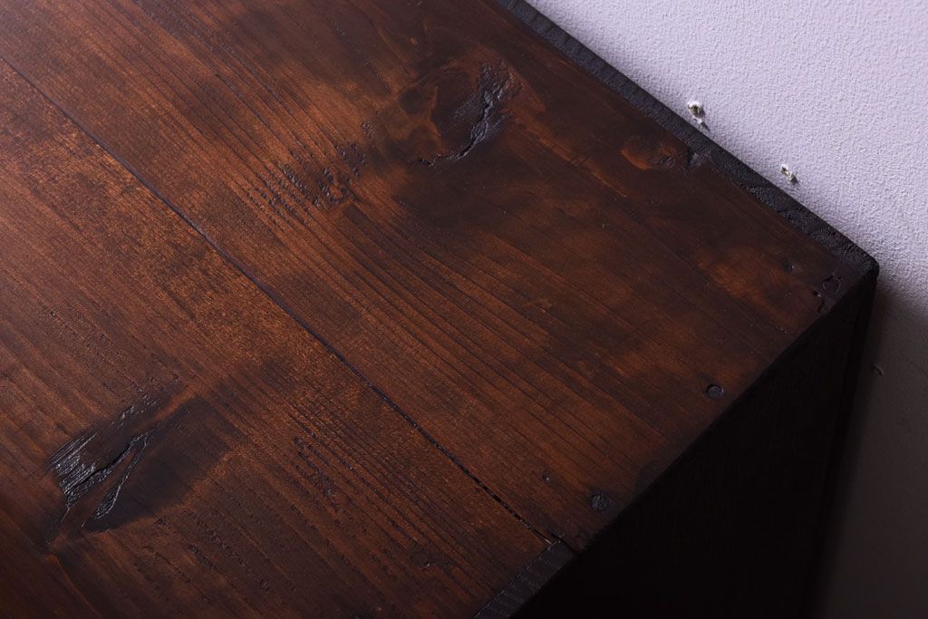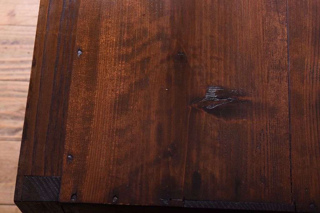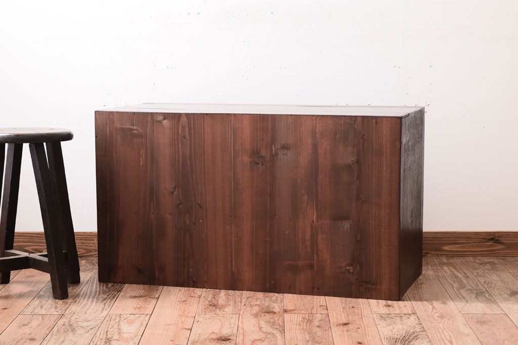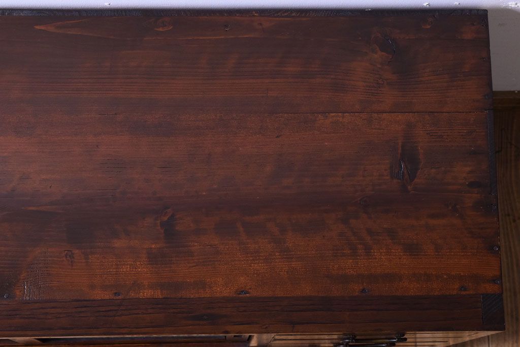 ラフジュ工房> キャビネット・戸棚> テレビ台・ローボード > アンティーク家具 結霜ガラス入り!古い木のアンティークローボード