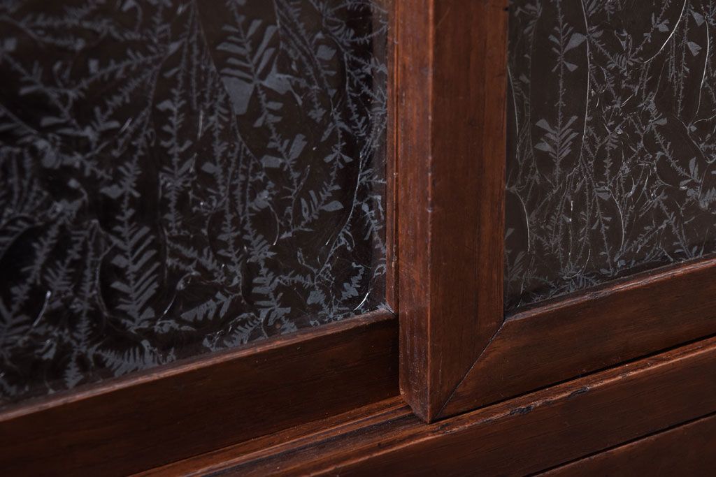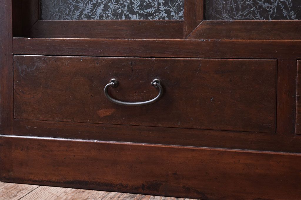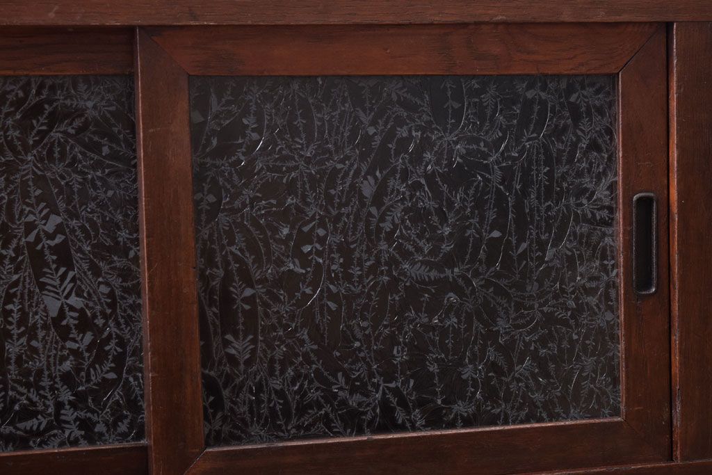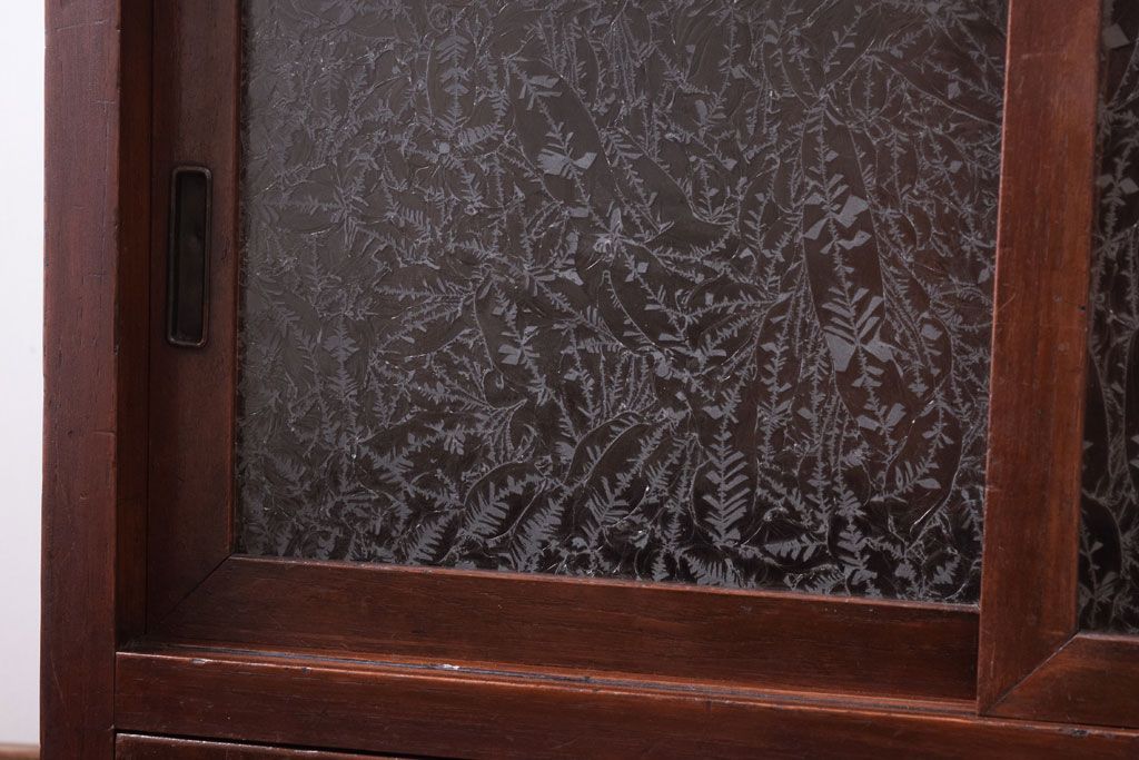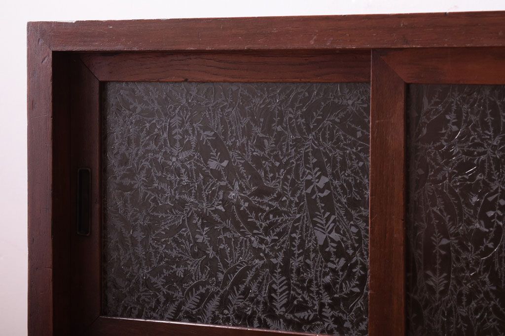 アンティーク家具 結霜ガラス入り!古い木のアンティークローボード