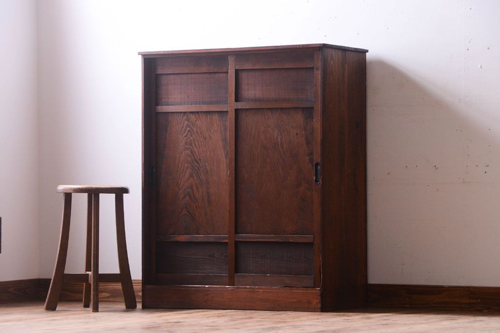 アンティーク家具 古い木製のアンティーク収納戸棚(キャビネット)