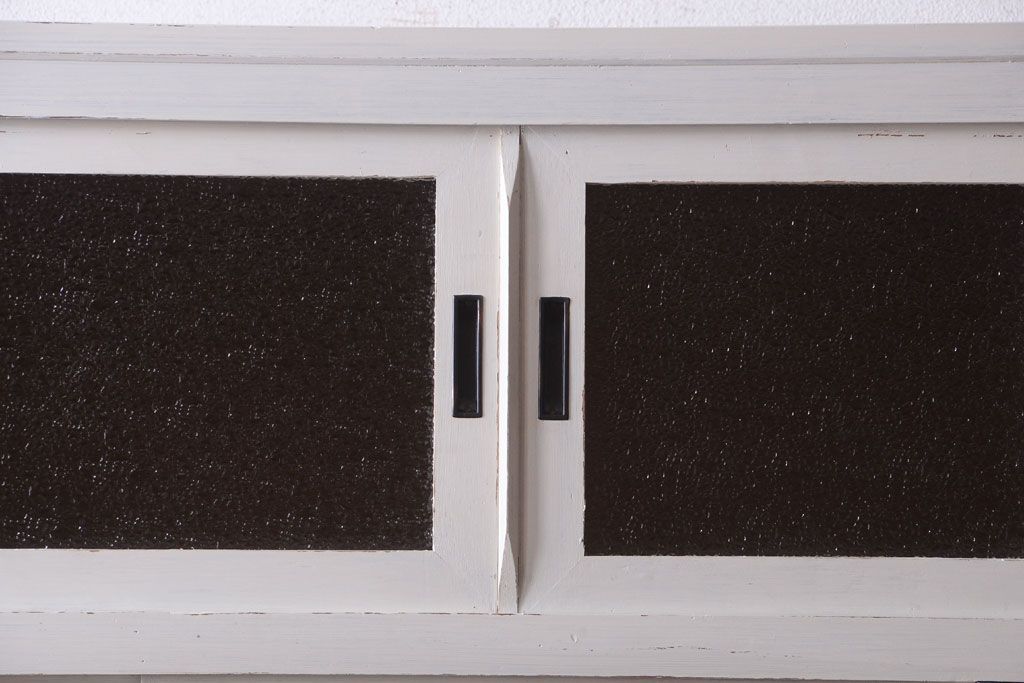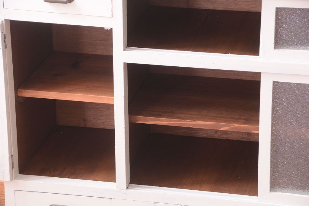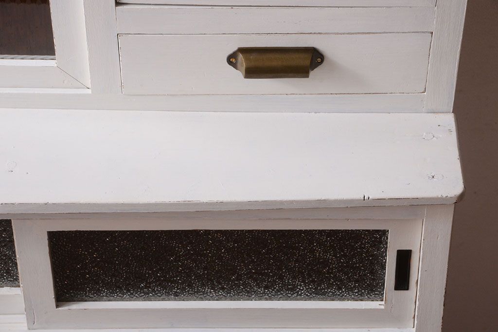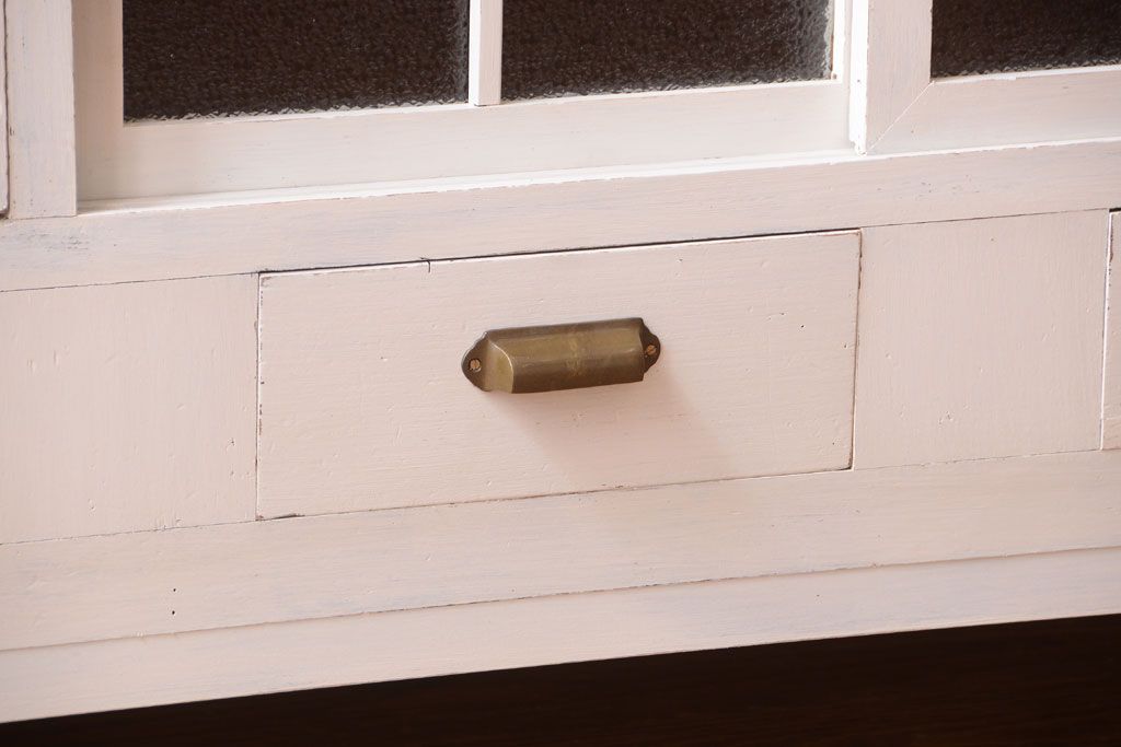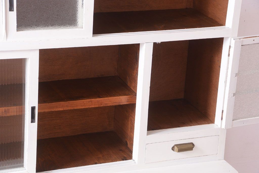 アンティークペイント ダイヤガラス・モールガラス入り!レトロな食器棚です。
