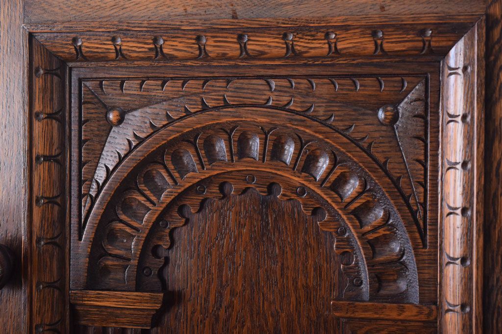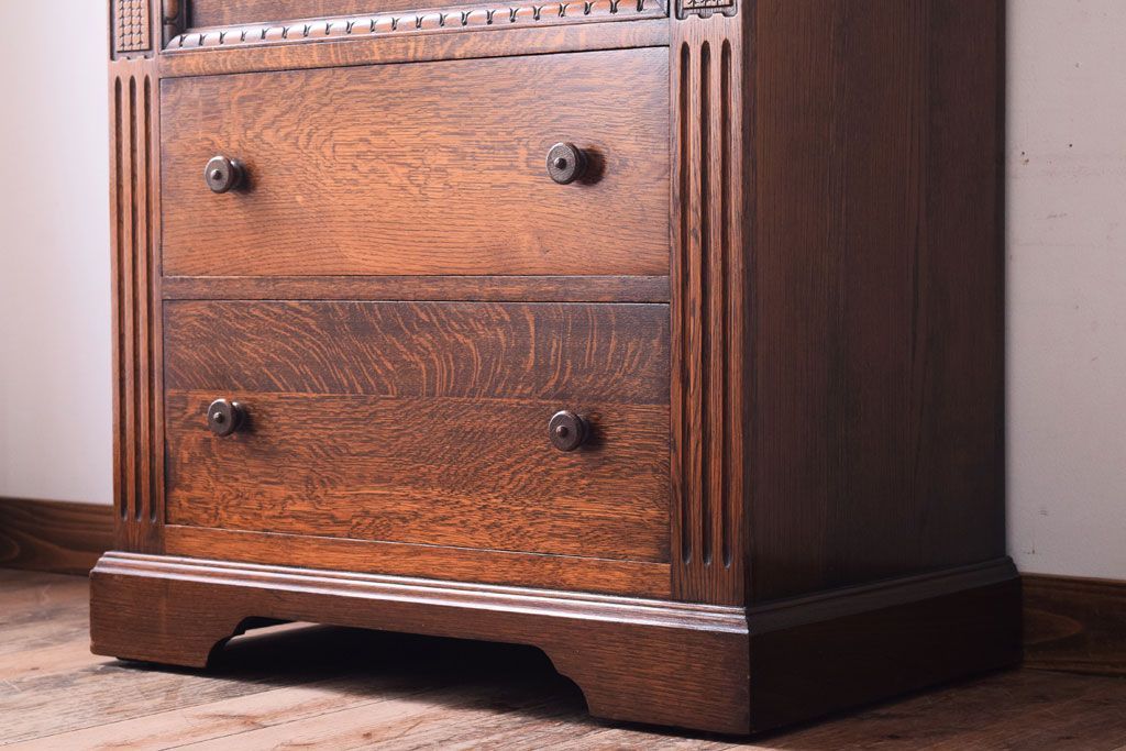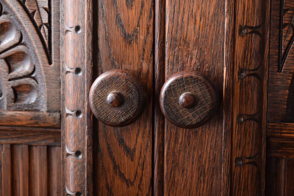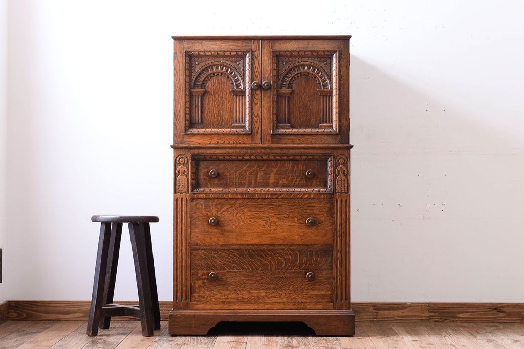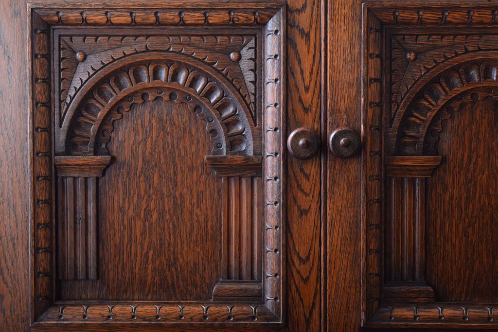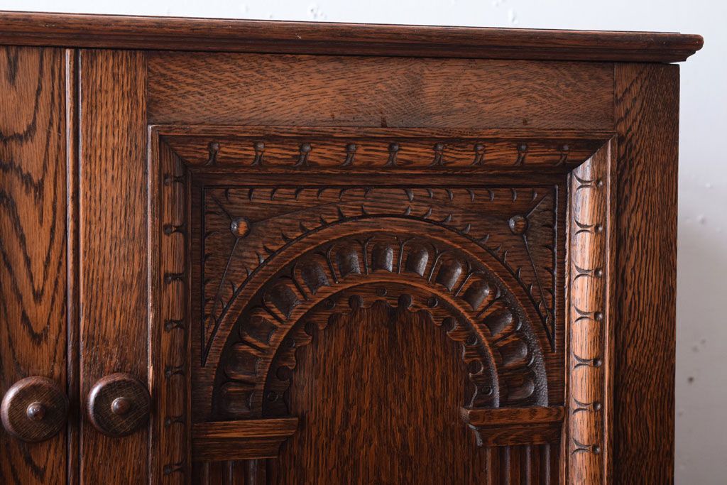ヴィンテージ家具 イギリスビンテージ オーク材製 彫刻が美しいサイドキャビネット