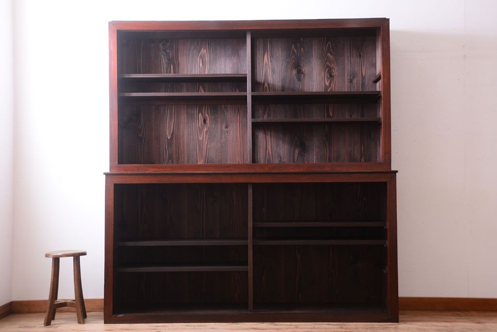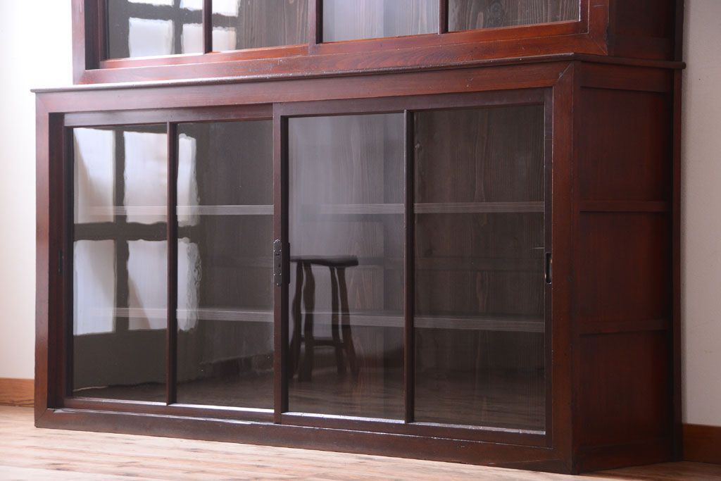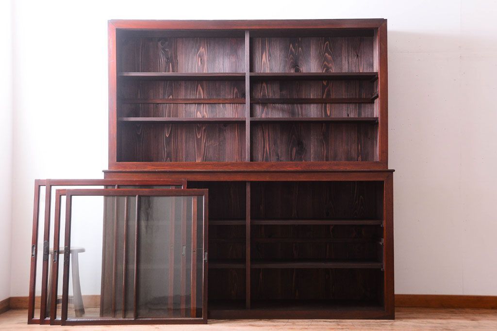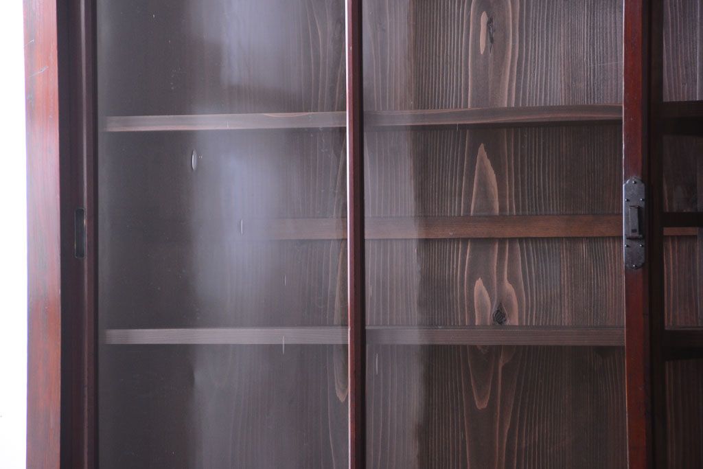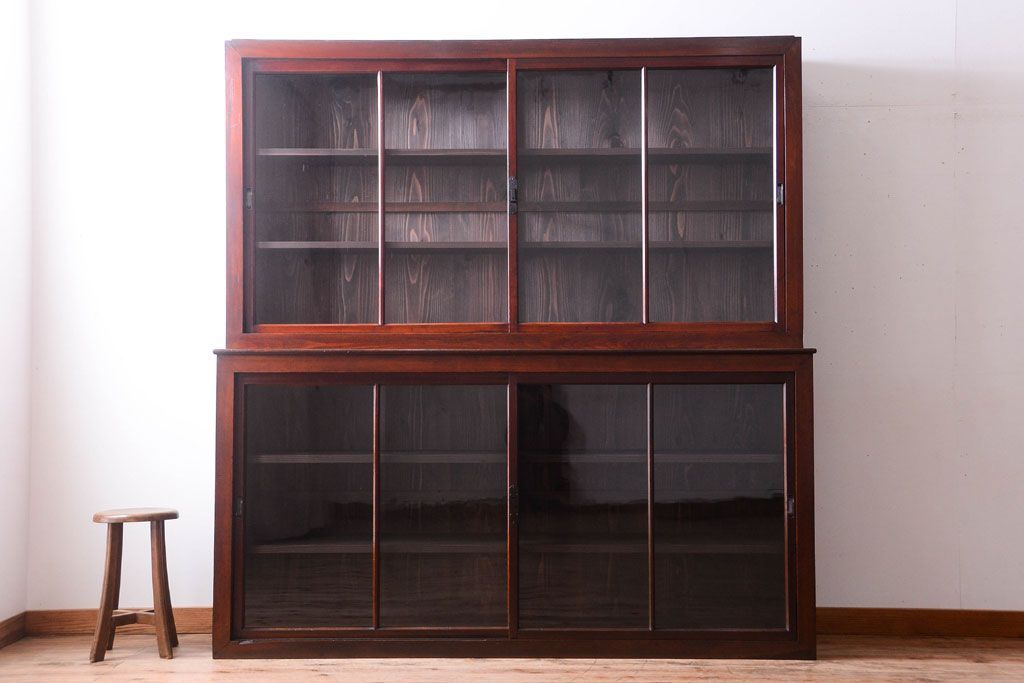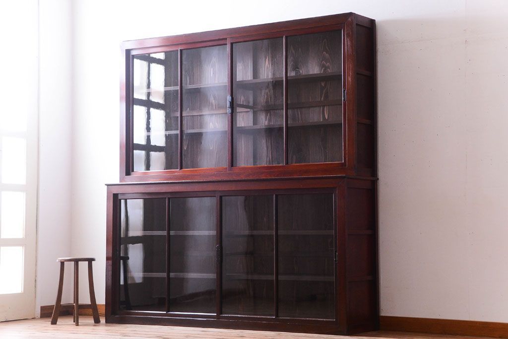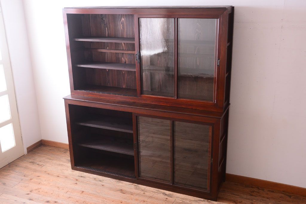 アンティーク家具 和製アンティーク 2枚引き戸!2段重ね収納棚(食器棚・キャビネット)