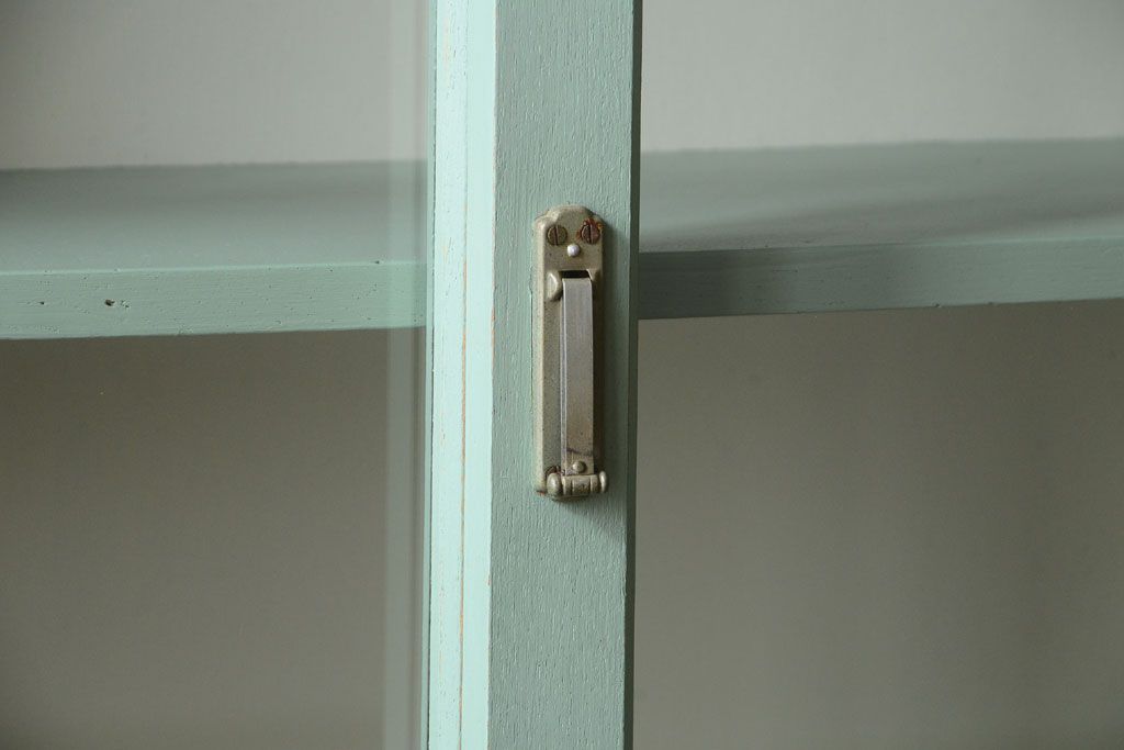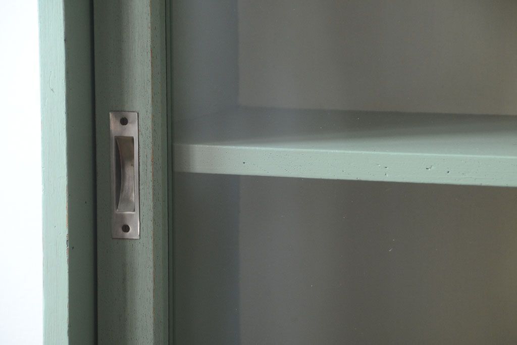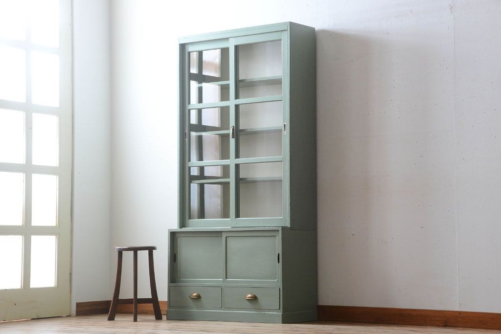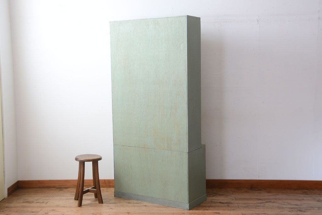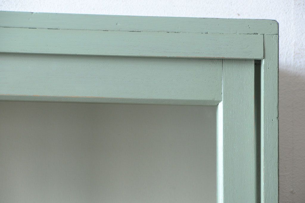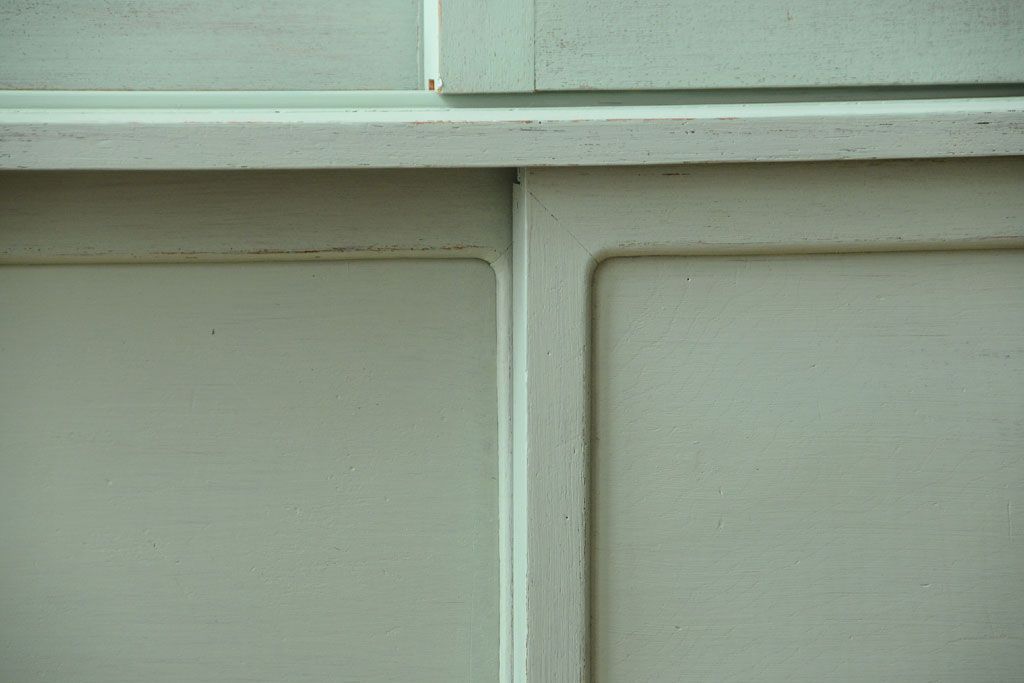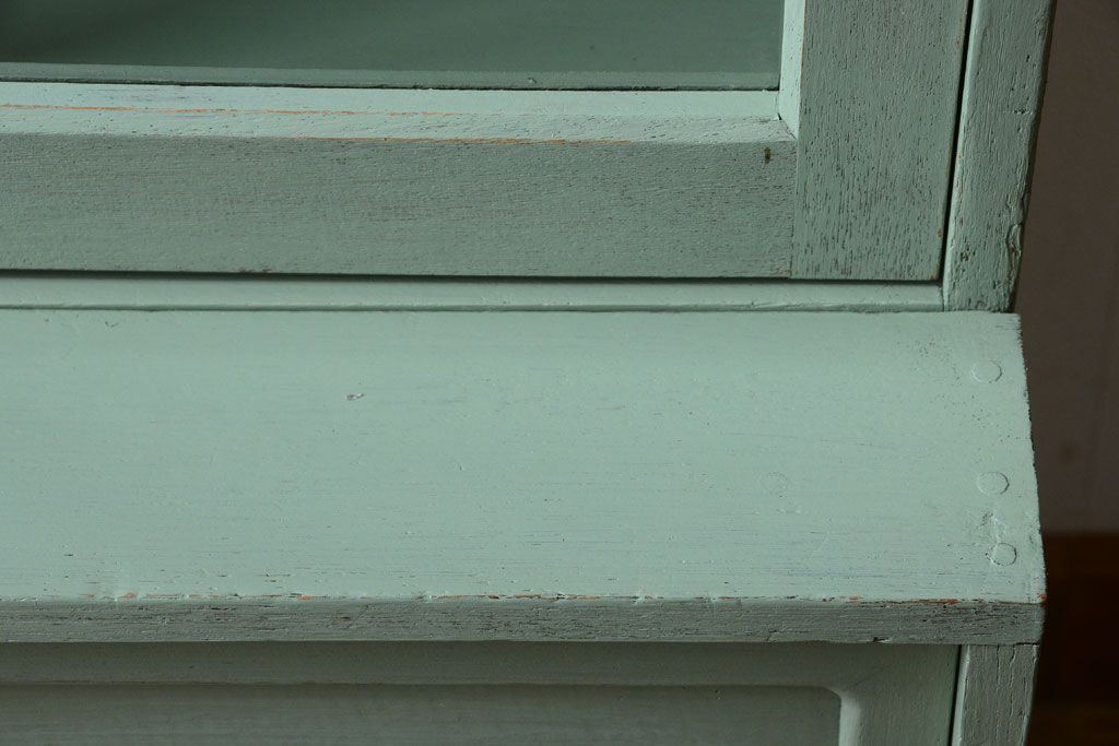 アンティーク家具 くすんだグリーンペイントの重ね収納棚(食器棚)