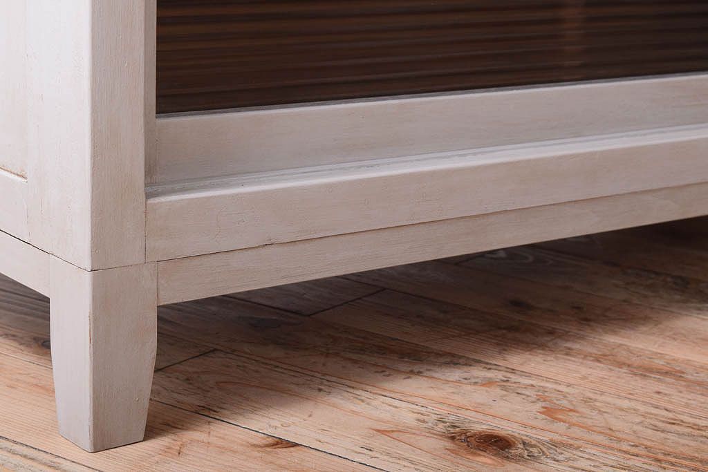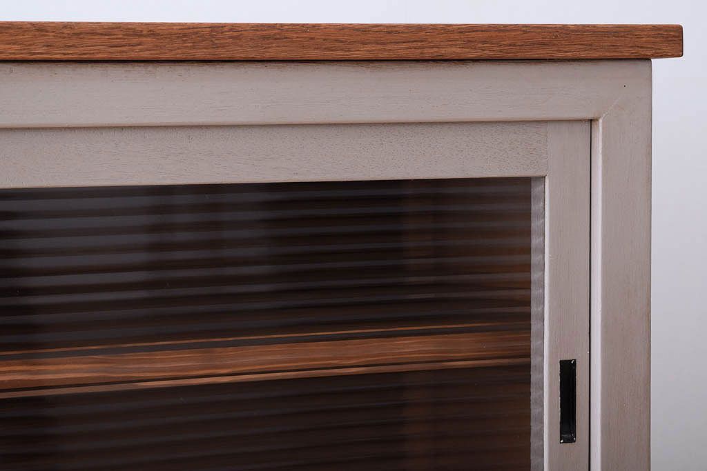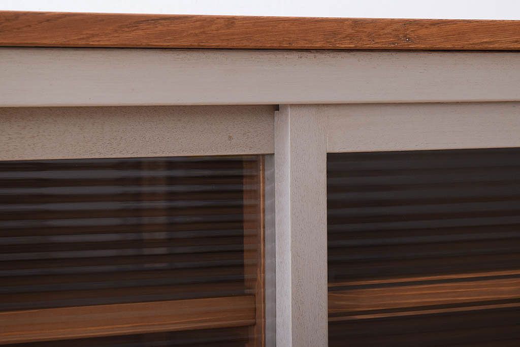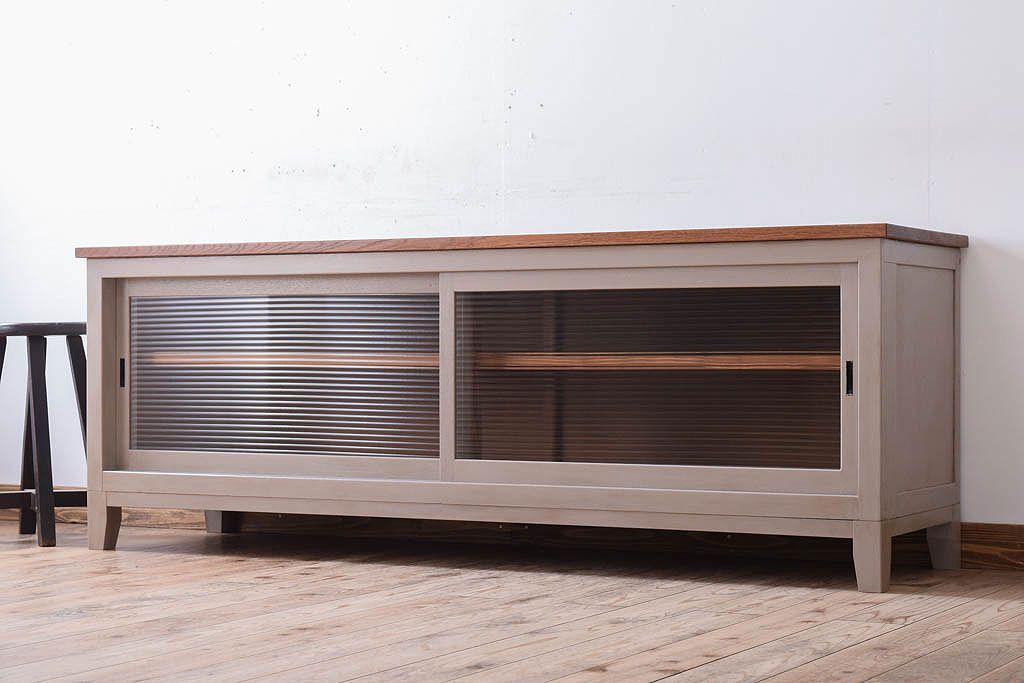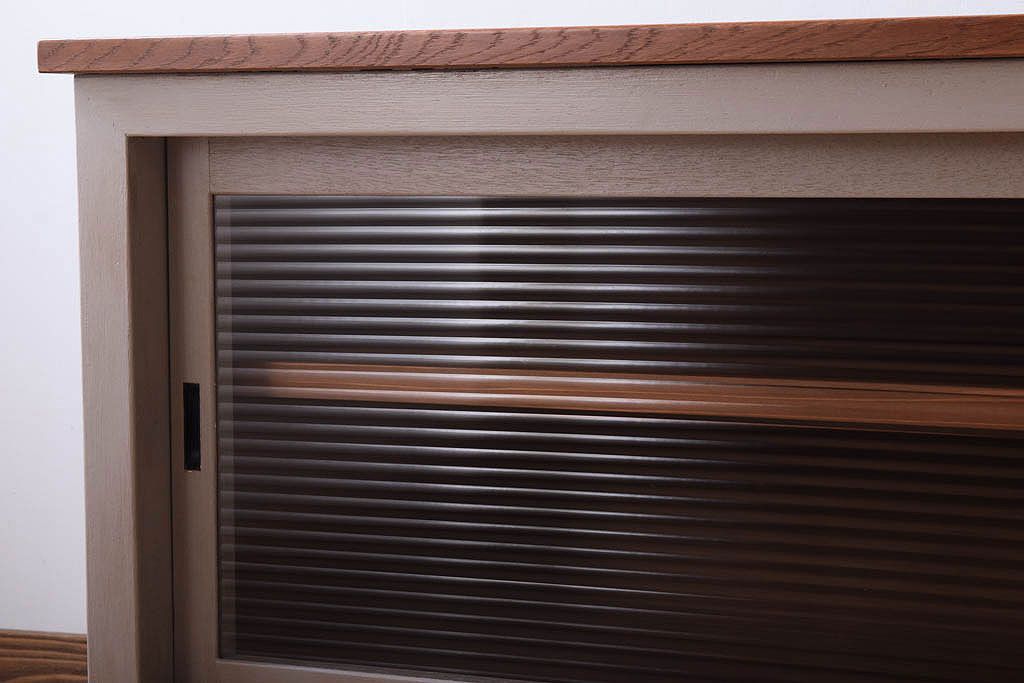天板オーク材 モールガラス入り!アンティークペイントのローボードです。