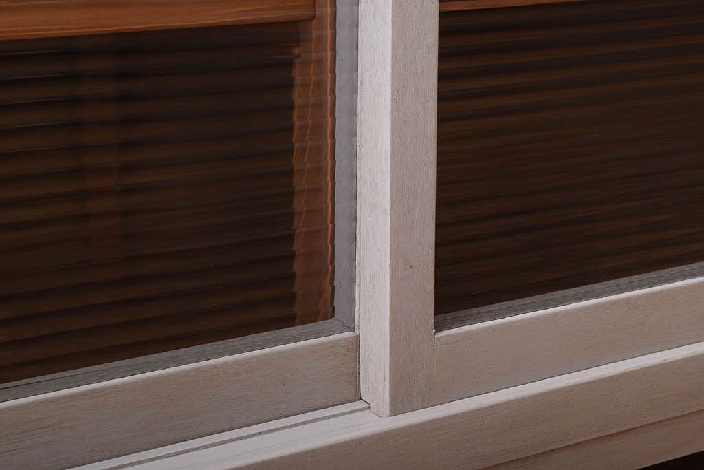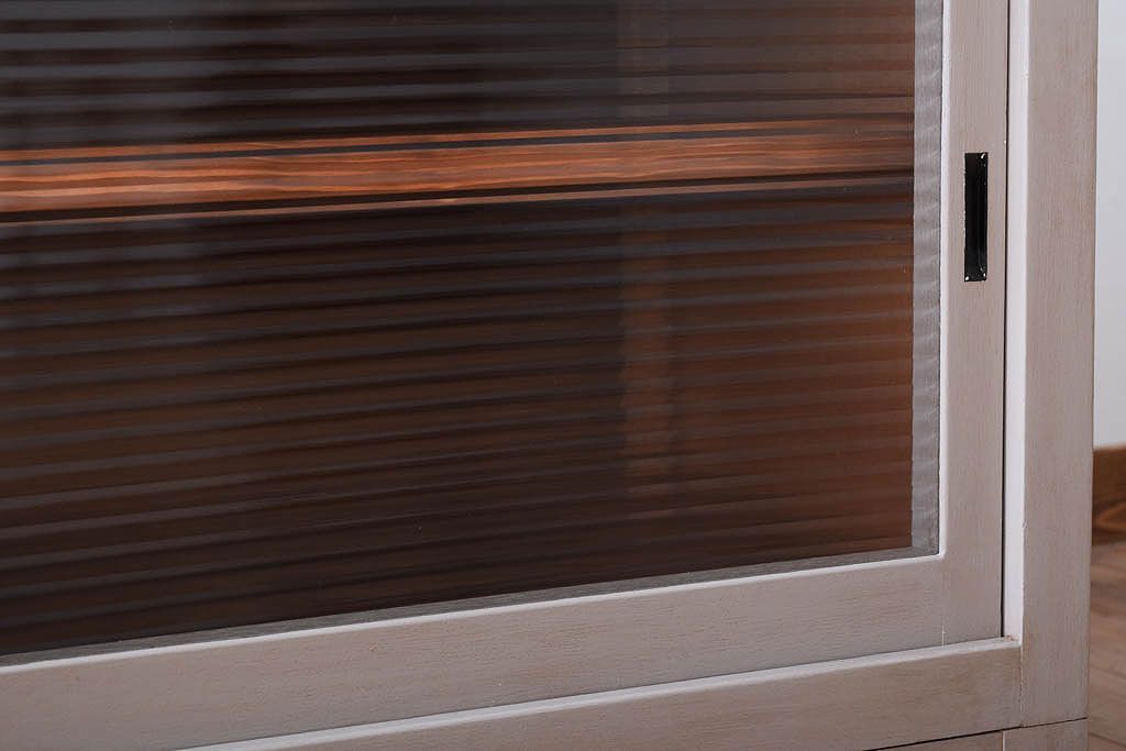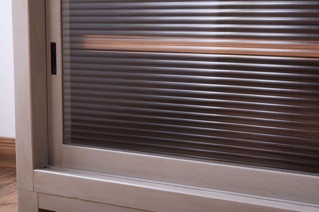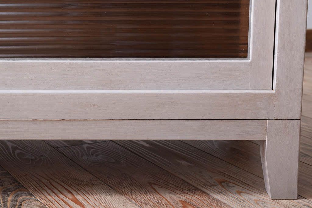 アンティーク家具 天板オーク材 モールガラス入り!アンティークペイントのローボード