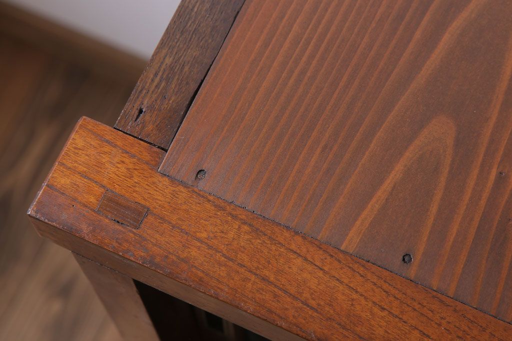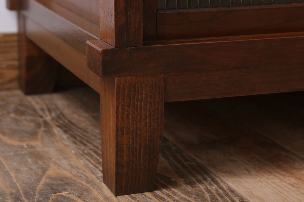 モールガラス 脚付き!古い木製のシンプルな収納棚(キャビネット)です。