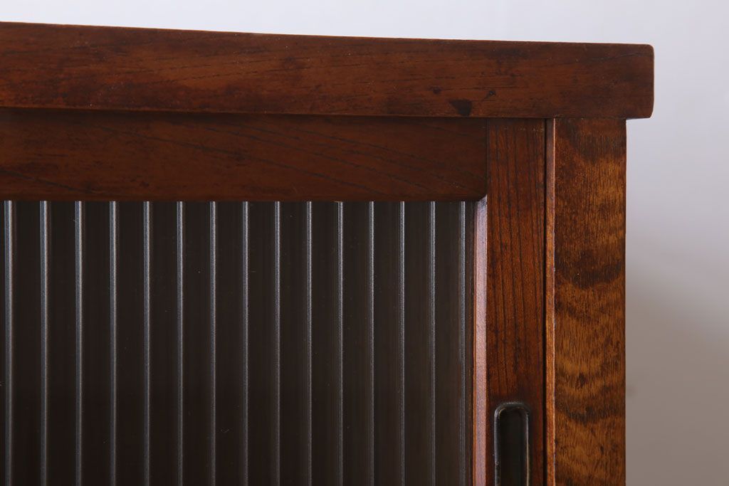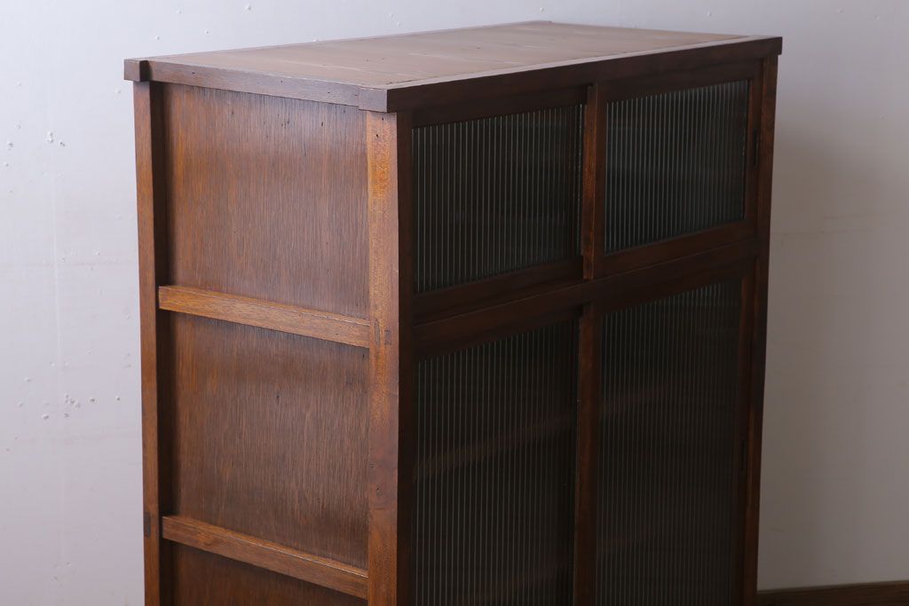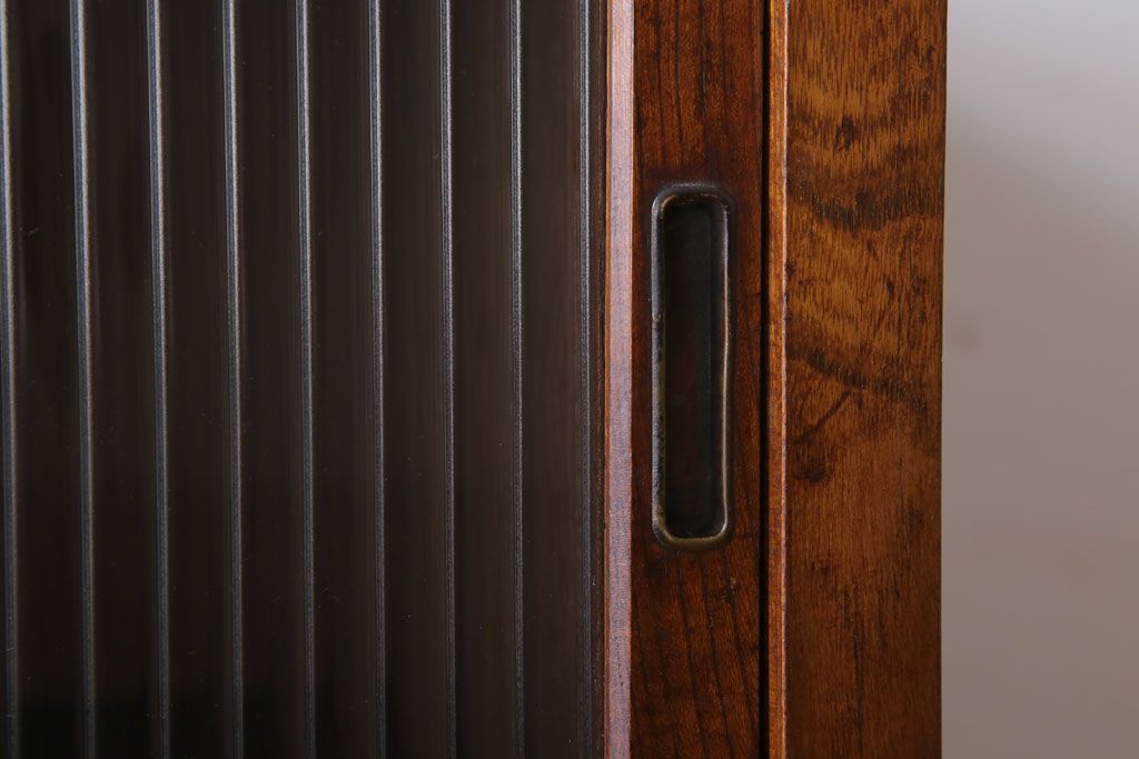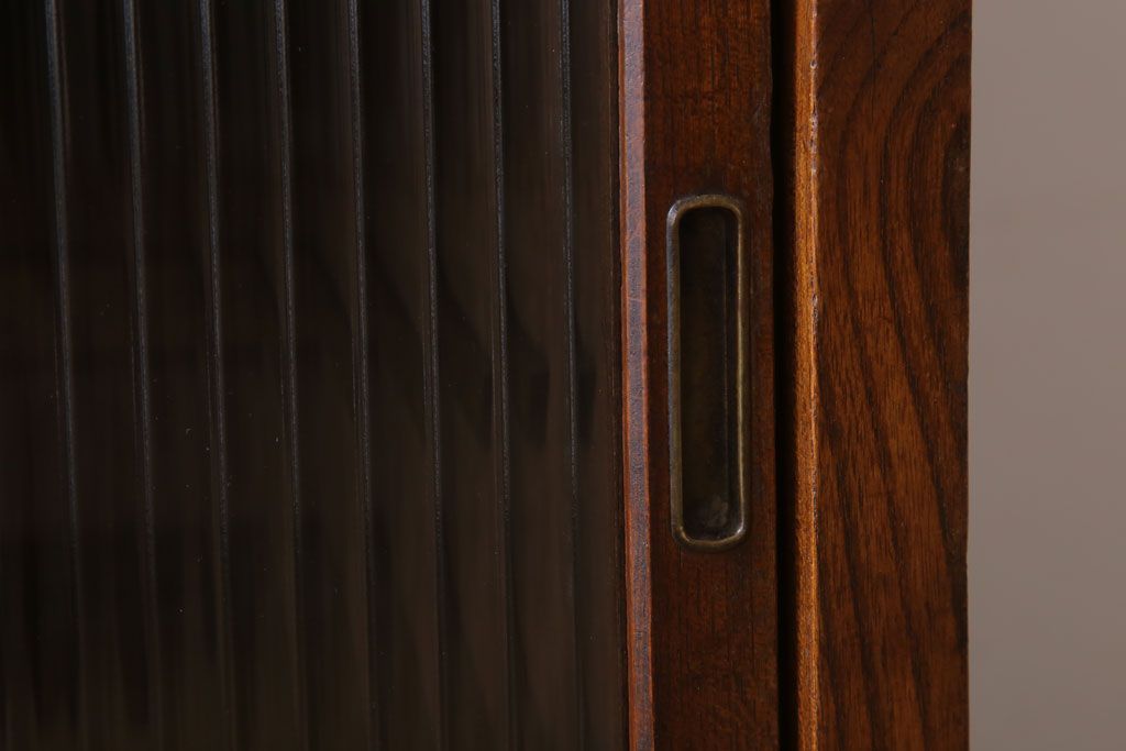 アンティーク家具 モールガラス 脚付き!古い木製のシンプルな収納棚(キャビネット)