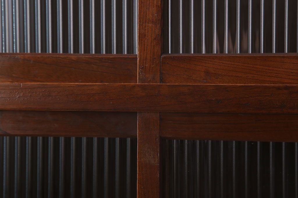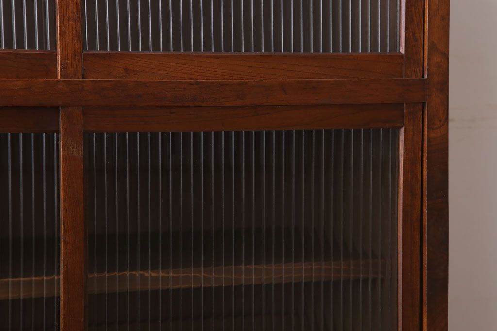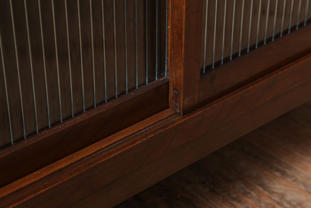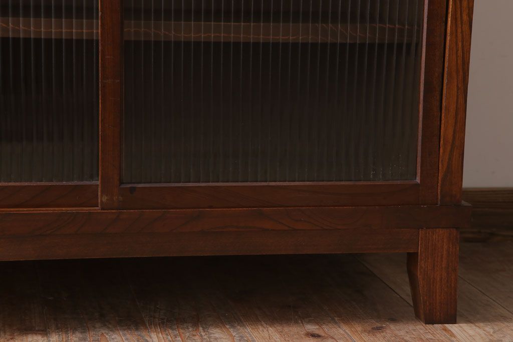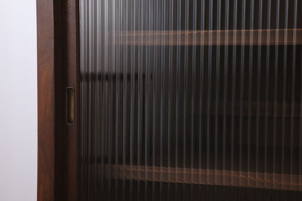 アンティーク家具 モールガラス 脚付き!古い木製のシンプルな収納棚(キャビネット)
