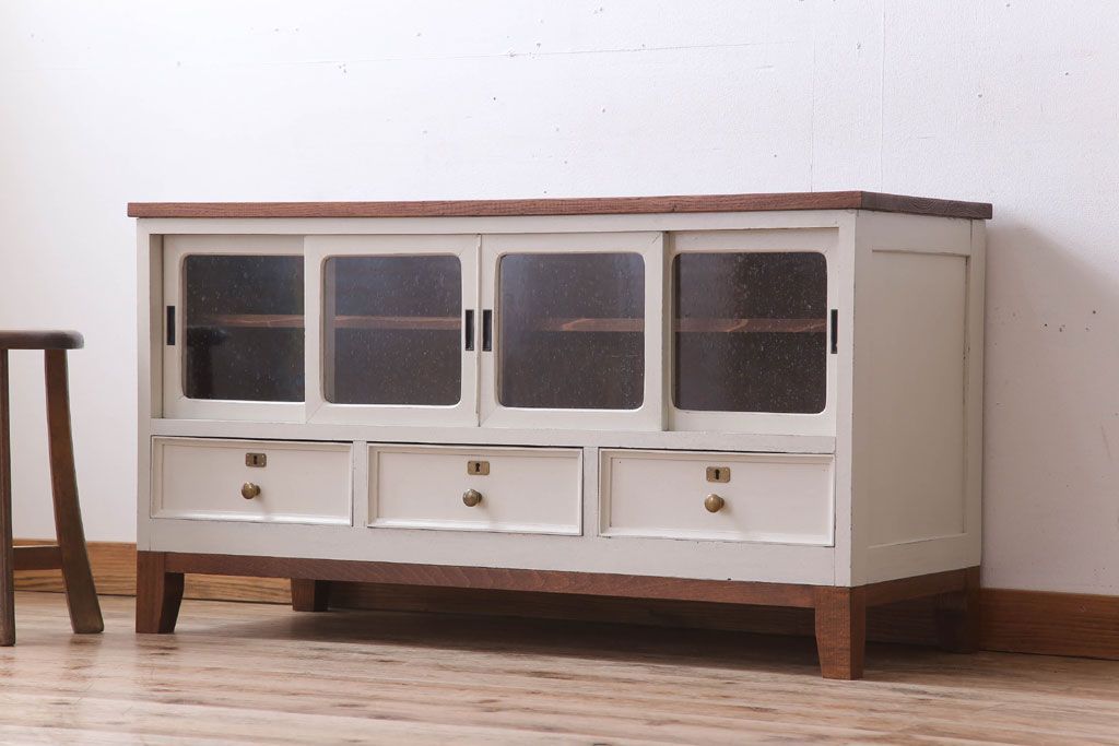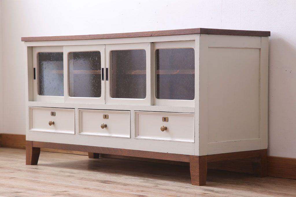 アンティーク家具 気泡ガラス入り!アンティークペイントローボード