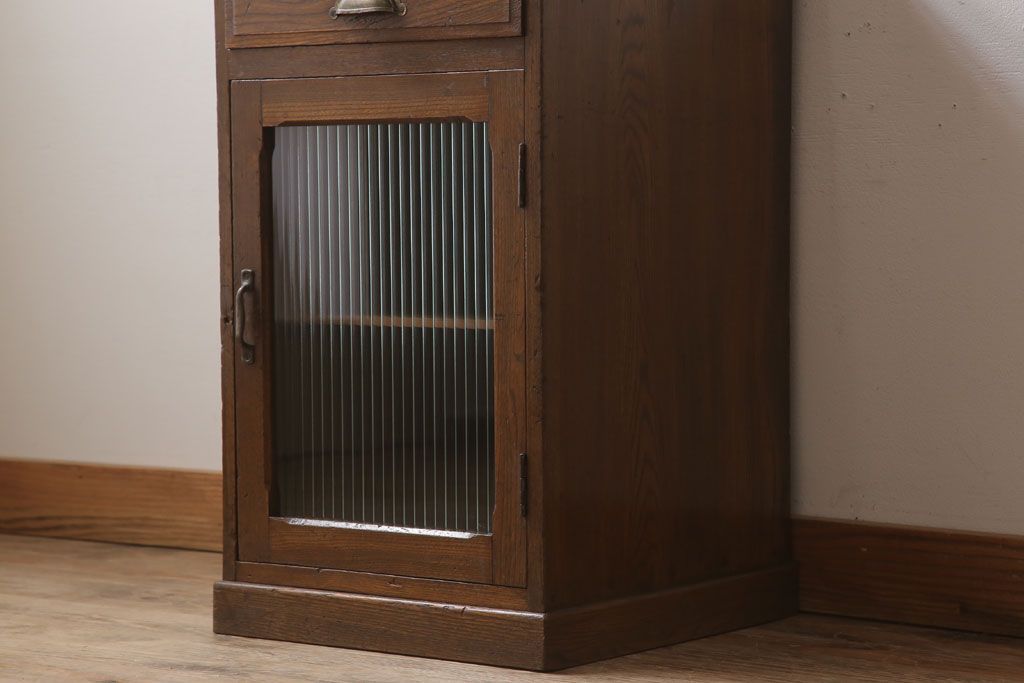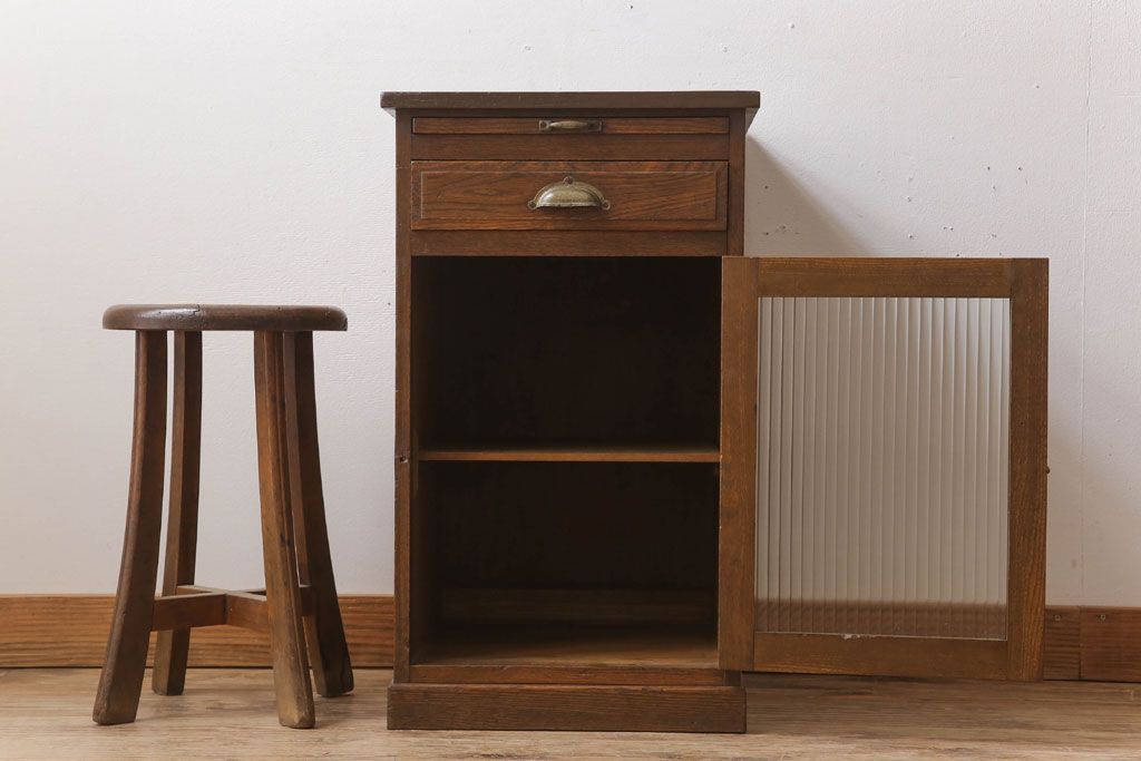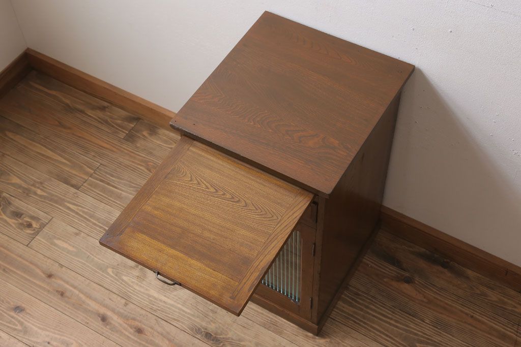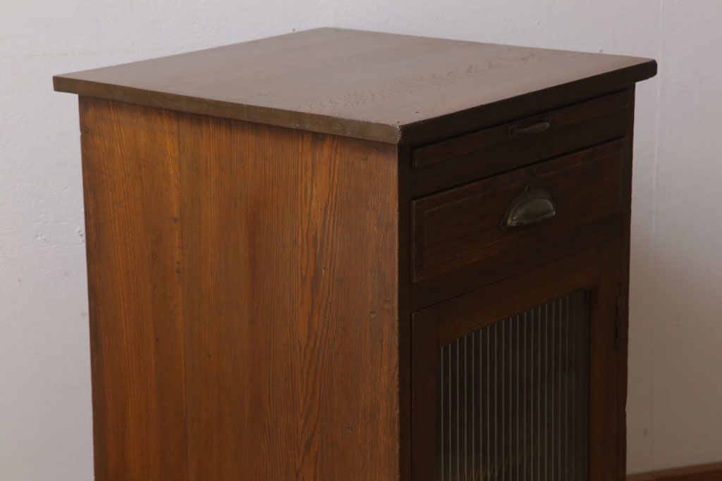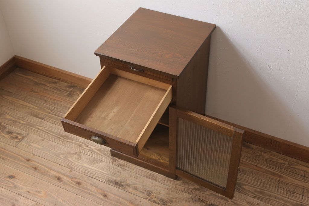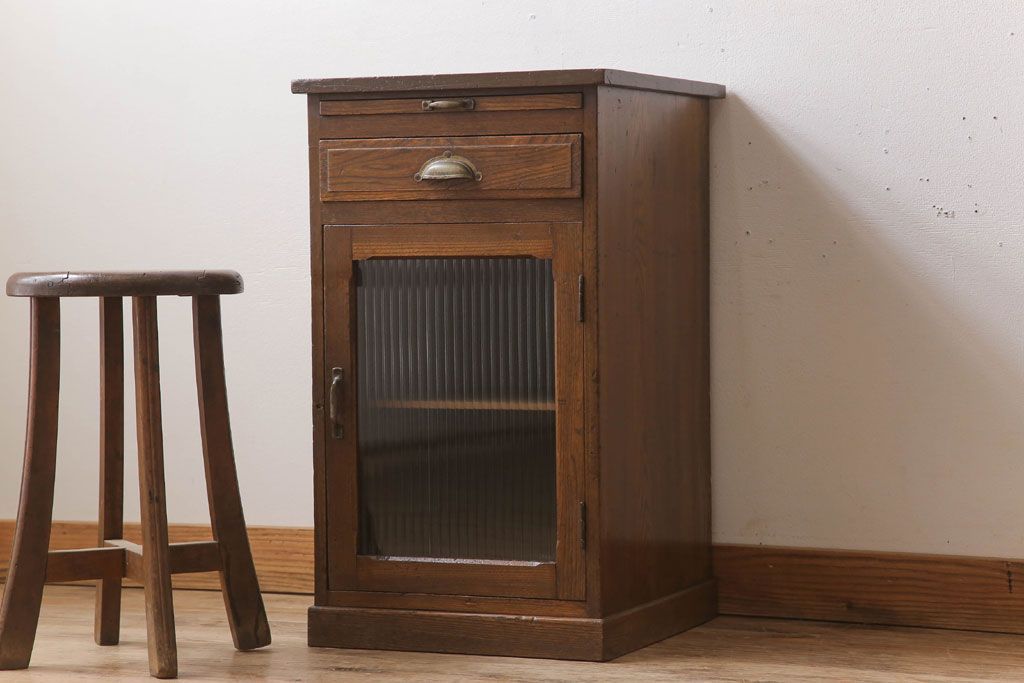 アンティーク家具 モールガラス入り!栓材製サイドテーブル(収納棚)