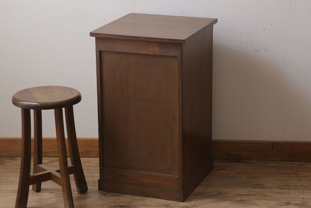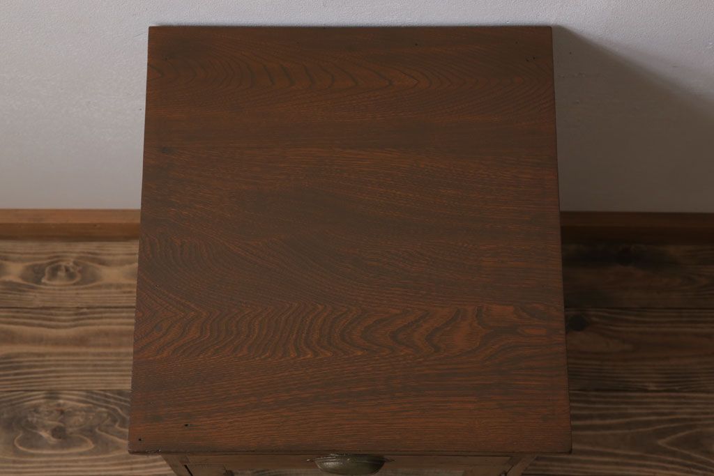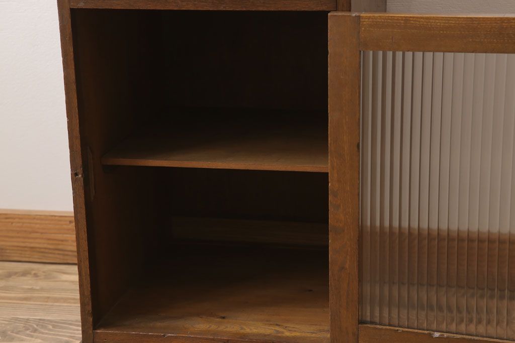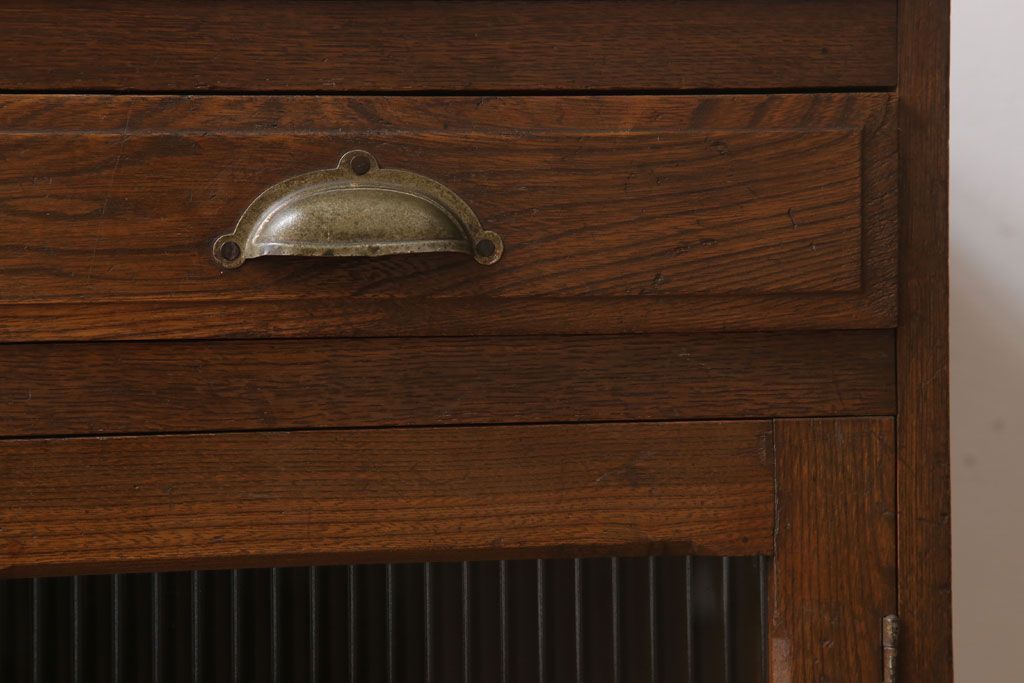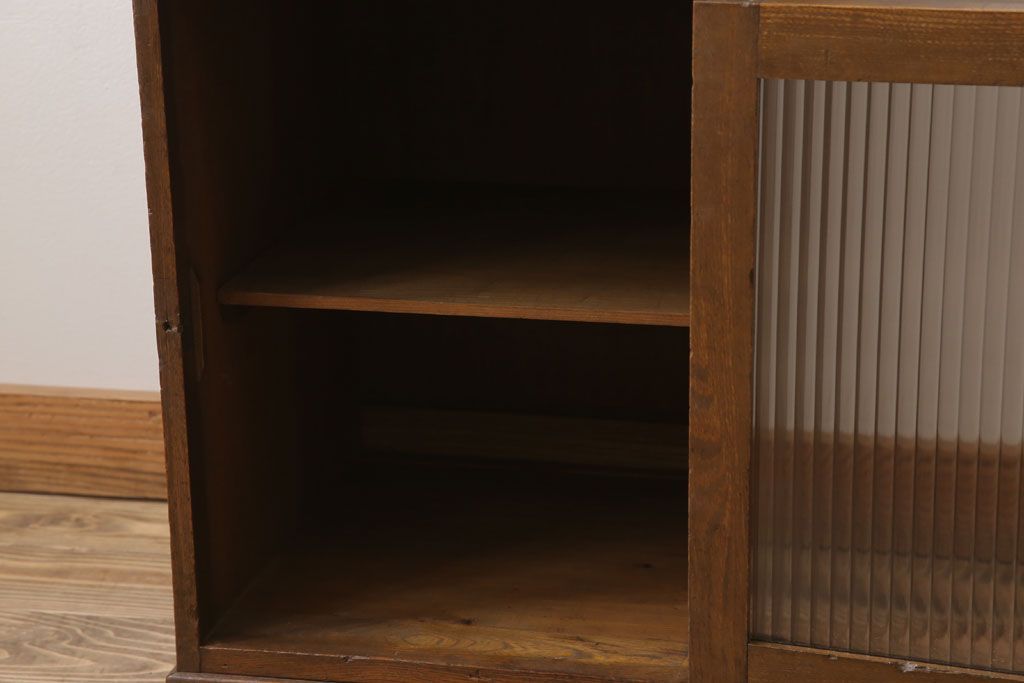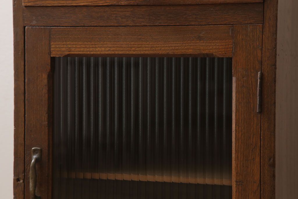 アンティーク家具 モールガラス入り!栓材製サイドテーブル(収納棚)