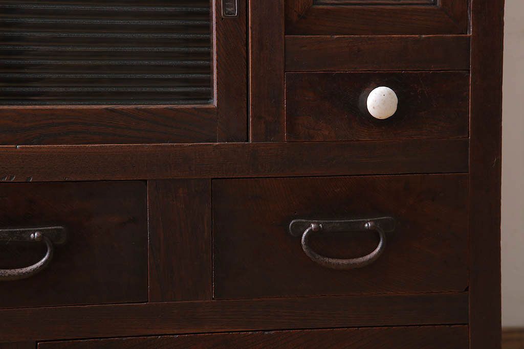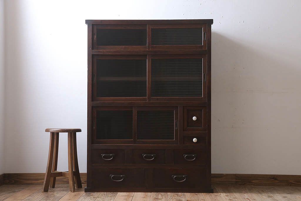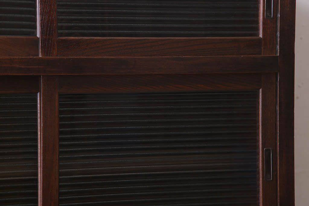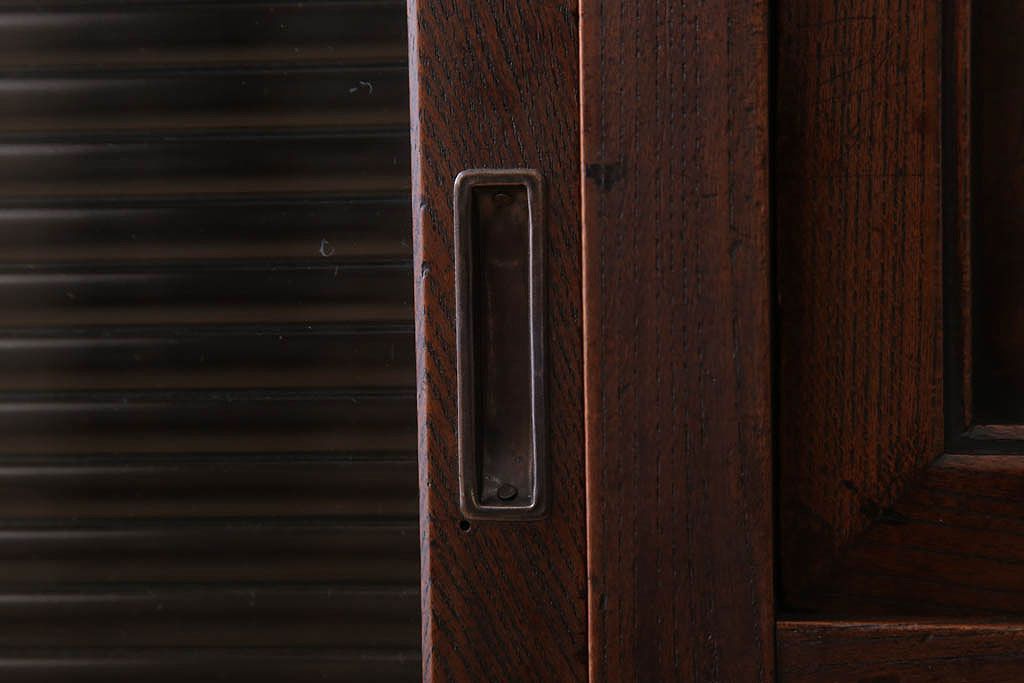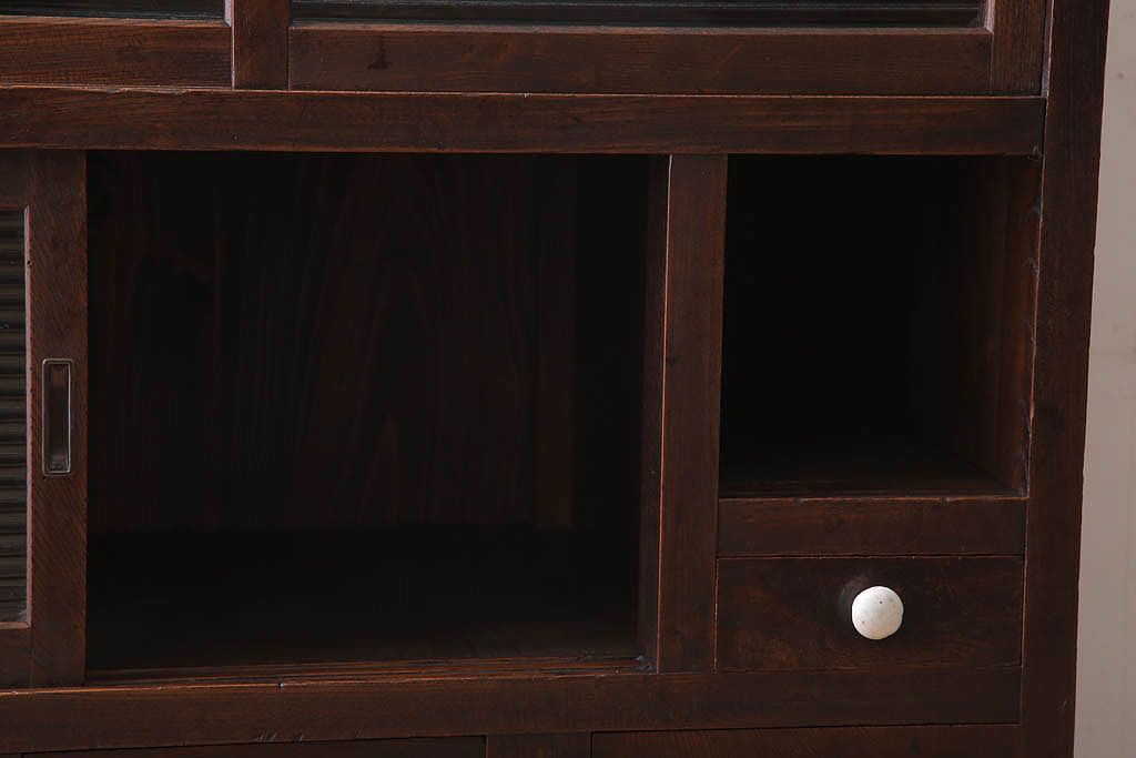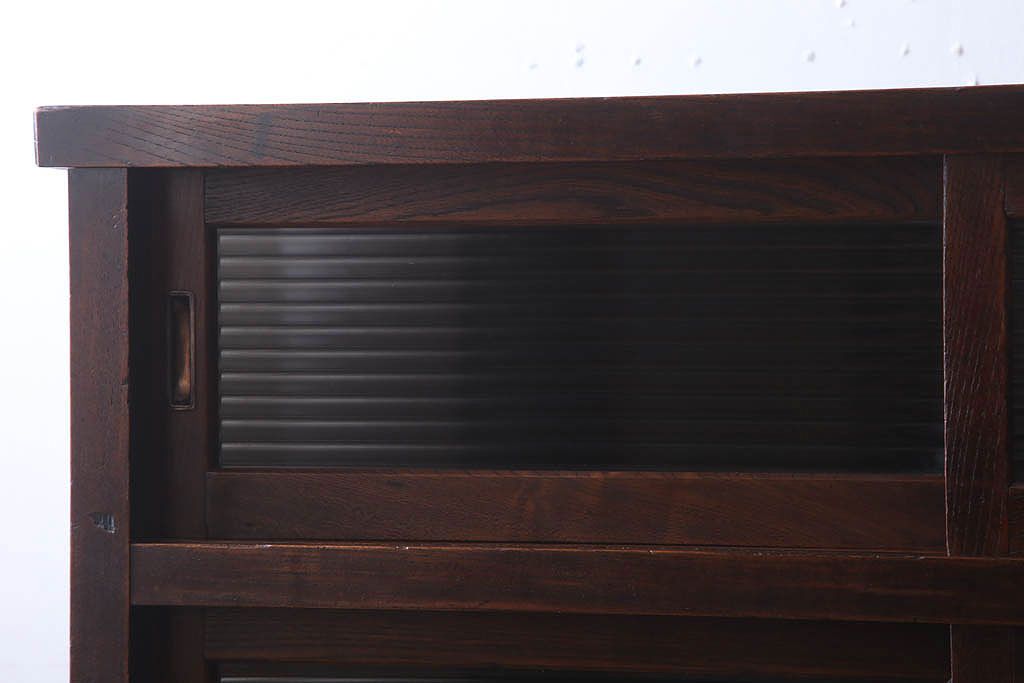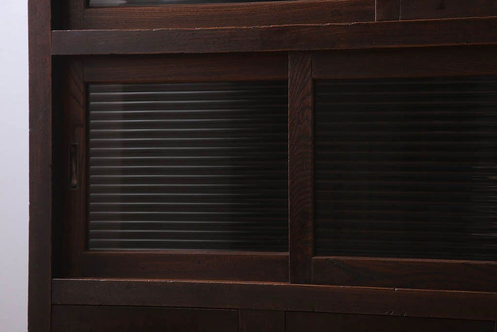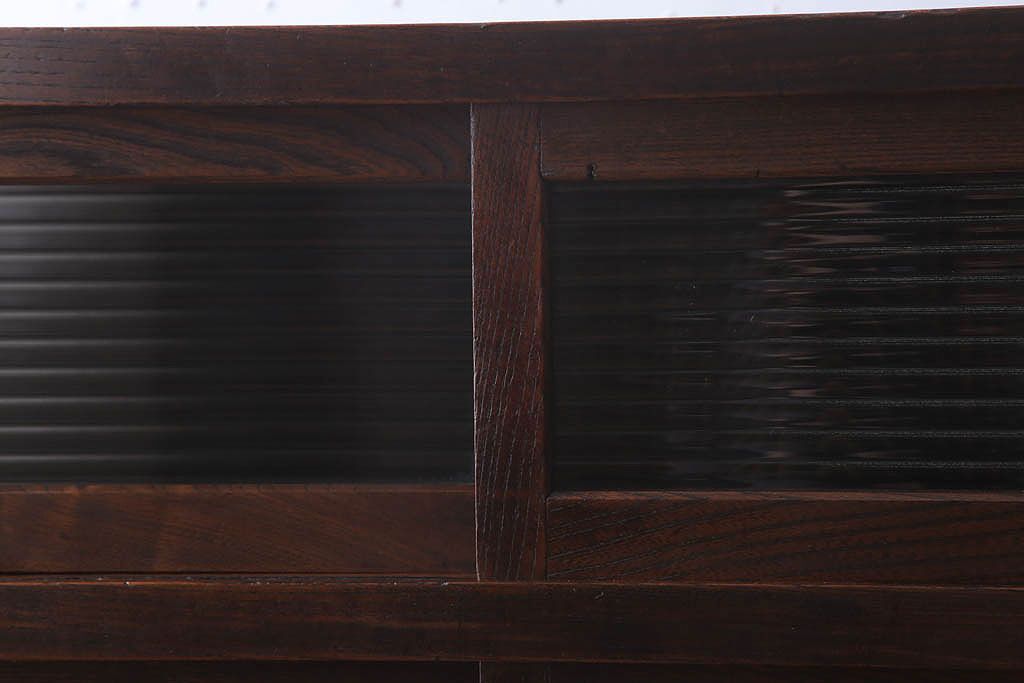 アンティーク家具 和製アンティーク 前面欅材のモールガラス引き戸収納棚