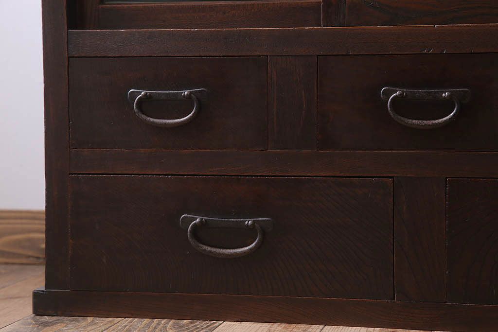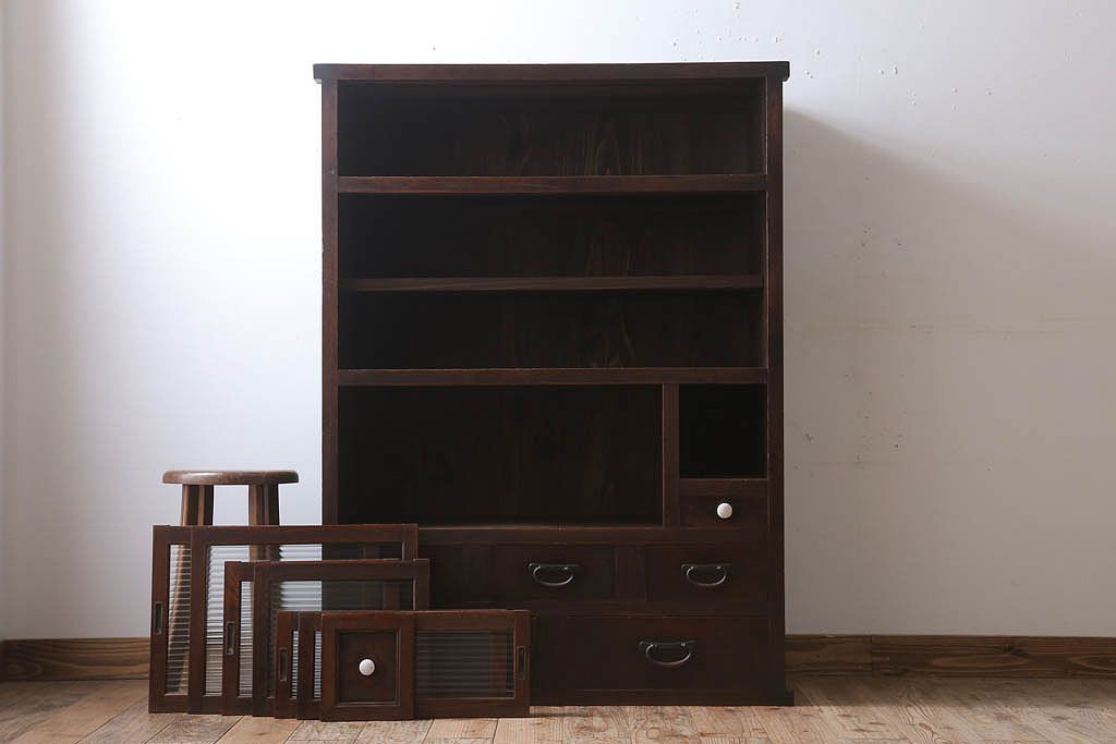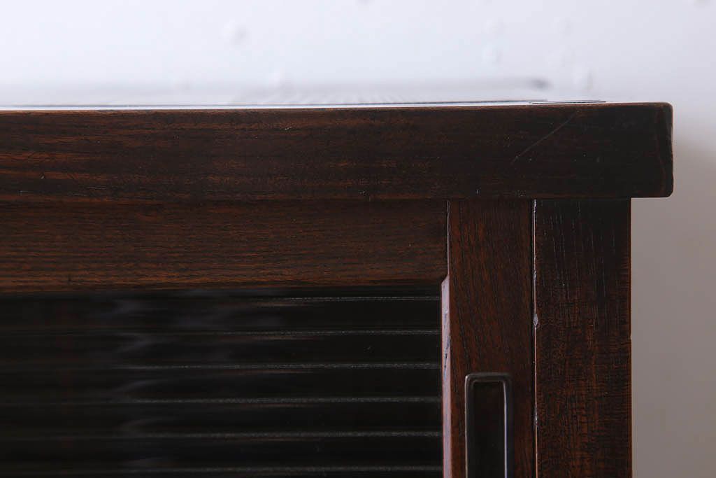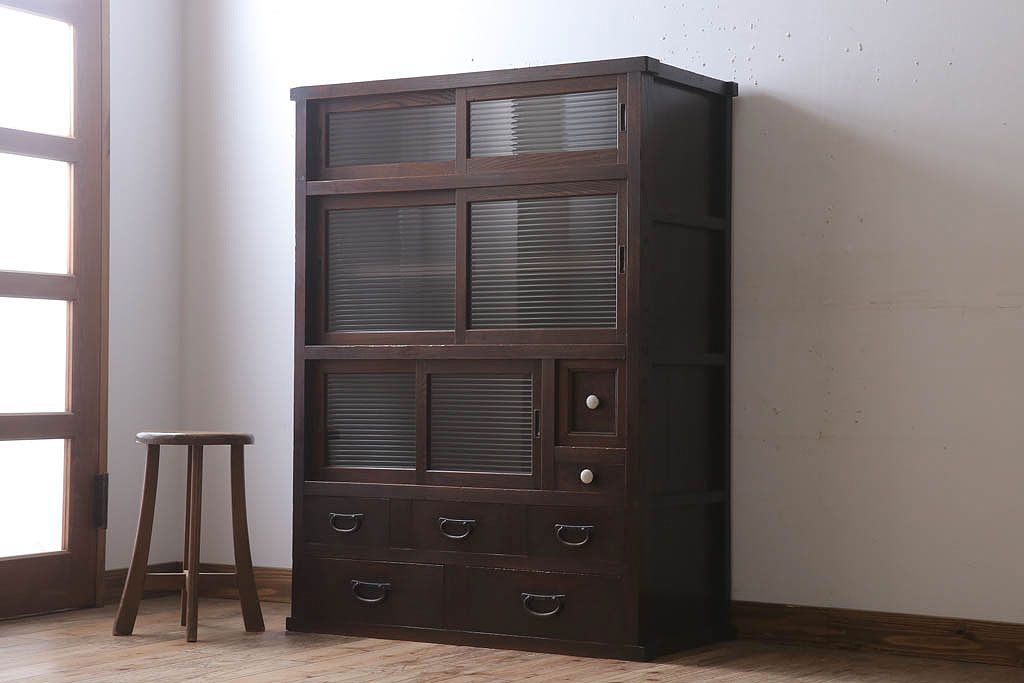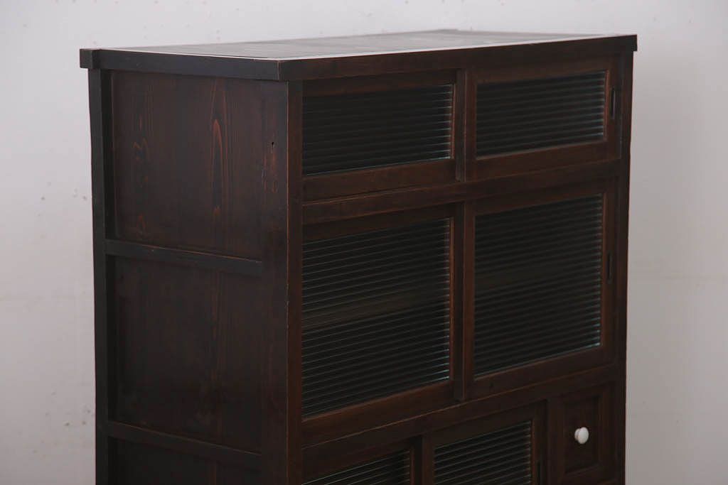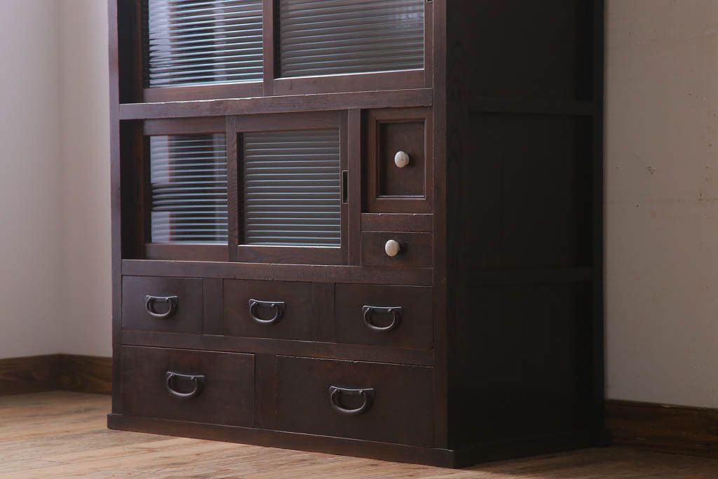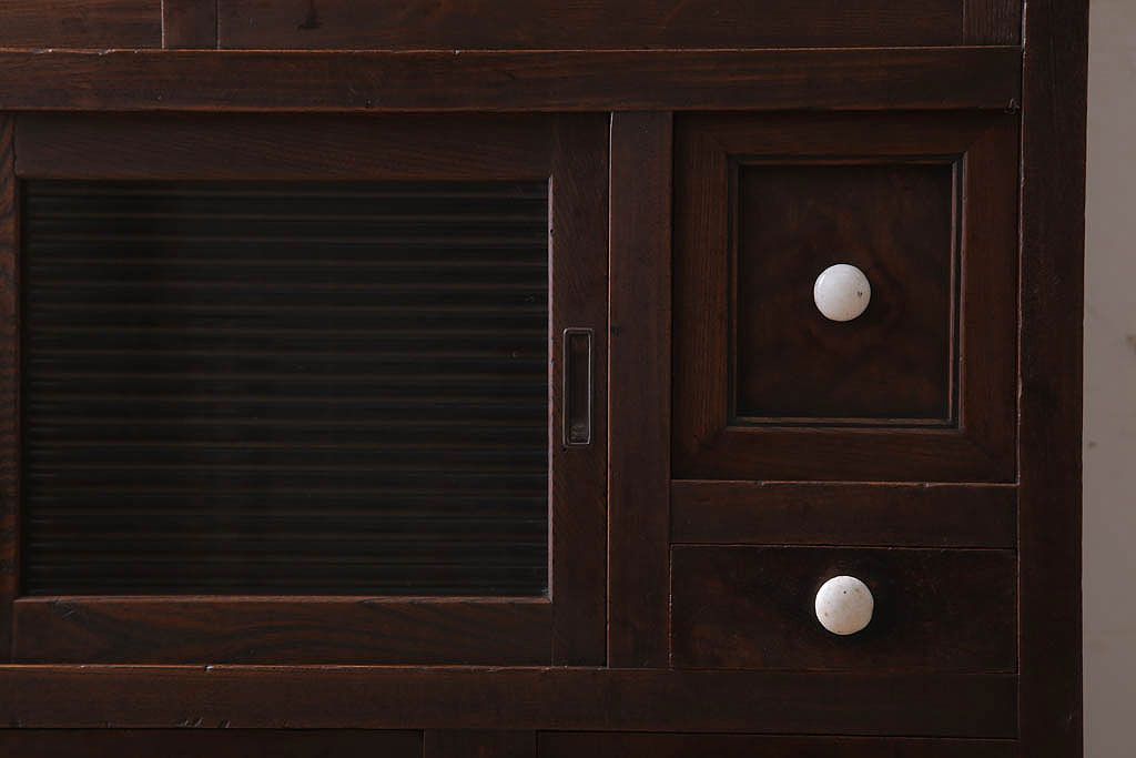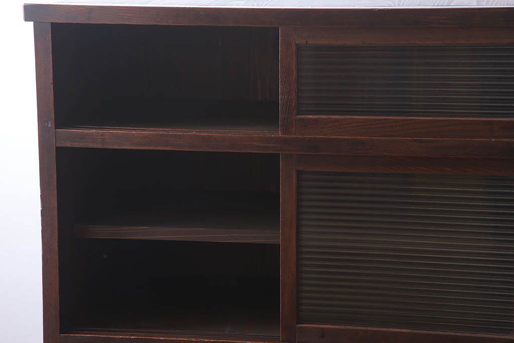 アンティーク家具 和製アンティーク 前面欅材のモールガラス引き戸収納棚
