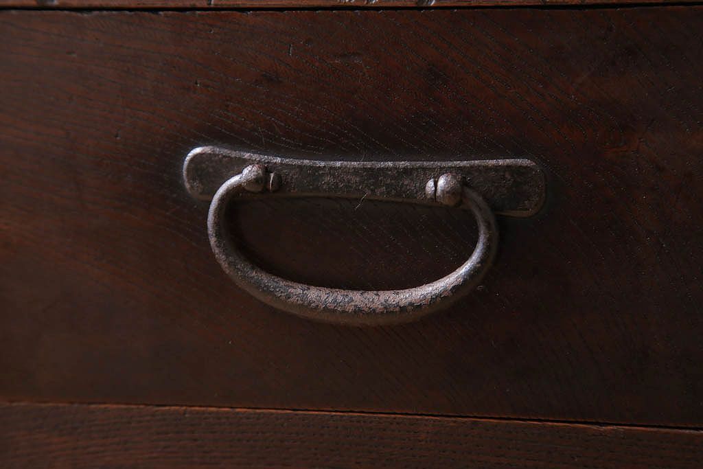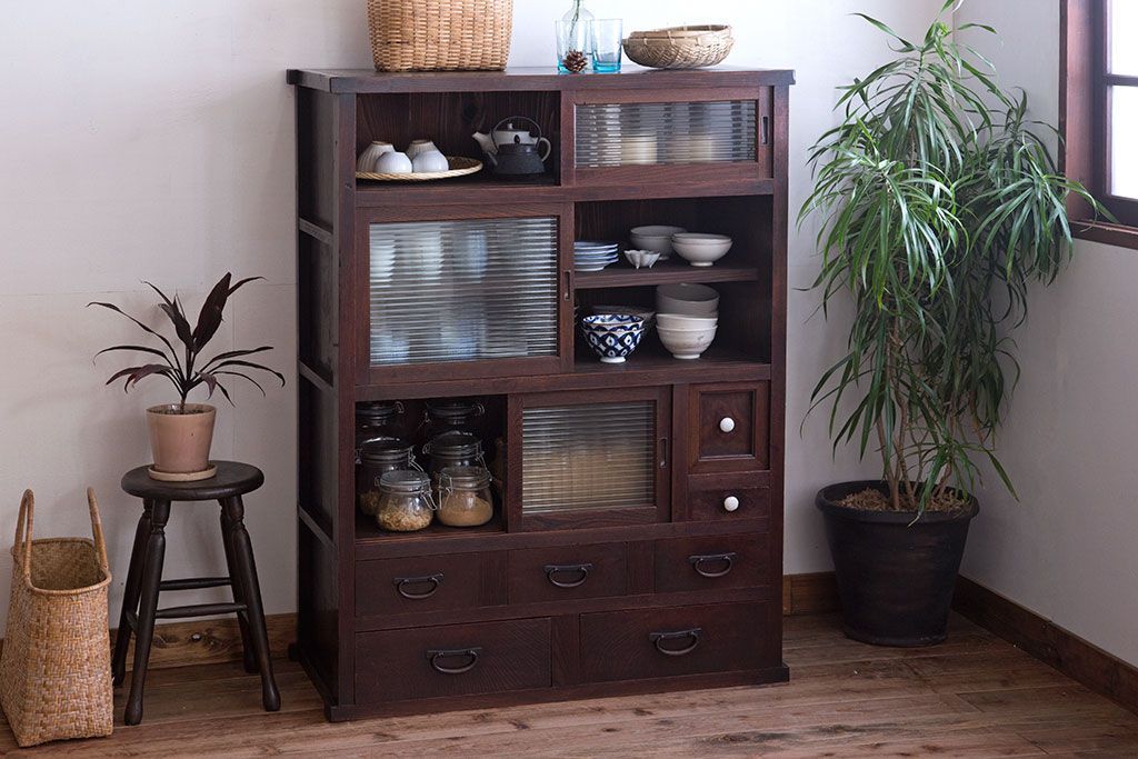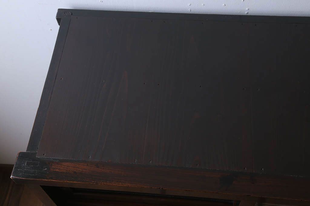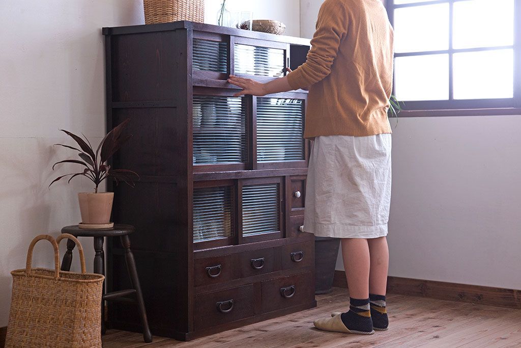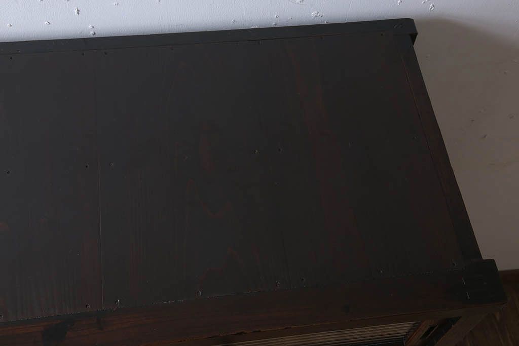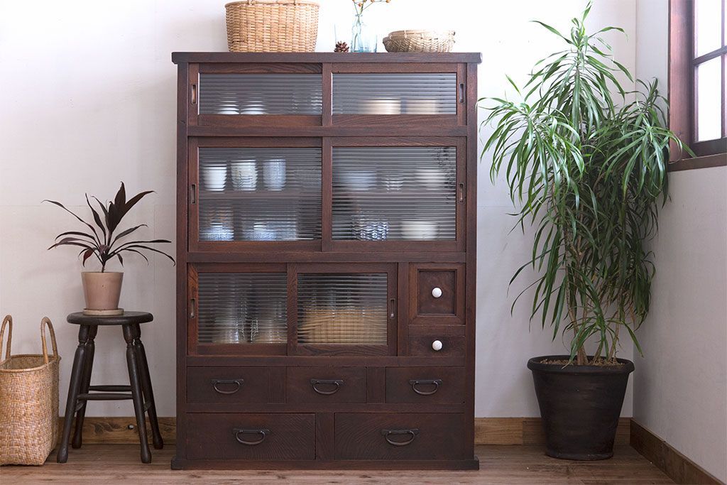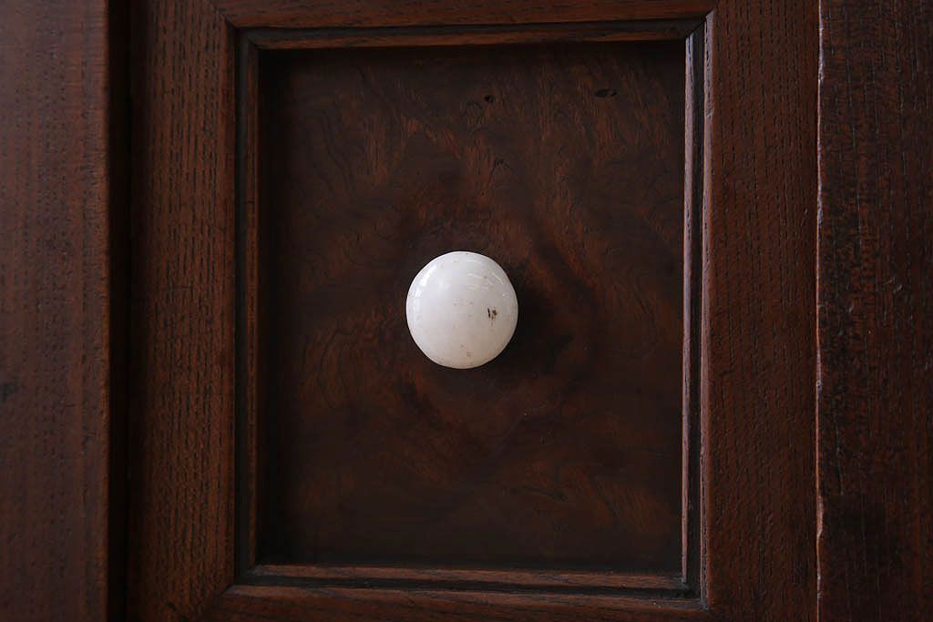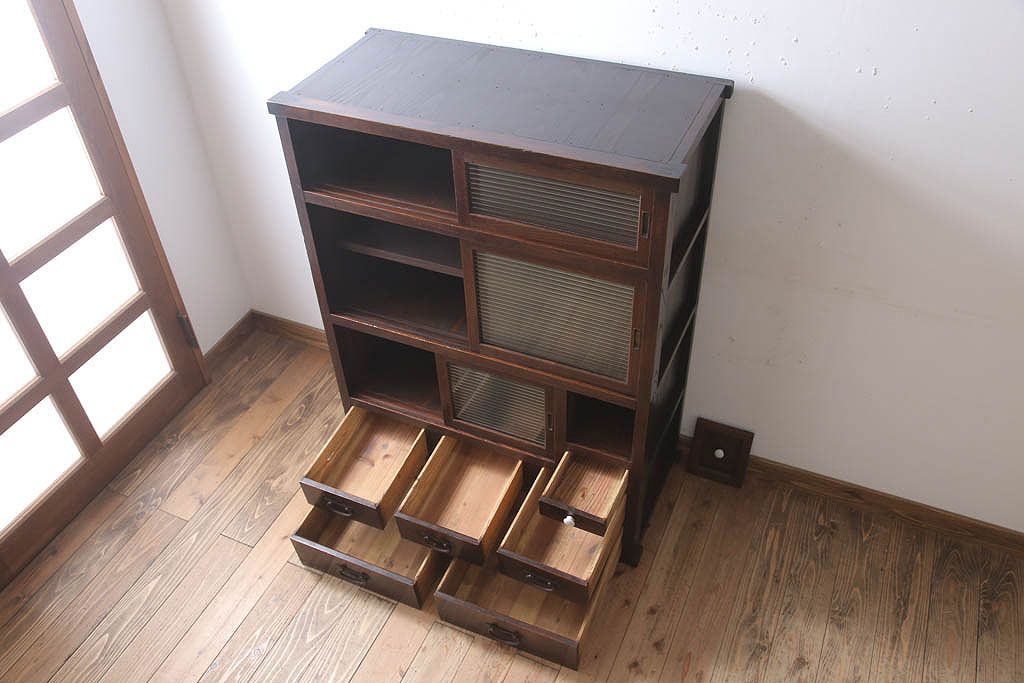 アンティーク家具 和製アンティーク 前面欅材のモールガラス引き戸収納棚