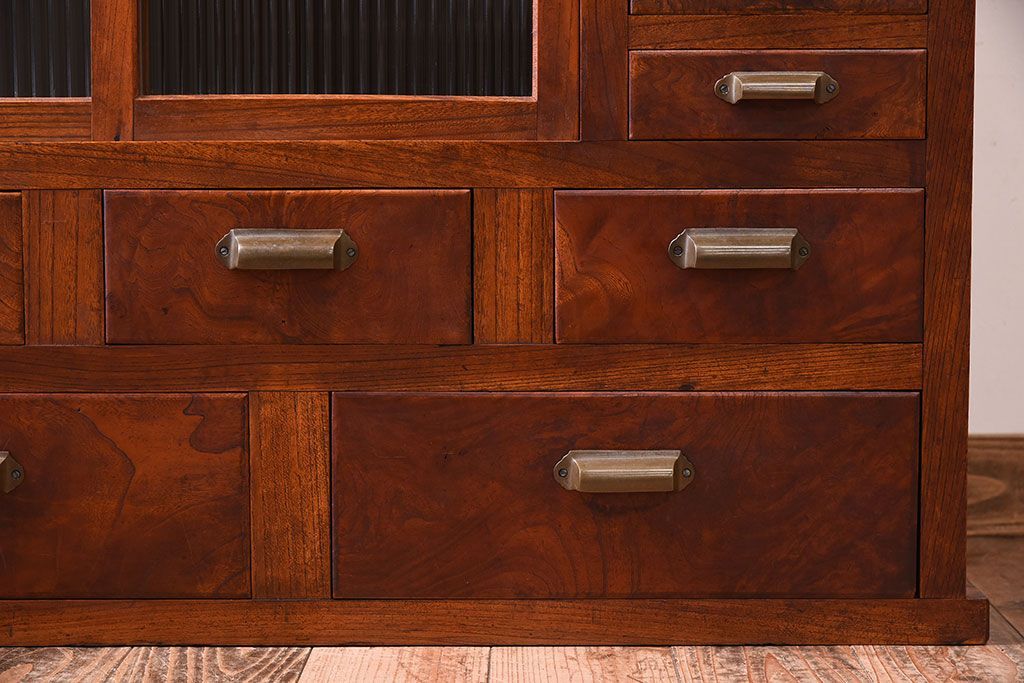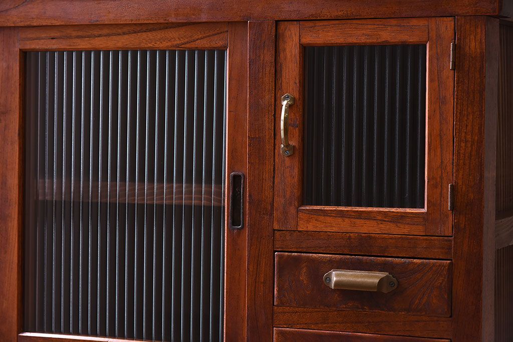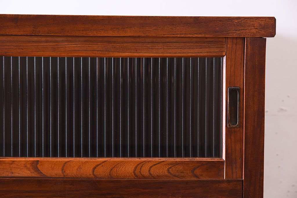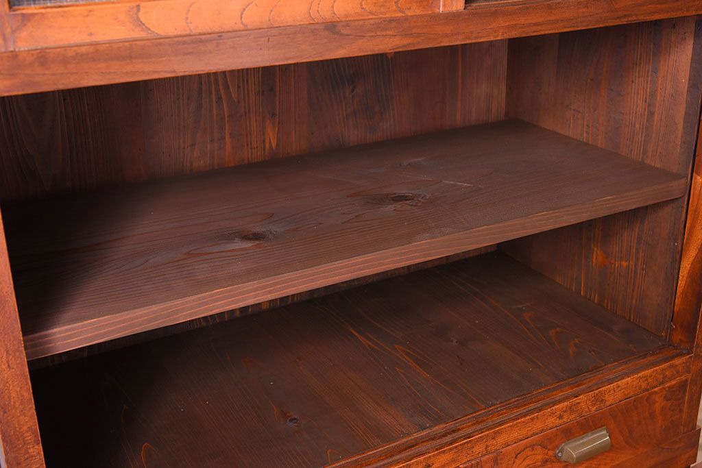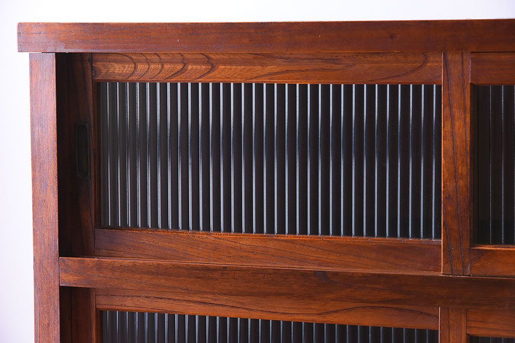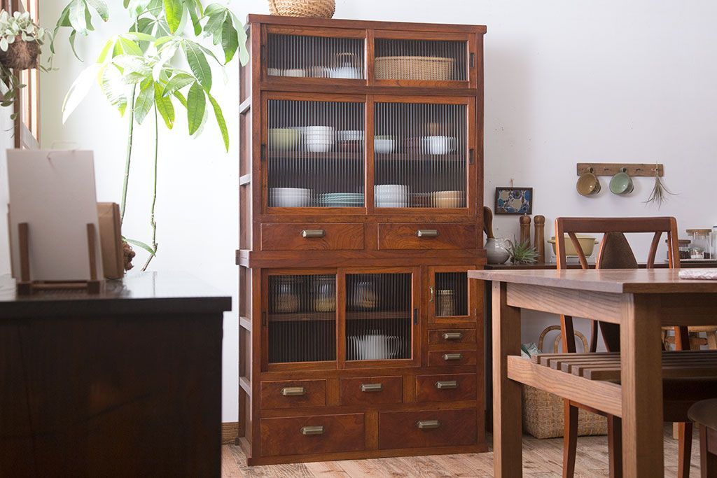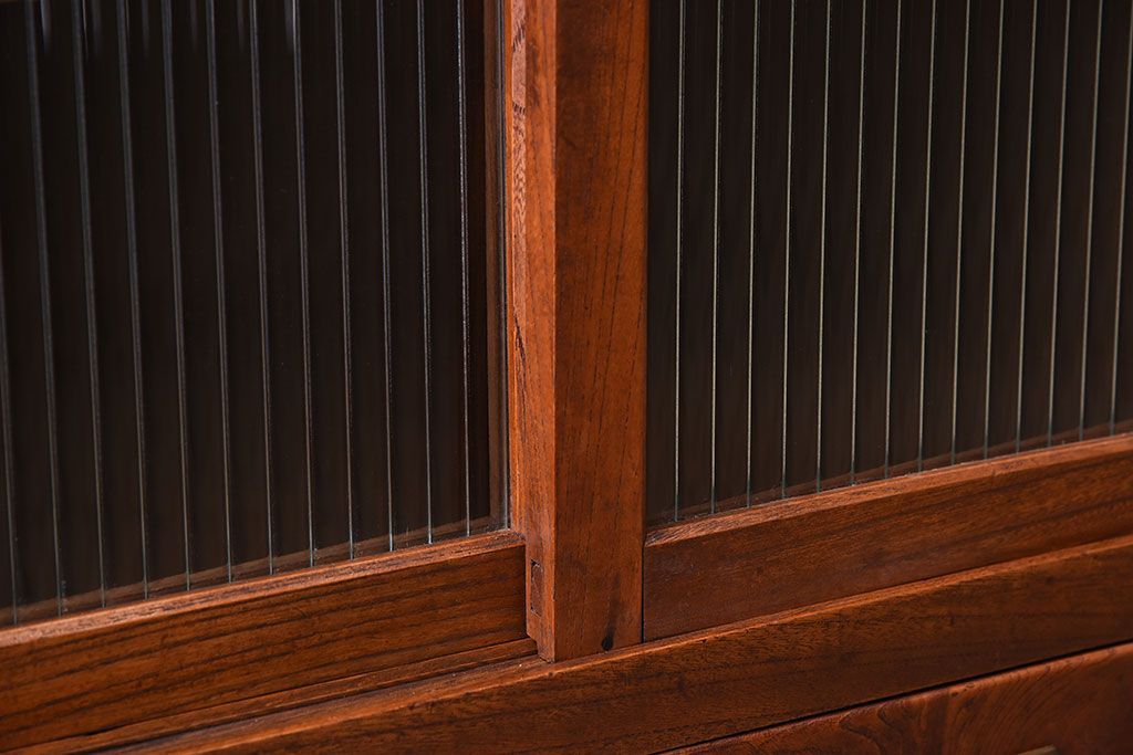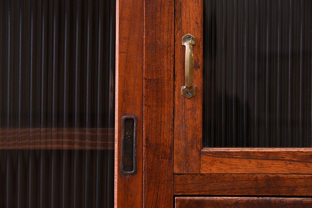 アンティーク家具 和製アンティーク 前面欅材!モールガラス引き戸の重ね食器棚(収納棚)