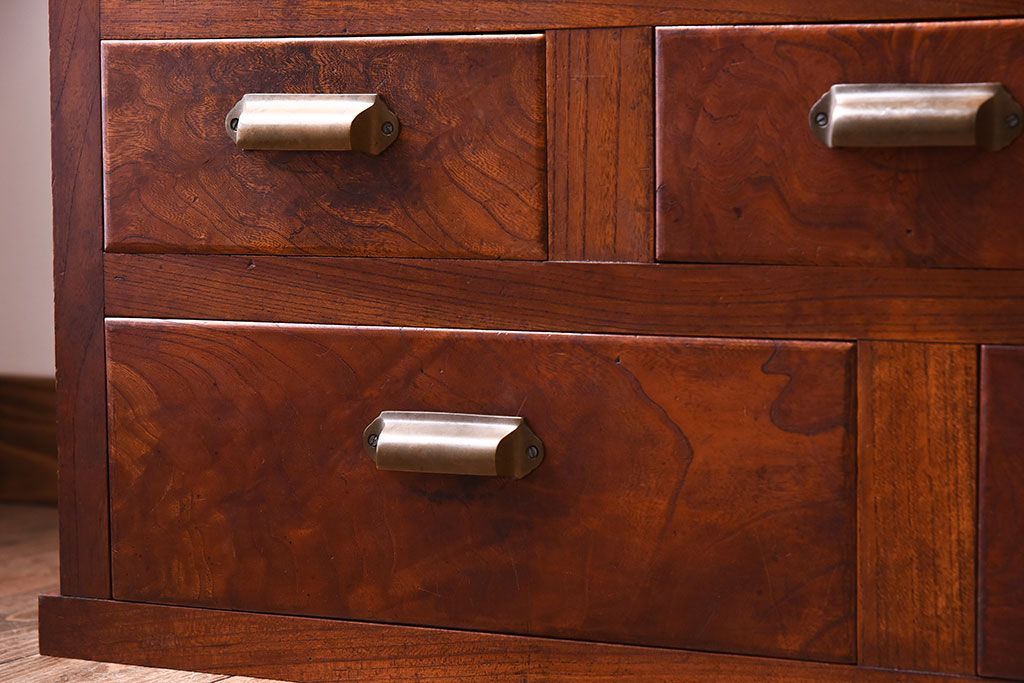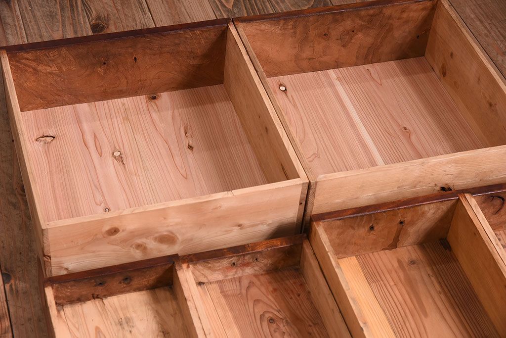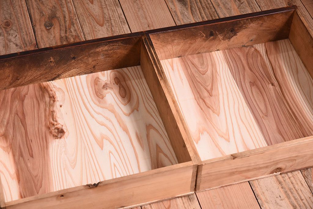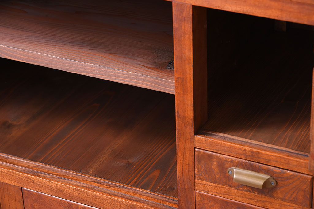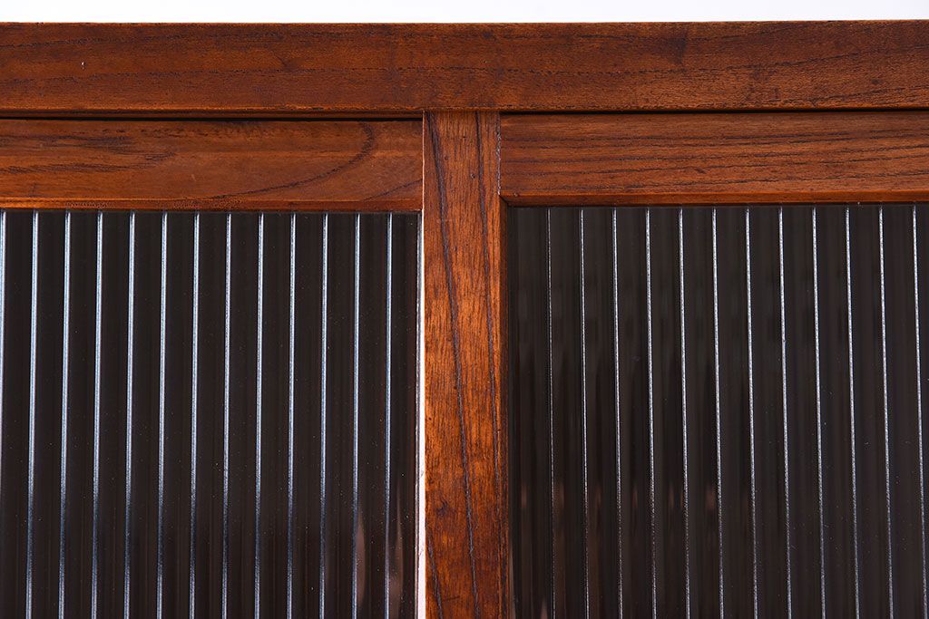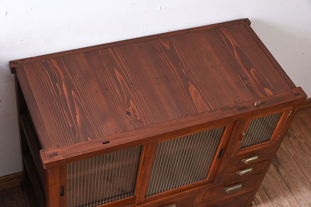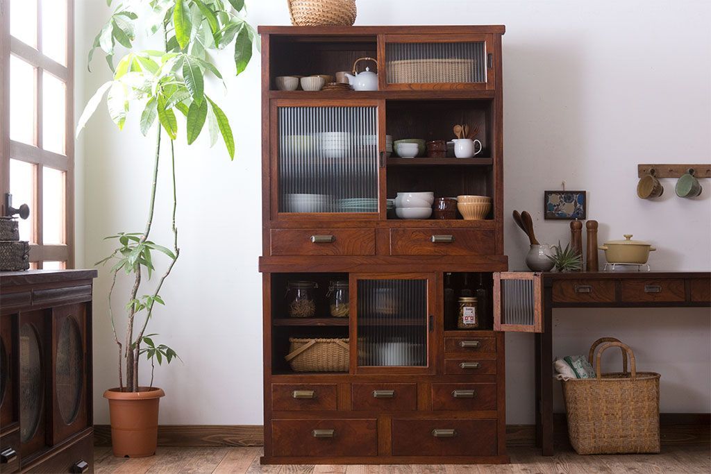 アンティーク家具 和製アンティーク 前面欅材!モールガラス引き戸の重ね食器棚(収納棚)