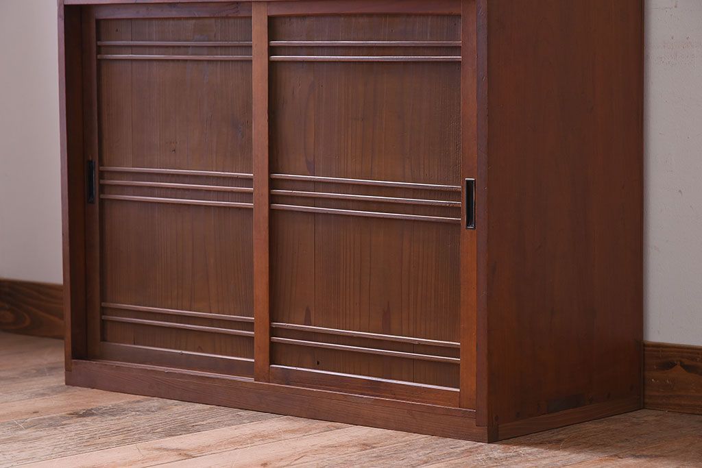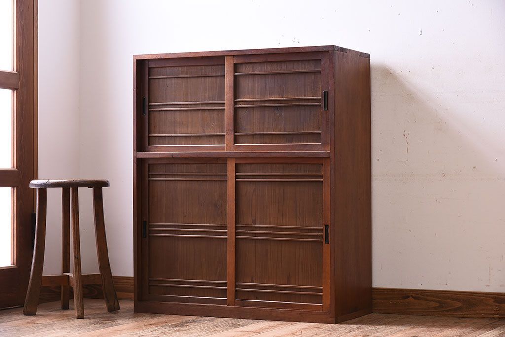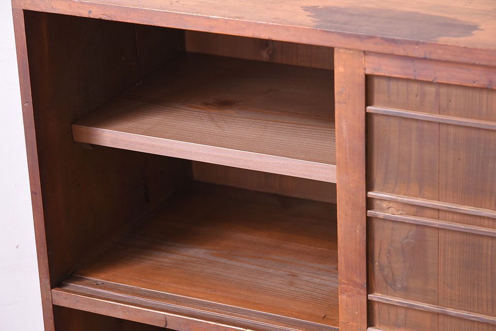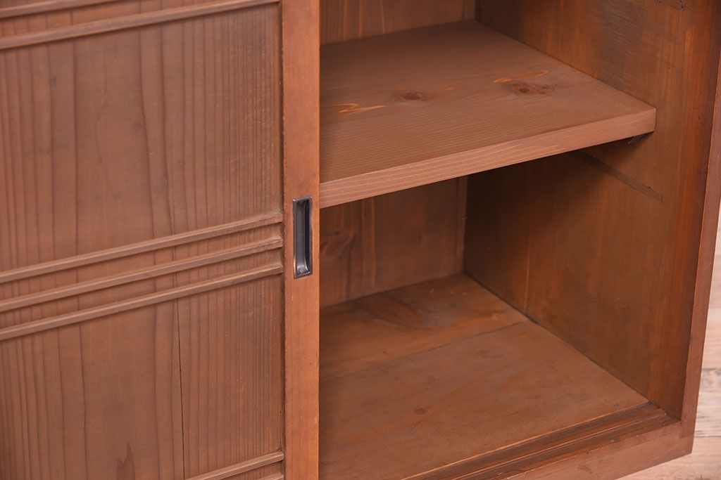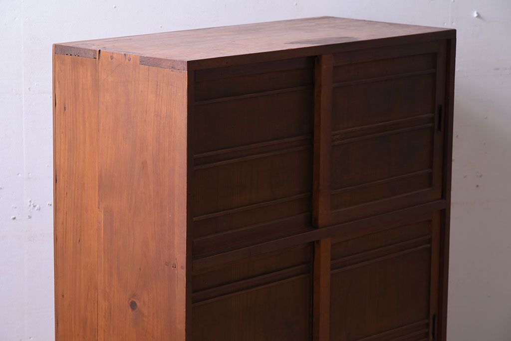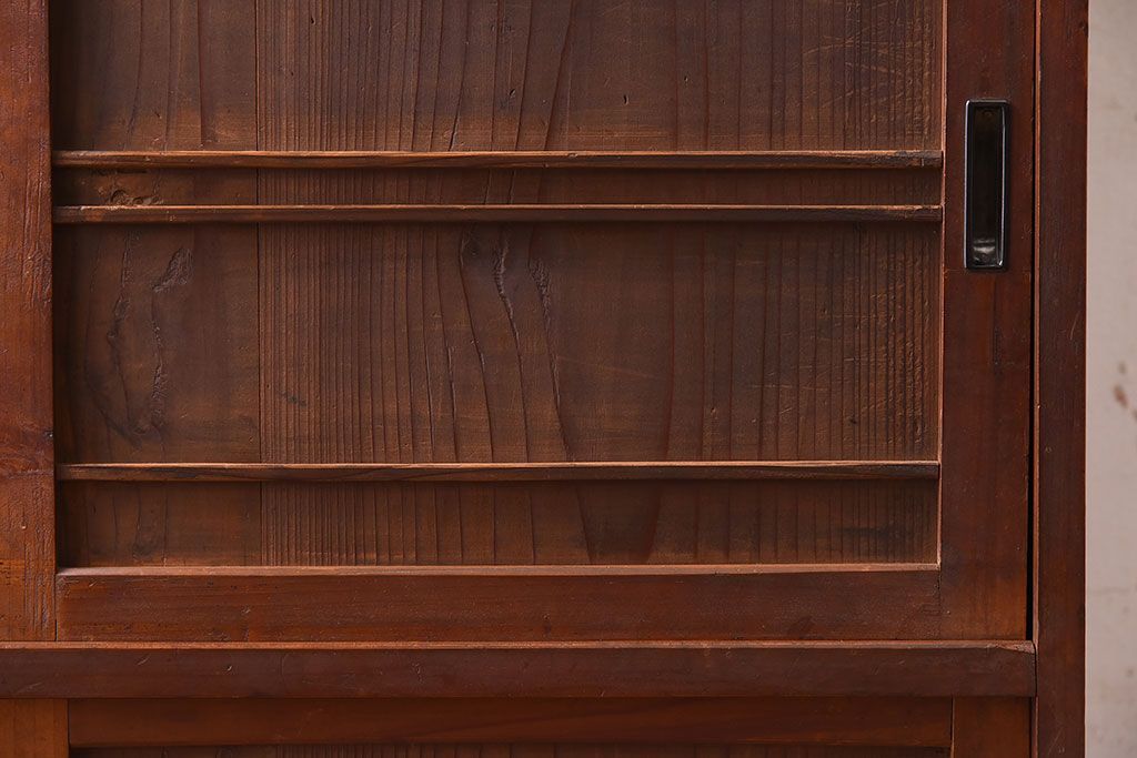 アンティーク家具 古い木製の小ぶりな引き戸収納棚