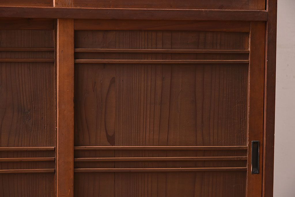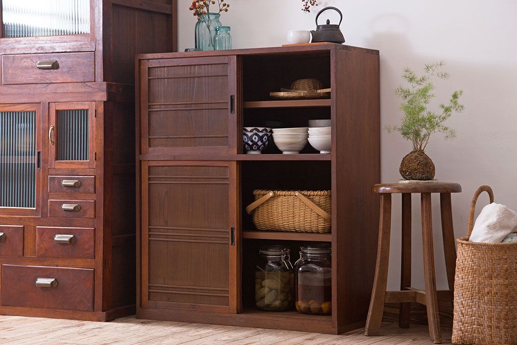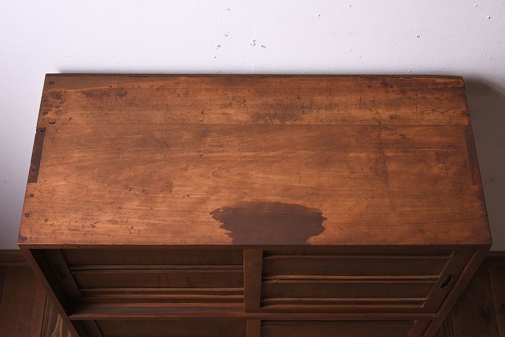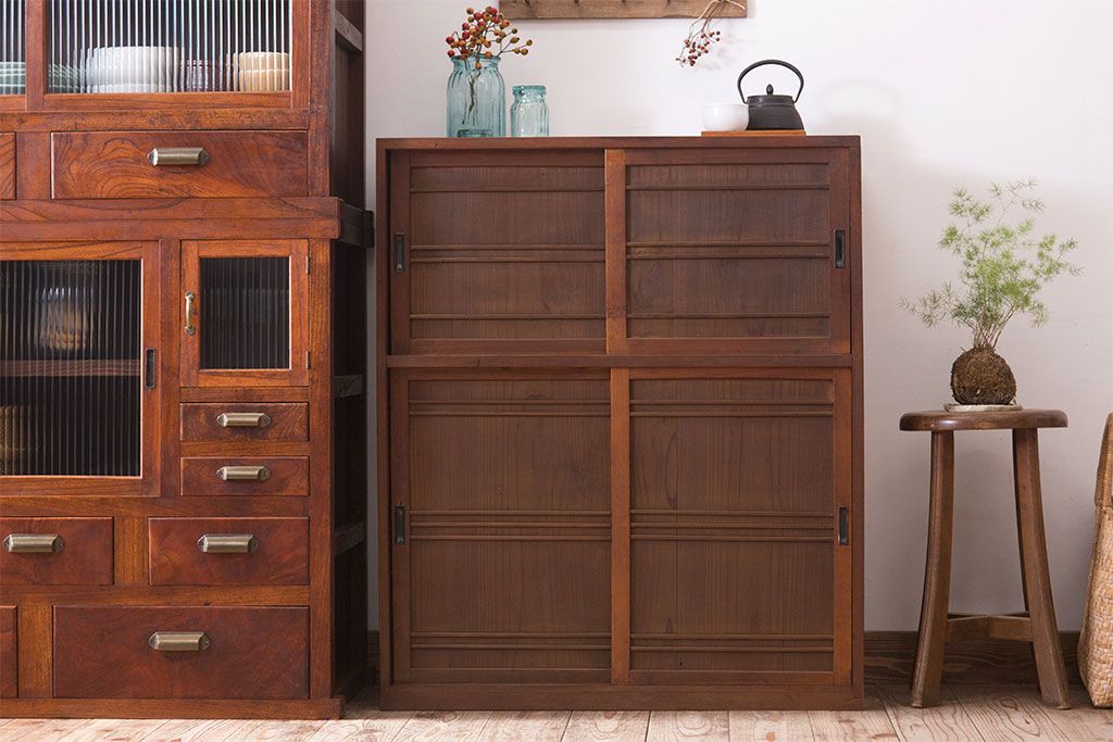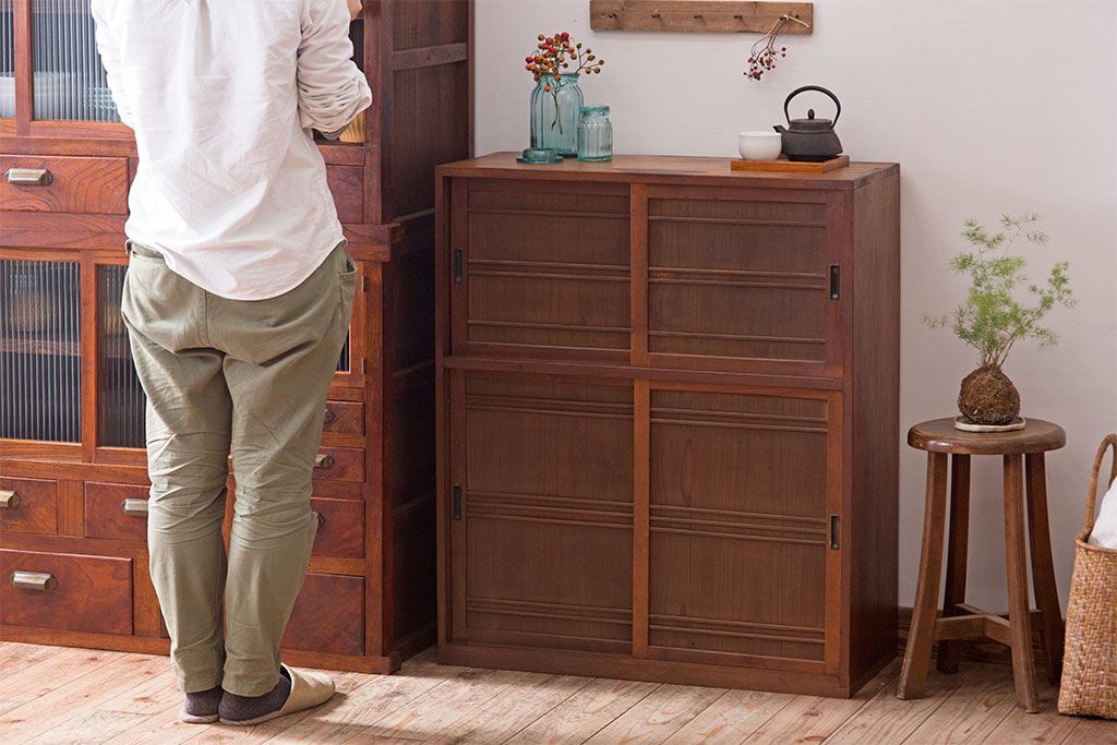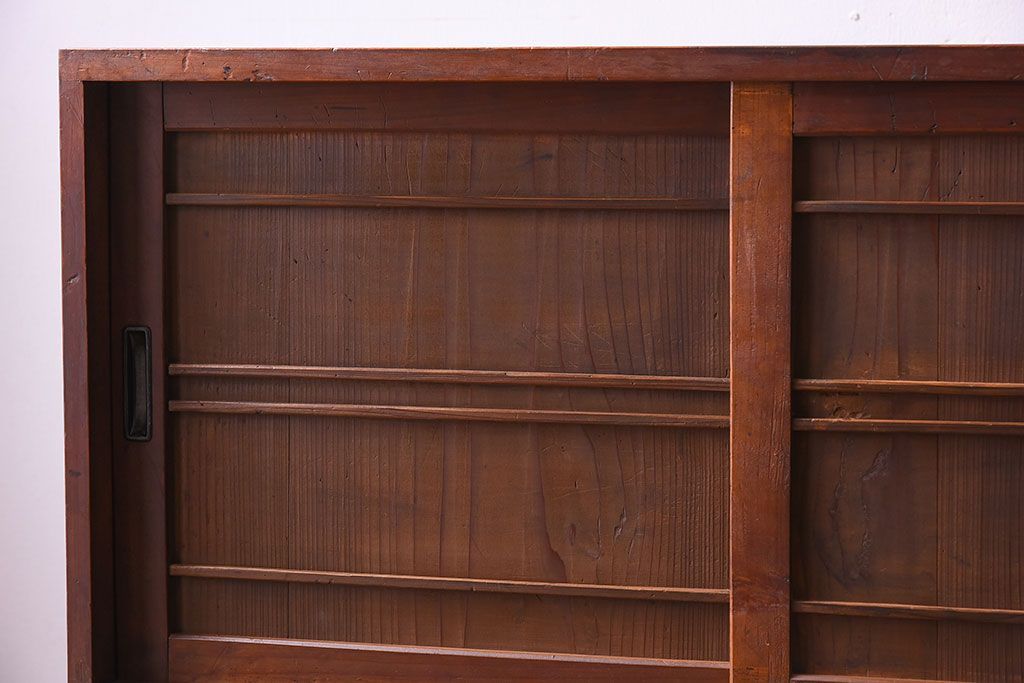 アンティーク家具 古い木製の小ぶりな引き戸収納棚