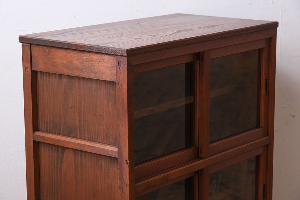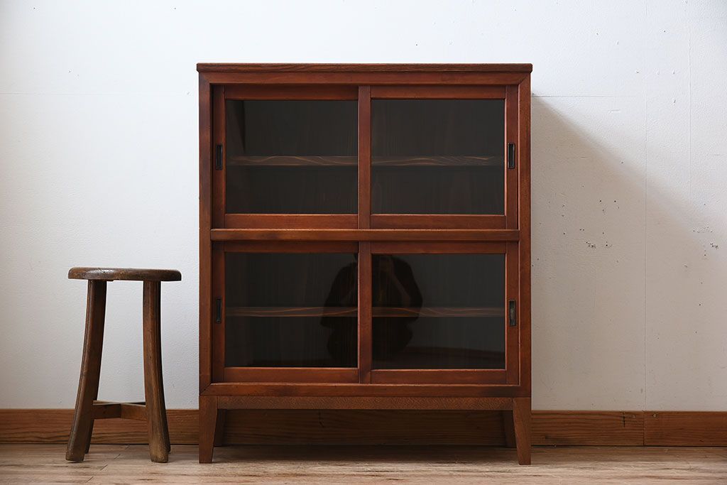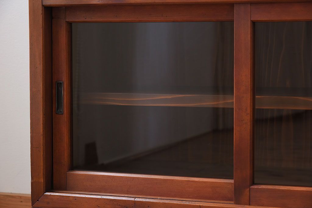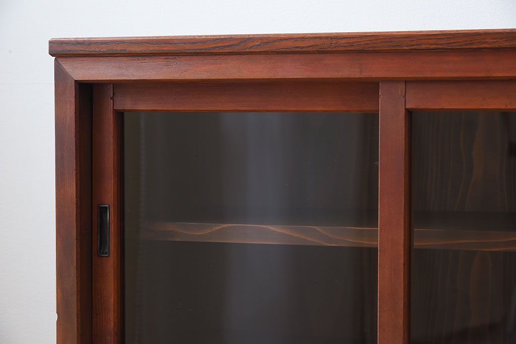 アンティーク家具 前面檜材 大正期 脚付き!引き戸のアンティーク収納棚