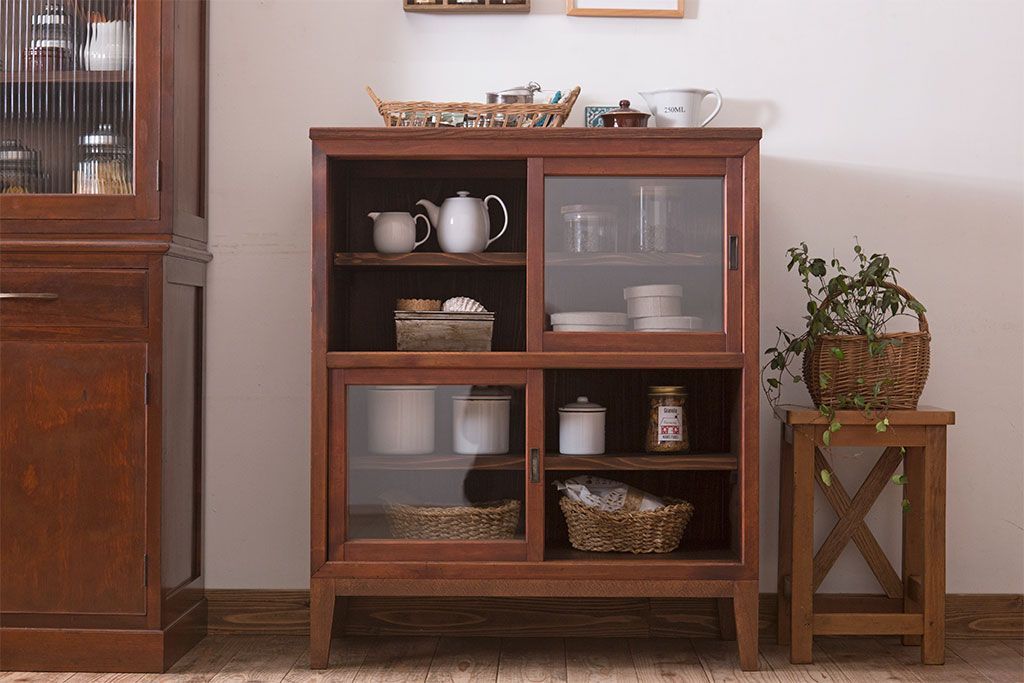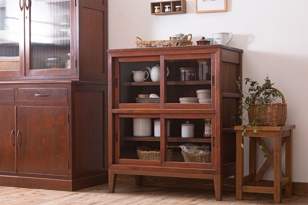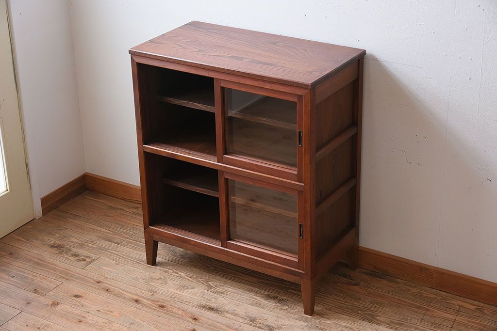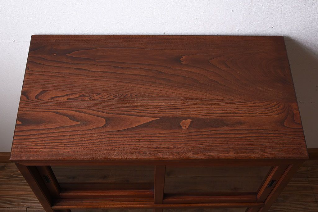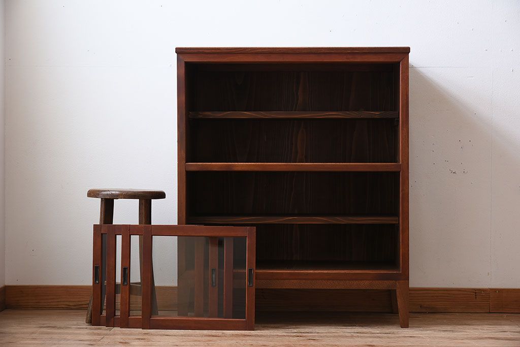 アンティーク家具 前面檜材 大正期 脚付き!引き戸のアンティーク収納棚