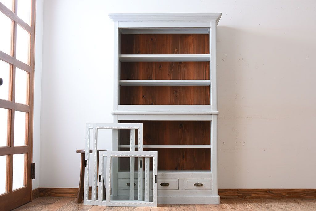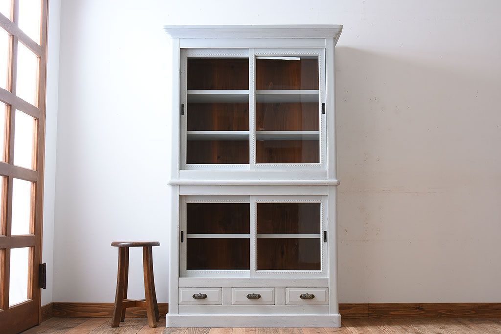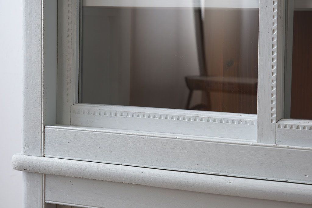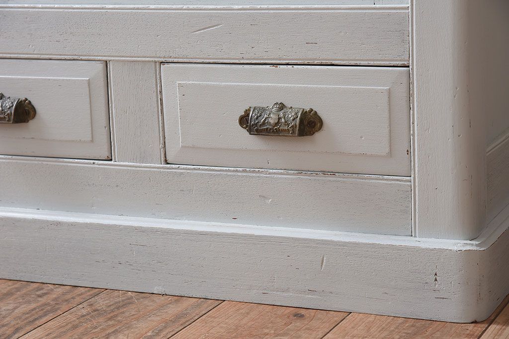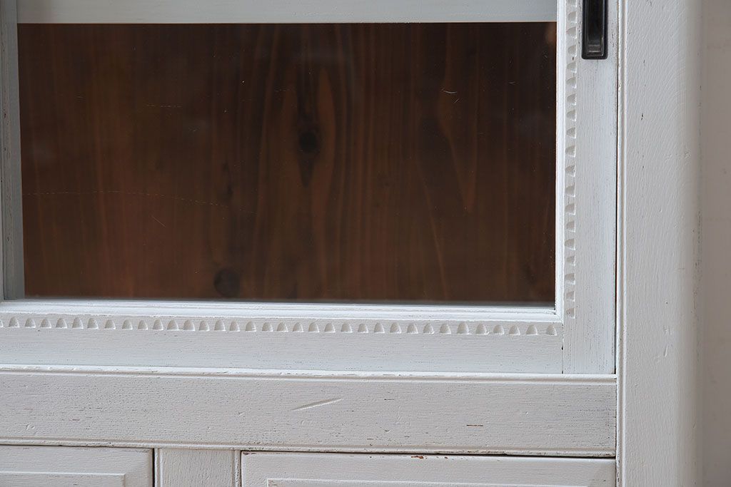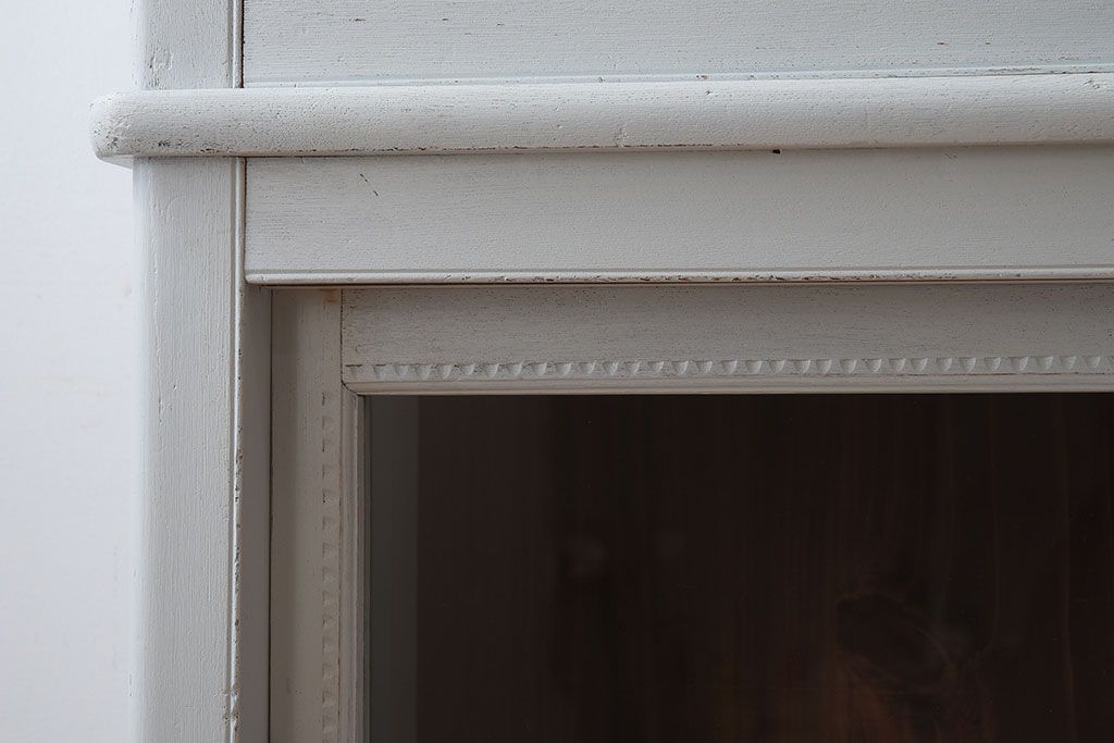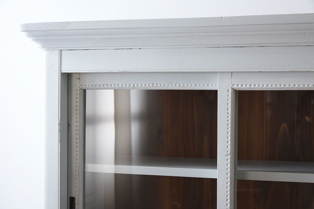 アンティーク家具 フレンチグレーペイントのおしゃれでかわいい食器棚(カップボード)
