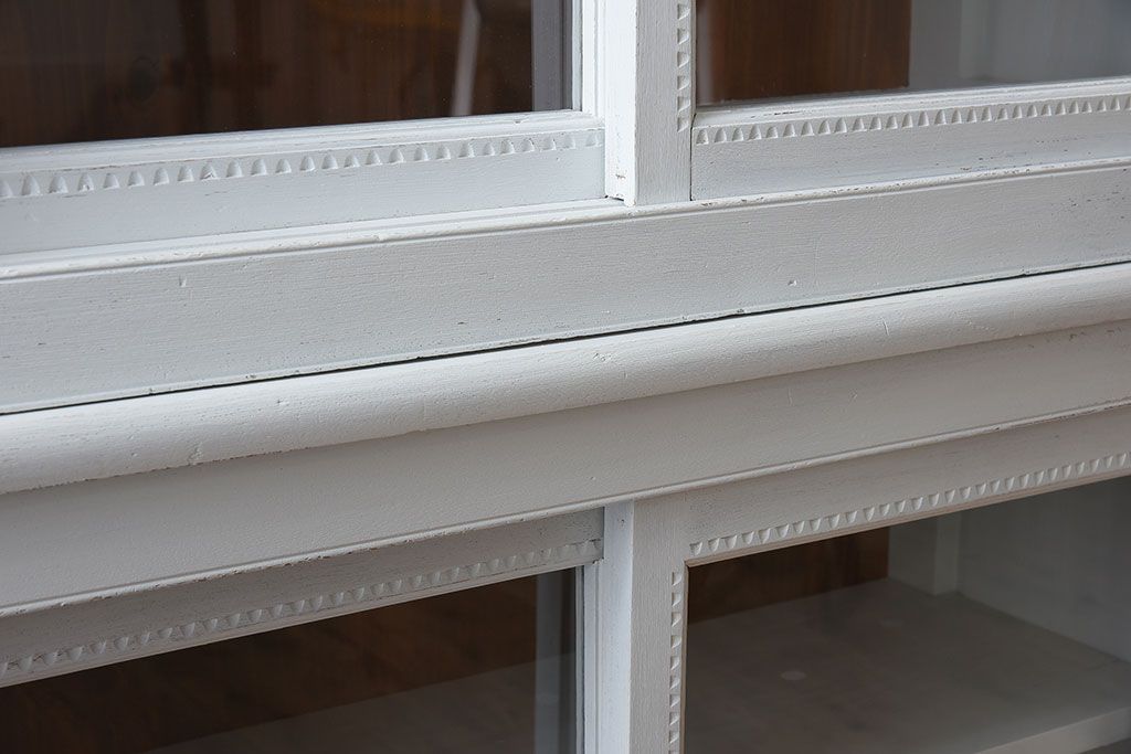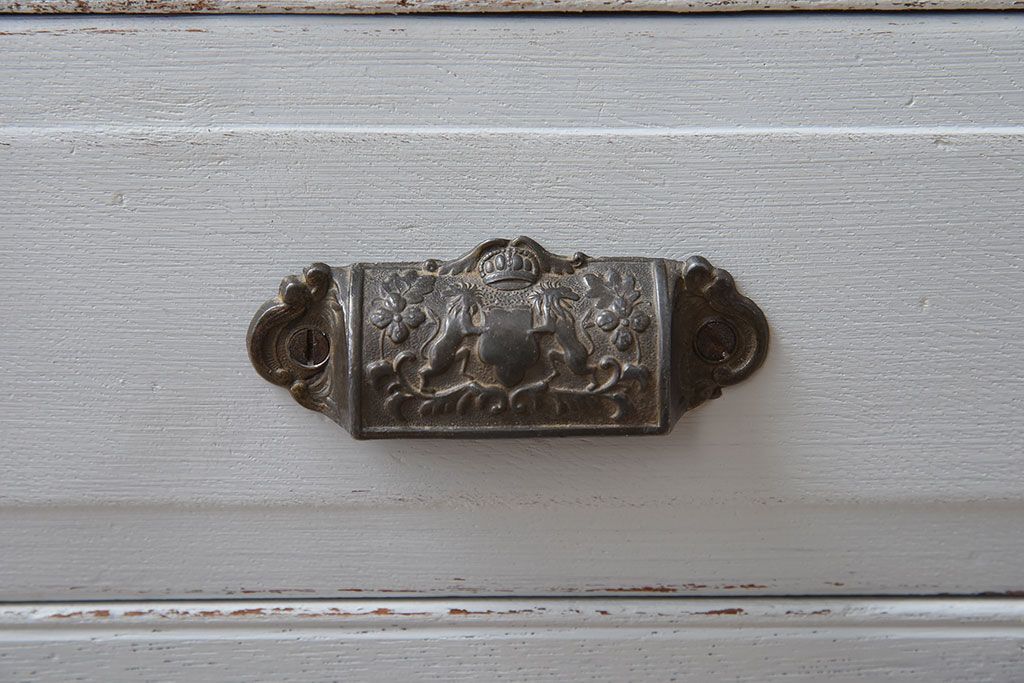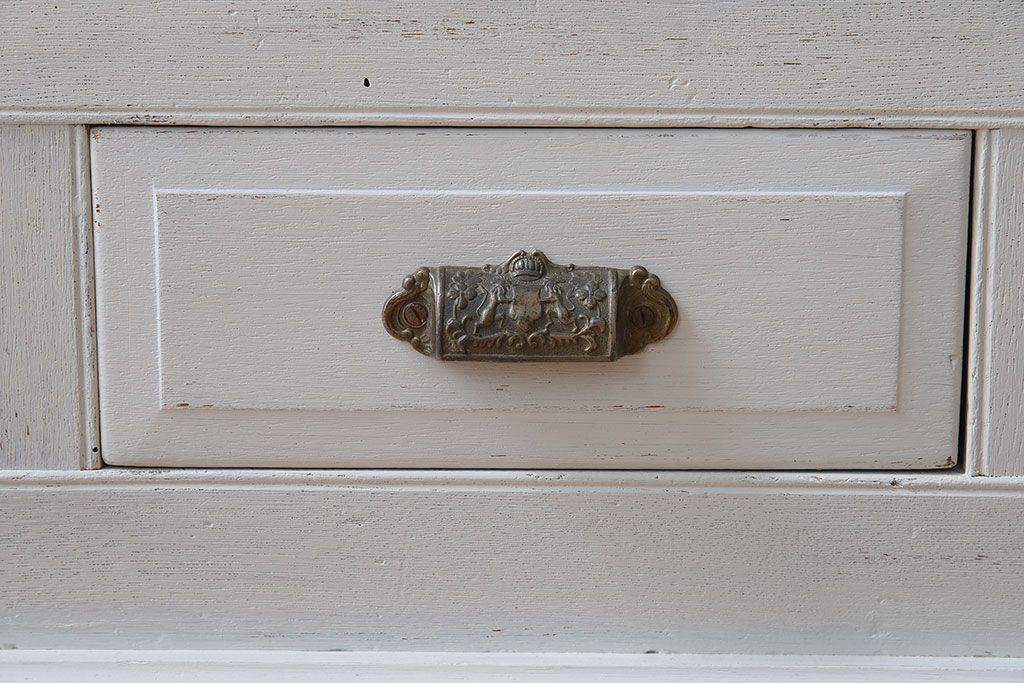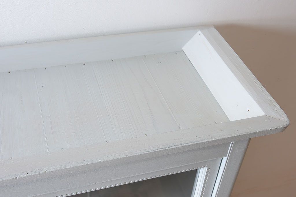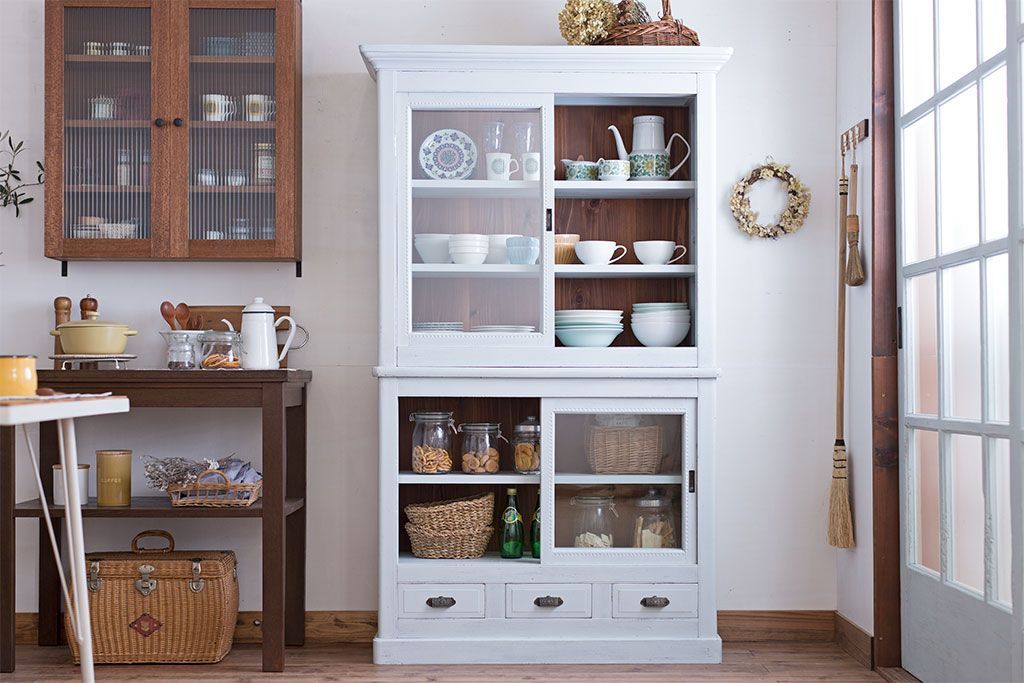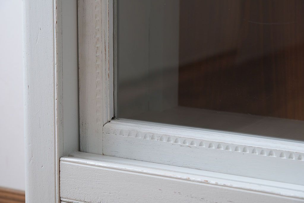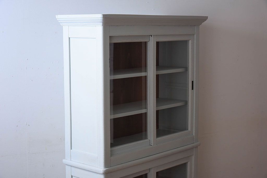 アンティーク家具 フレンチグレーペイントのおしゃれでかわいい食器棚(カップボード)