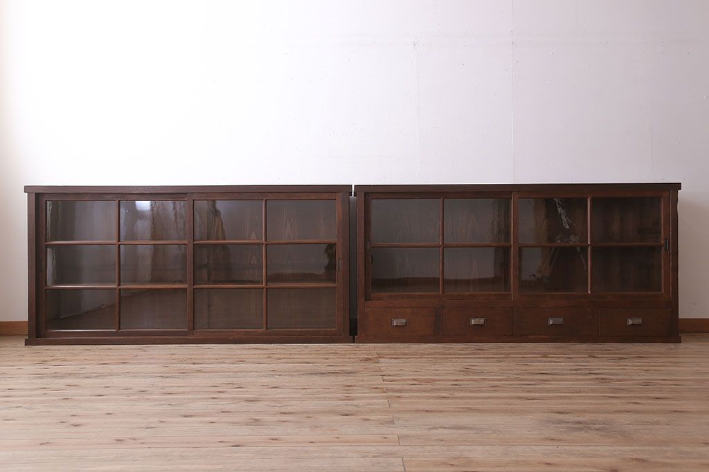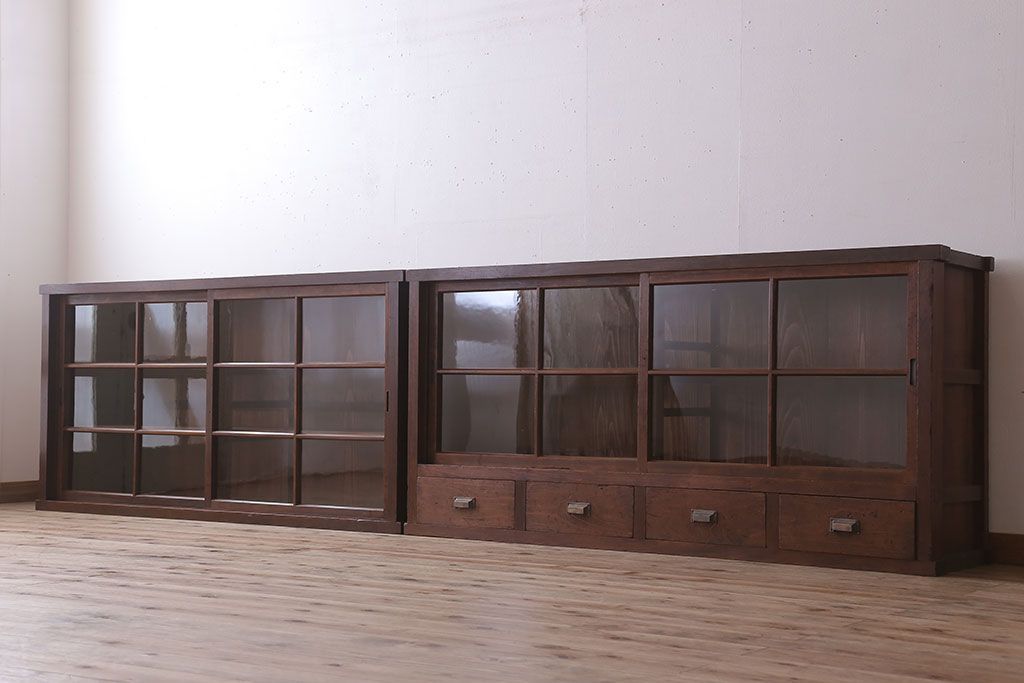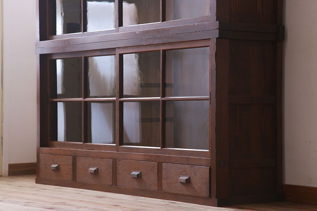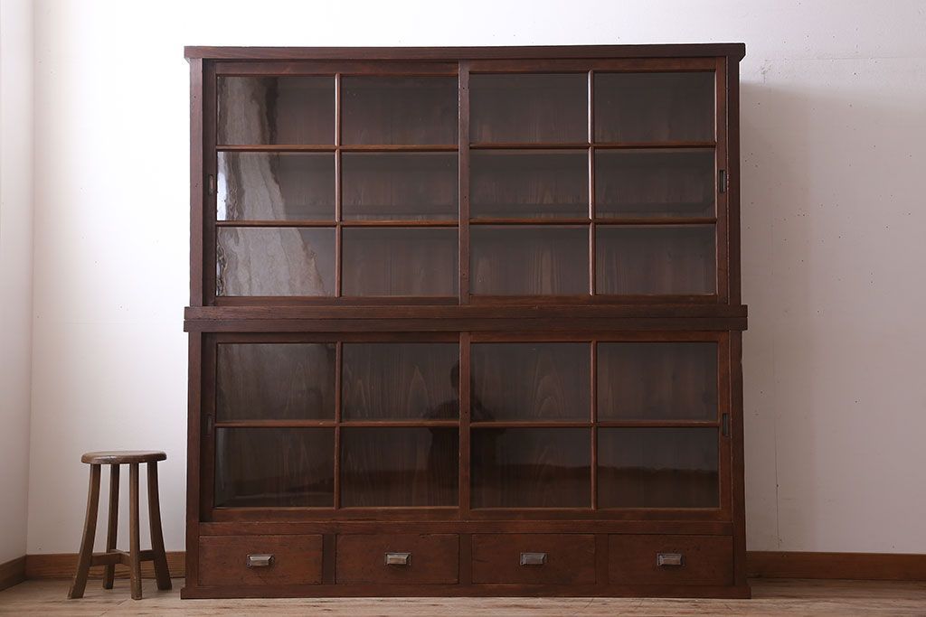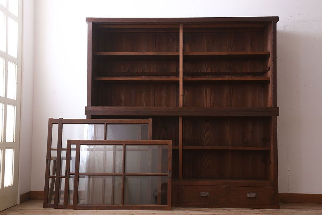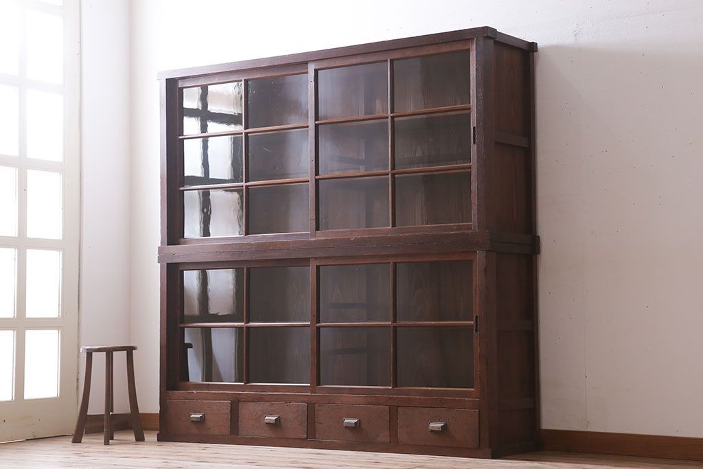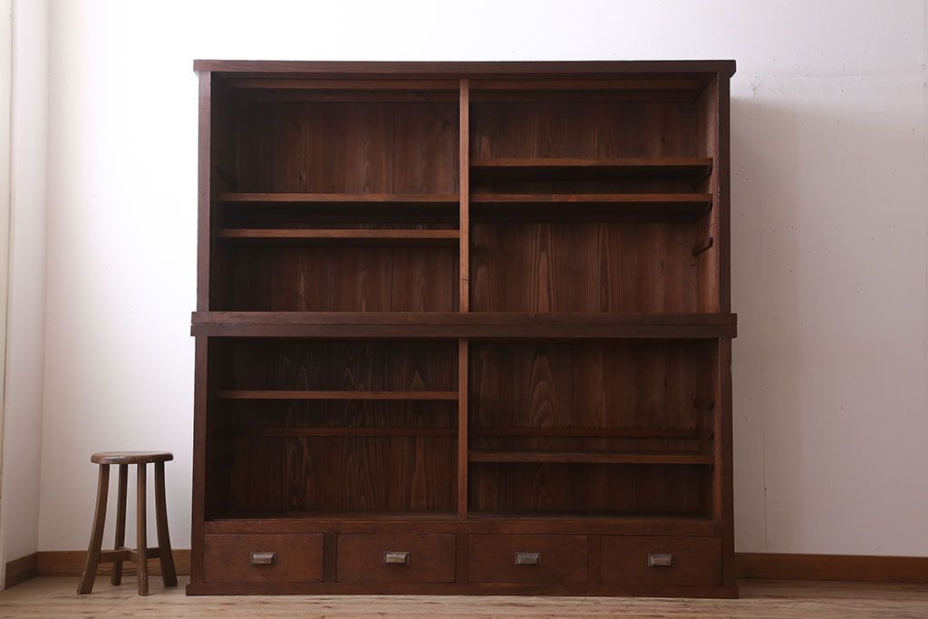 アンティーク家具 和製アンティーク 前面檜材!大きな横型重ね収納棚