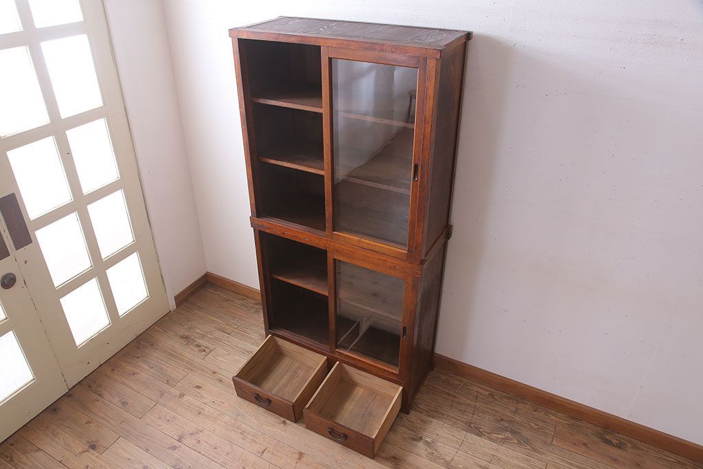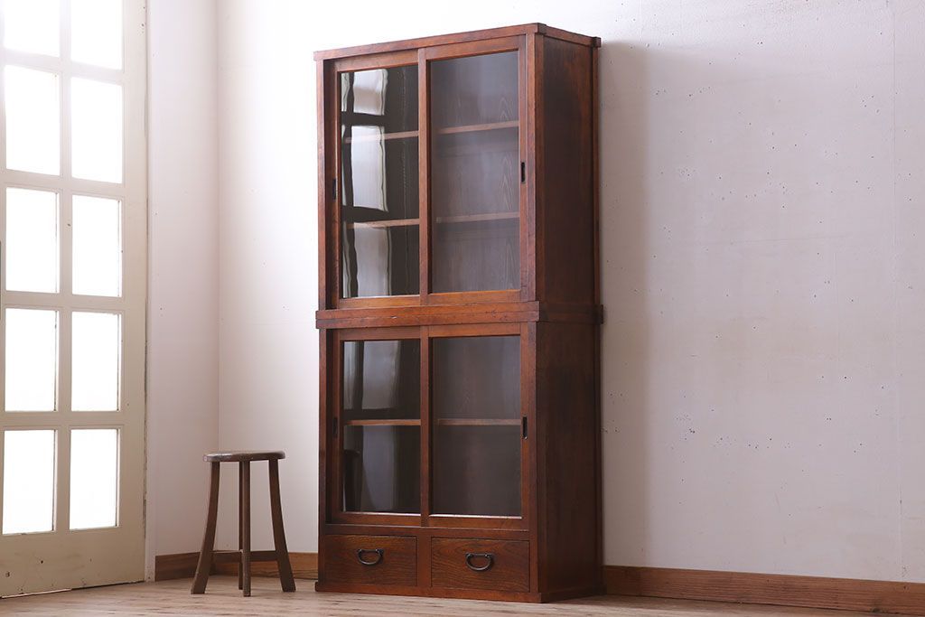 アンティーク家具 和製アンティーク 前面檜材!シンプルな縦型重ね収納棚