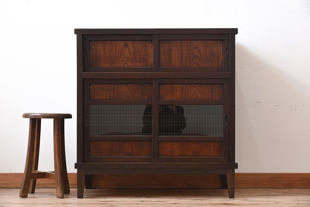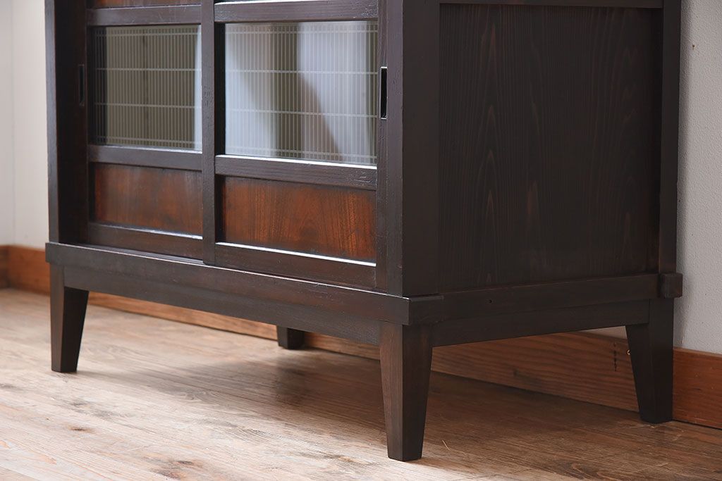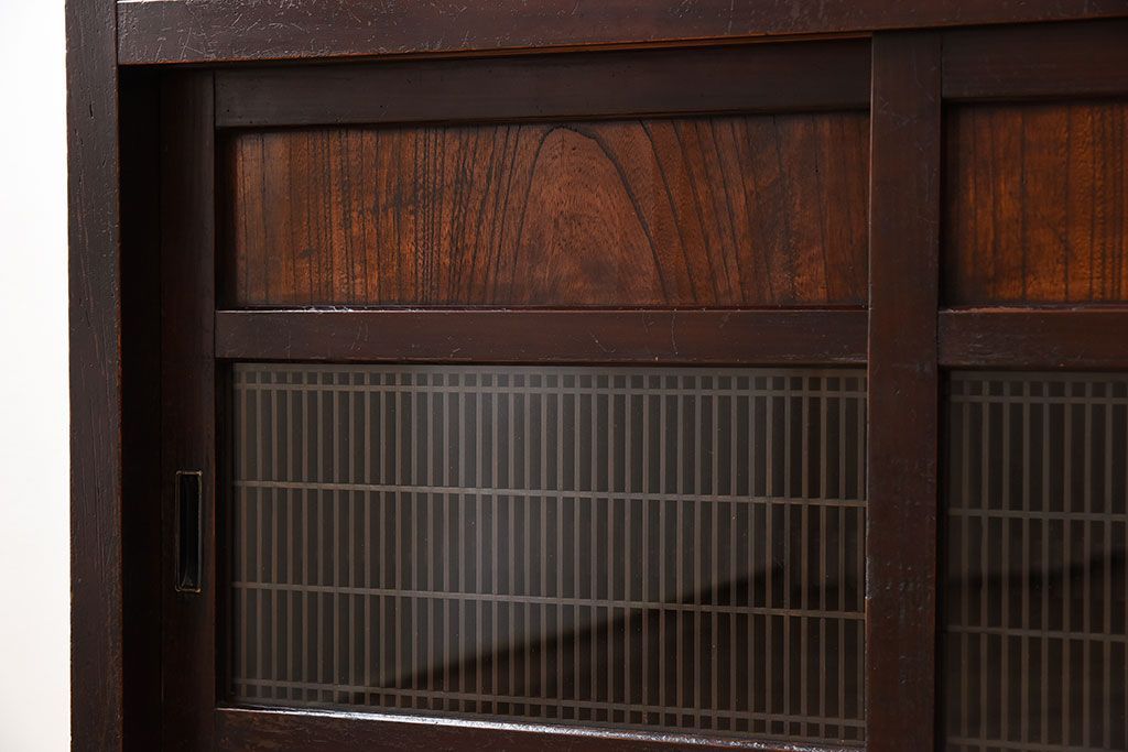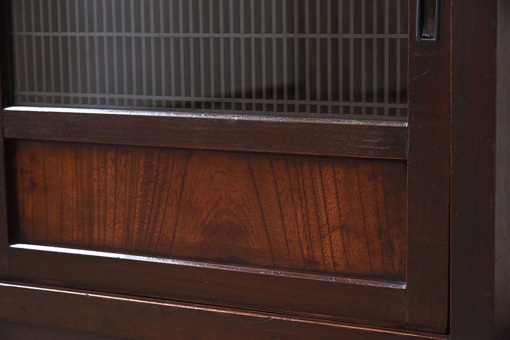 アンティーク家具 脚付き!組子入り引き戸のアンティーク収納棚