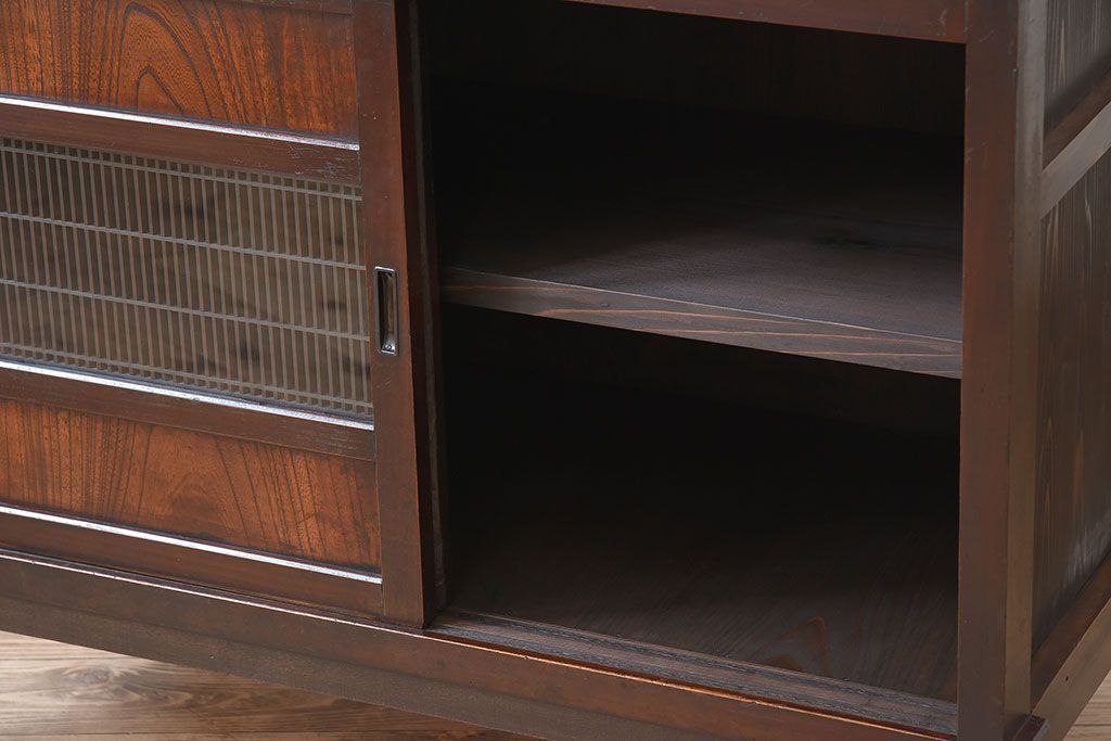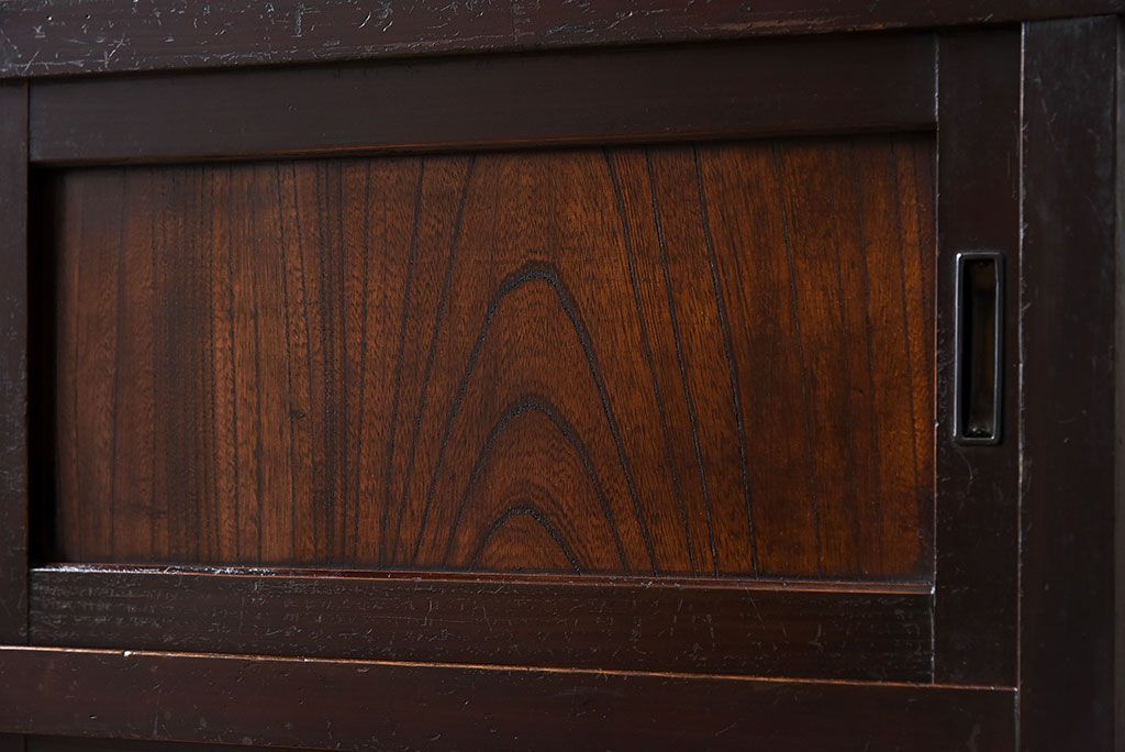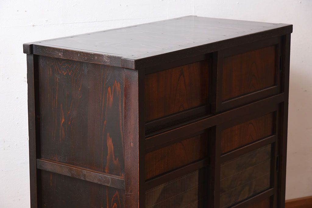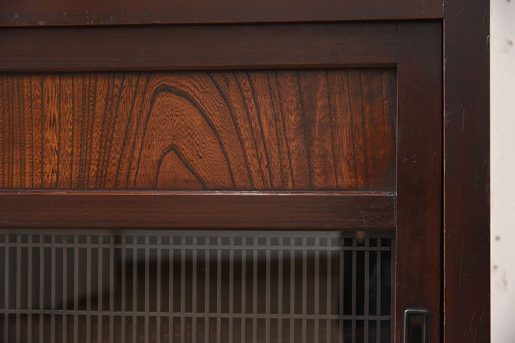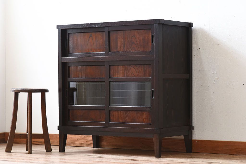 アンティーク家具 脚付き!組子入り引き戸のアンティーク収納棚