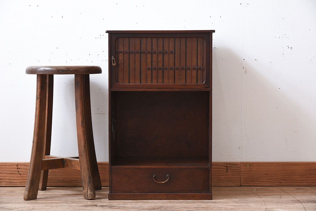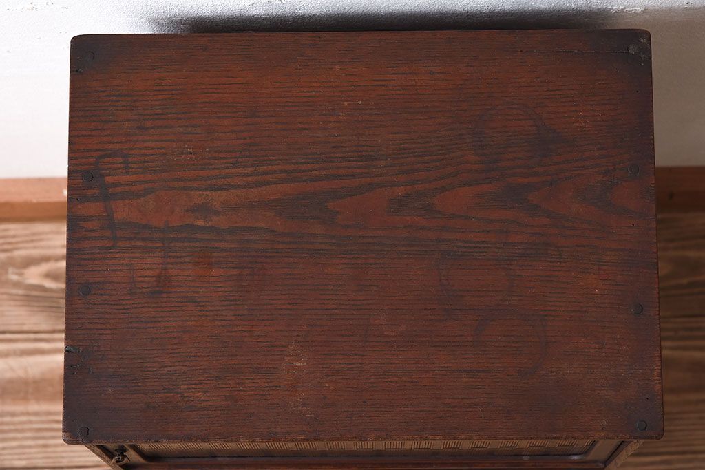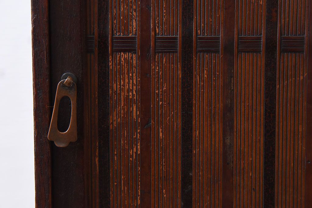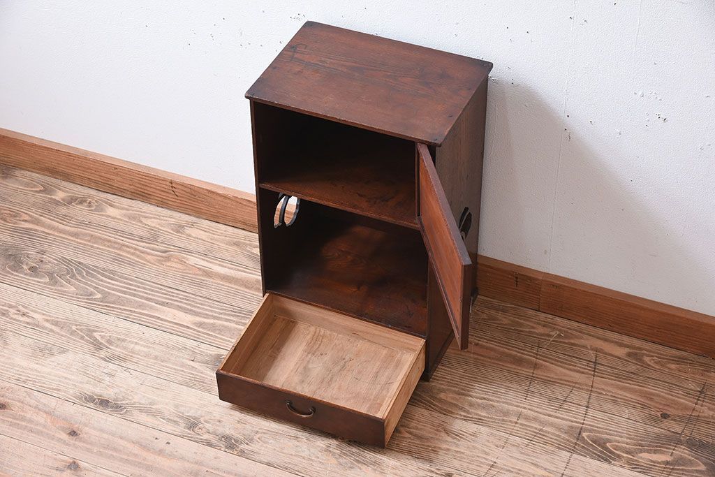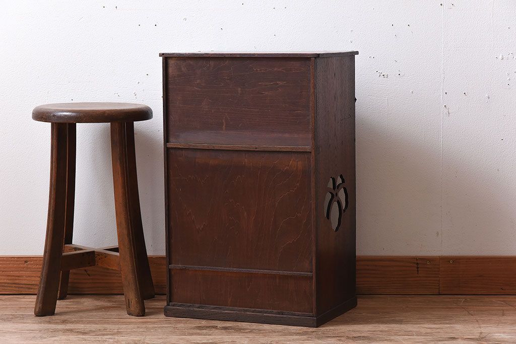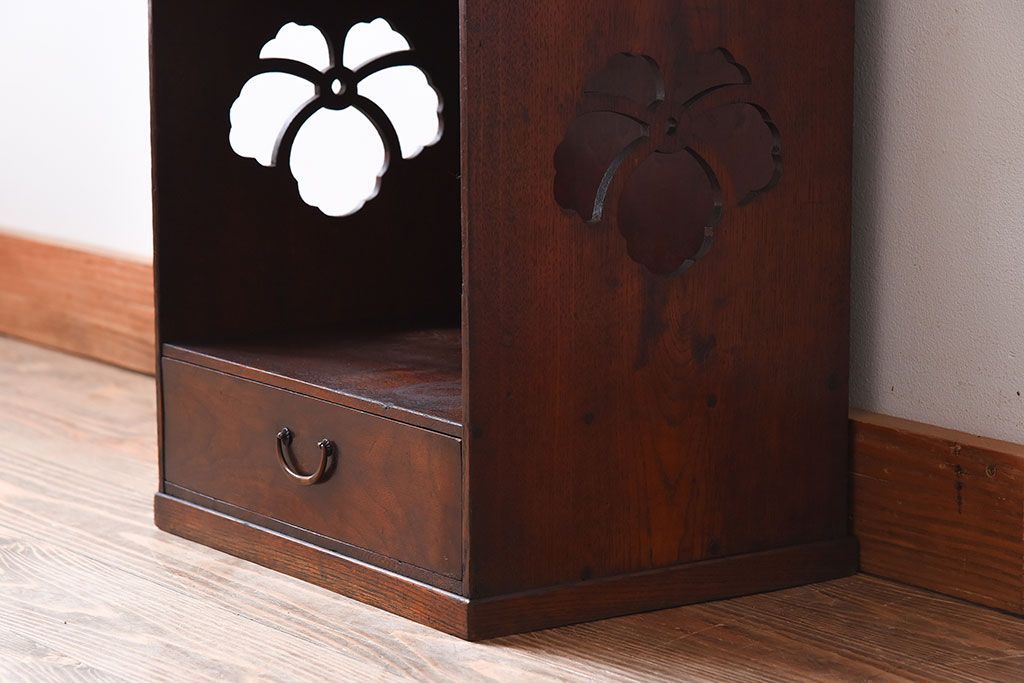 アンティーク家具 桑材製 透かし彫り 上品な意匠の小さなアンティーク収納棚
